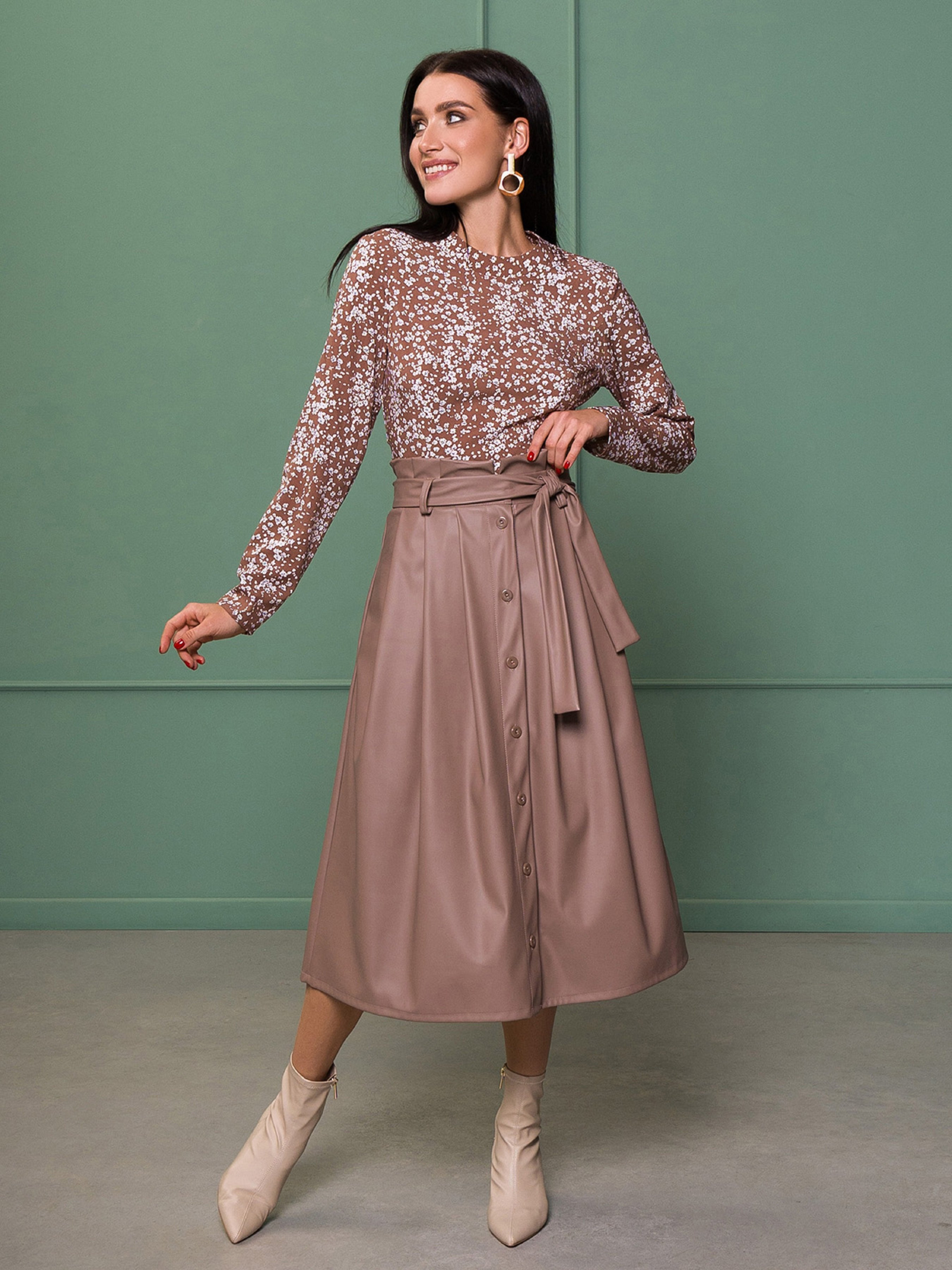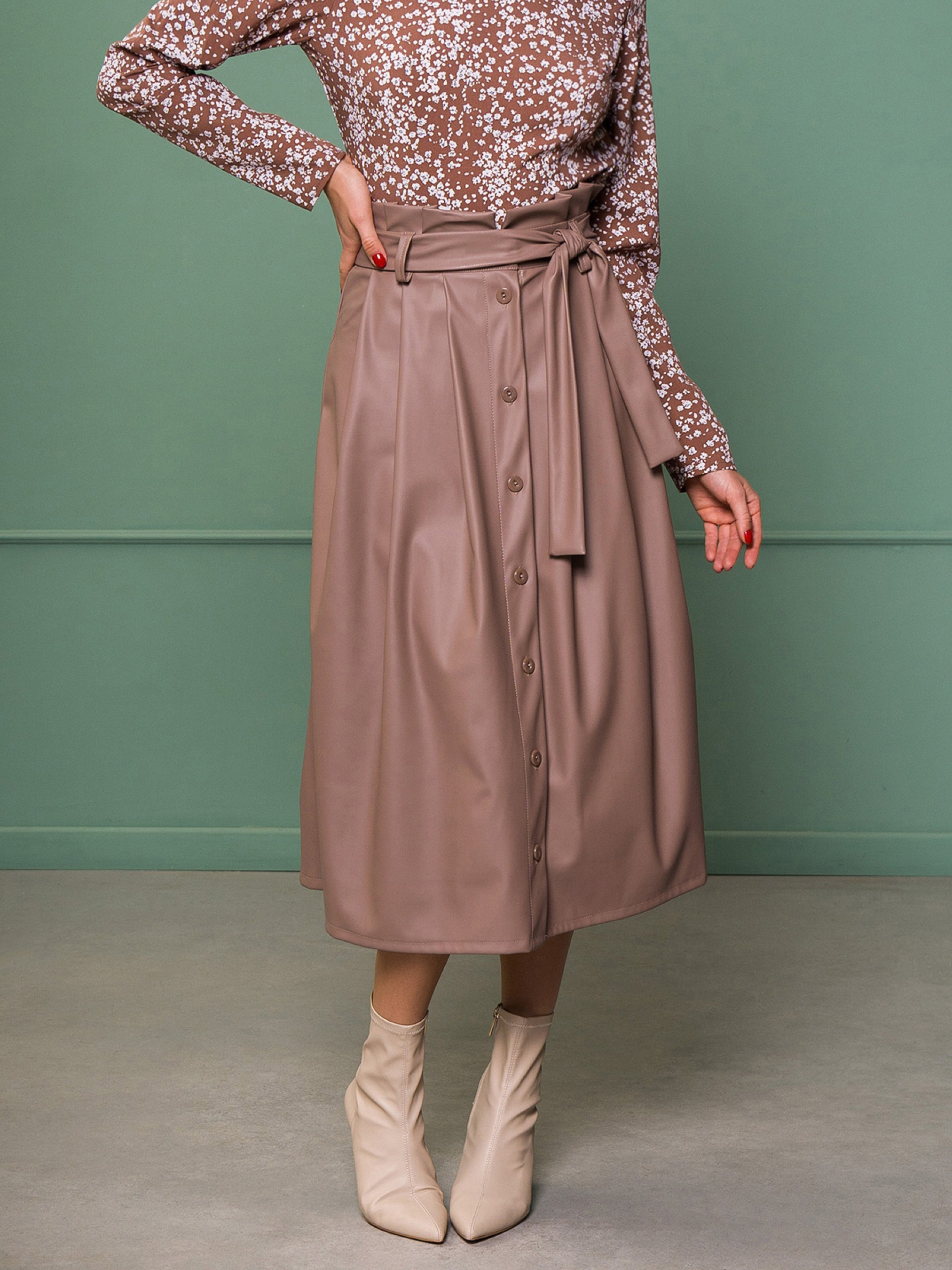 Спідниця міді ISSA Plus модель 13140_бежевый