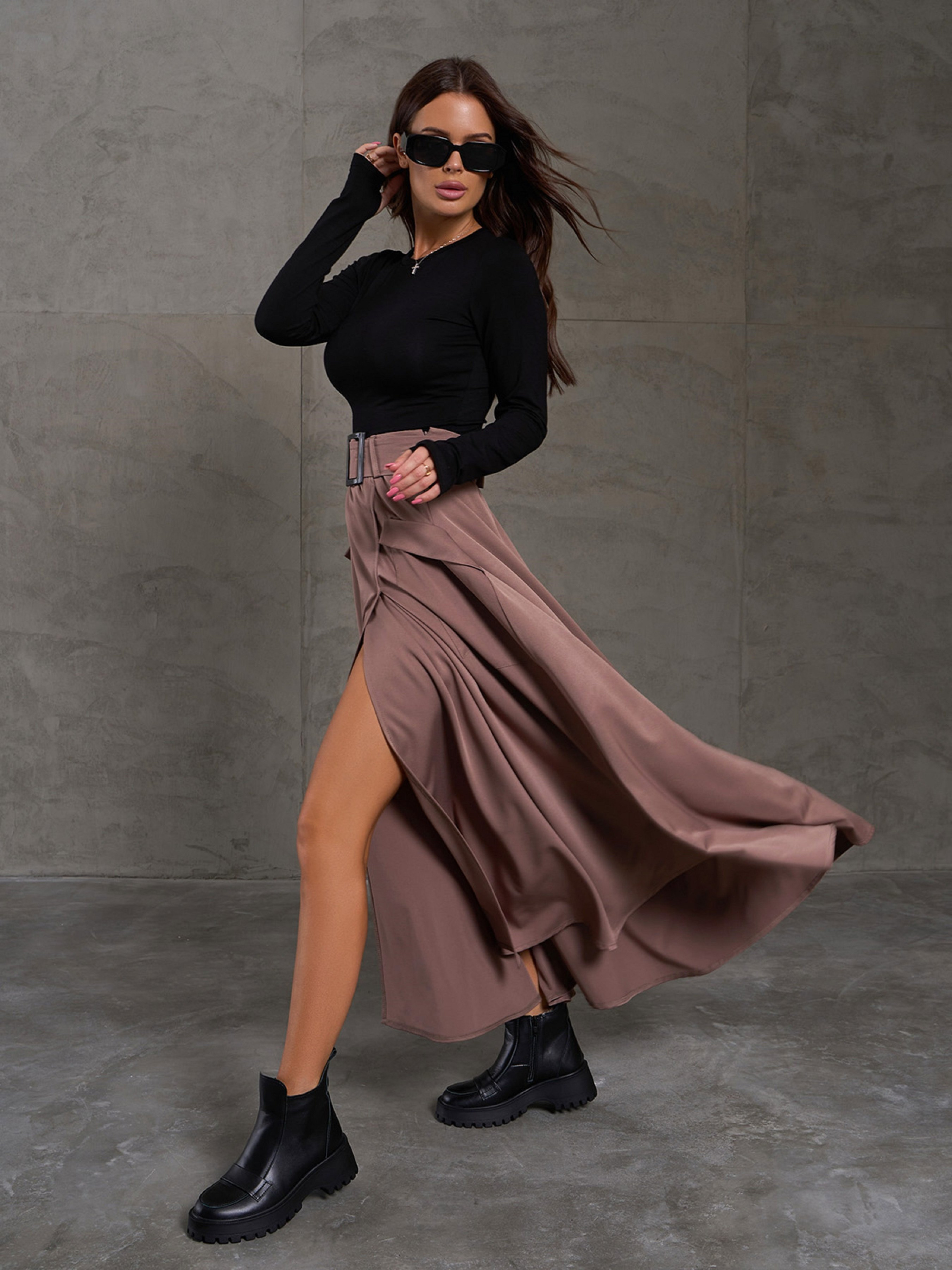 Спідниця максі ISSA Plus модель 14837_коричневый