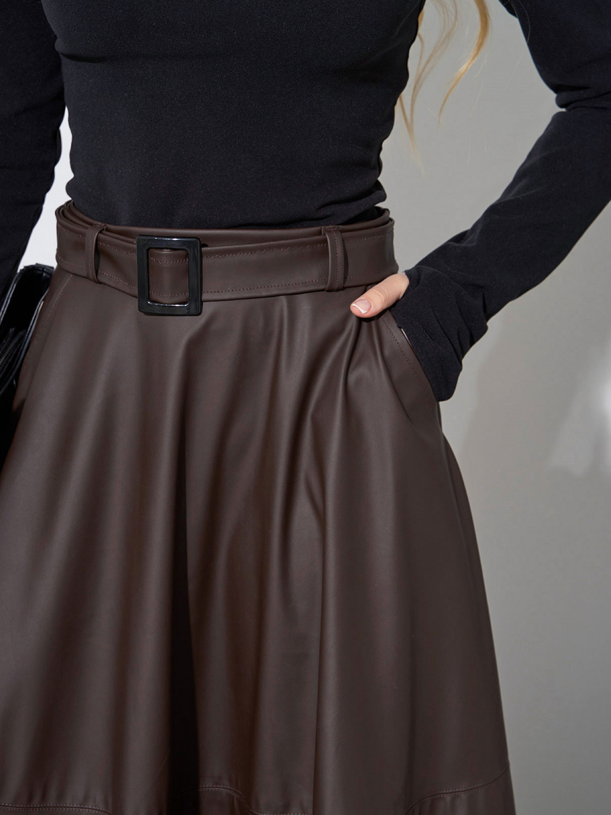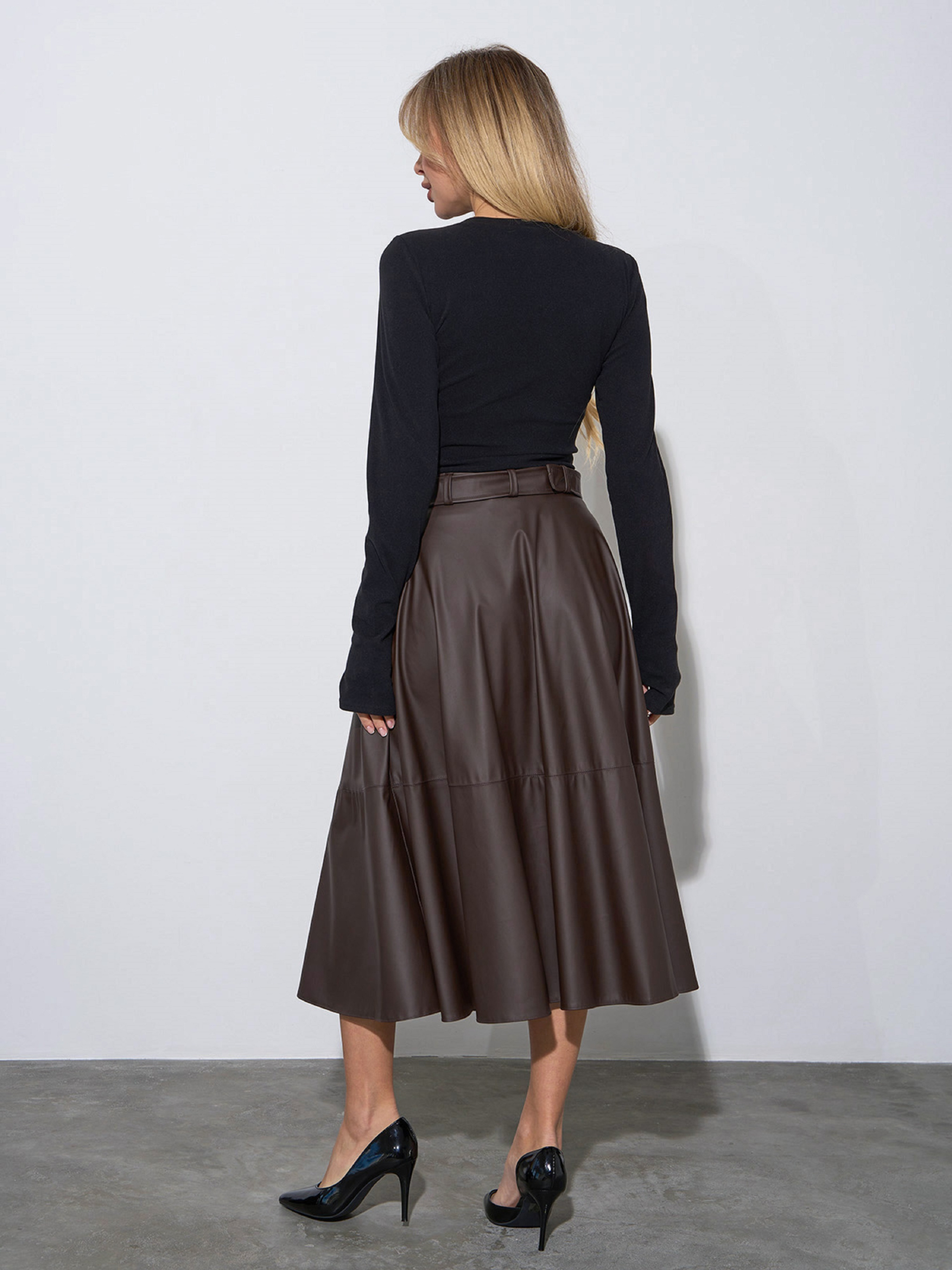 Спідниця міді ISSA Plus модель 14162_темно_коричневый