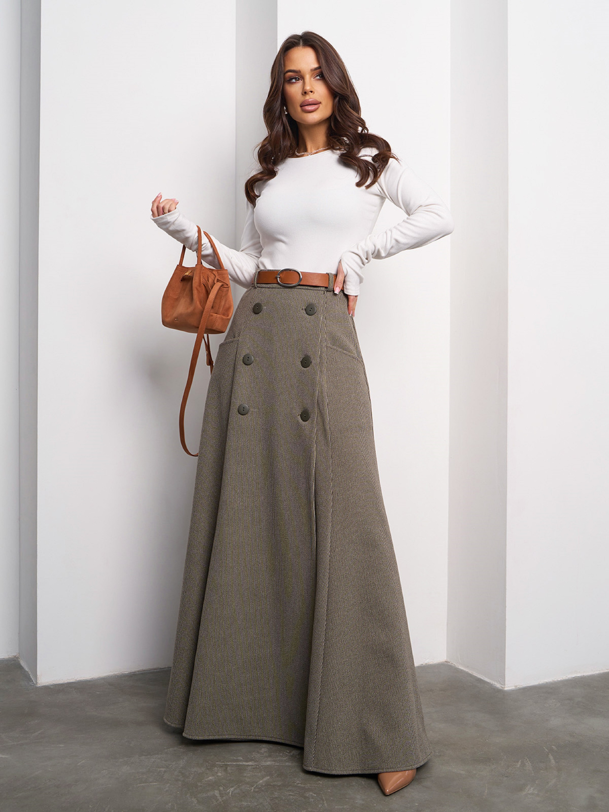 Спідниця максі ISSA Plus модель 14998_оливковый