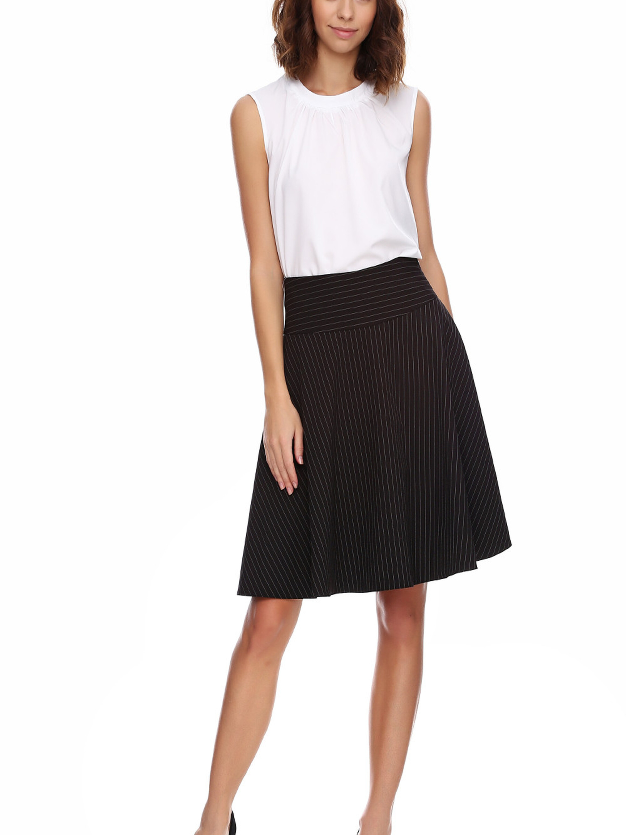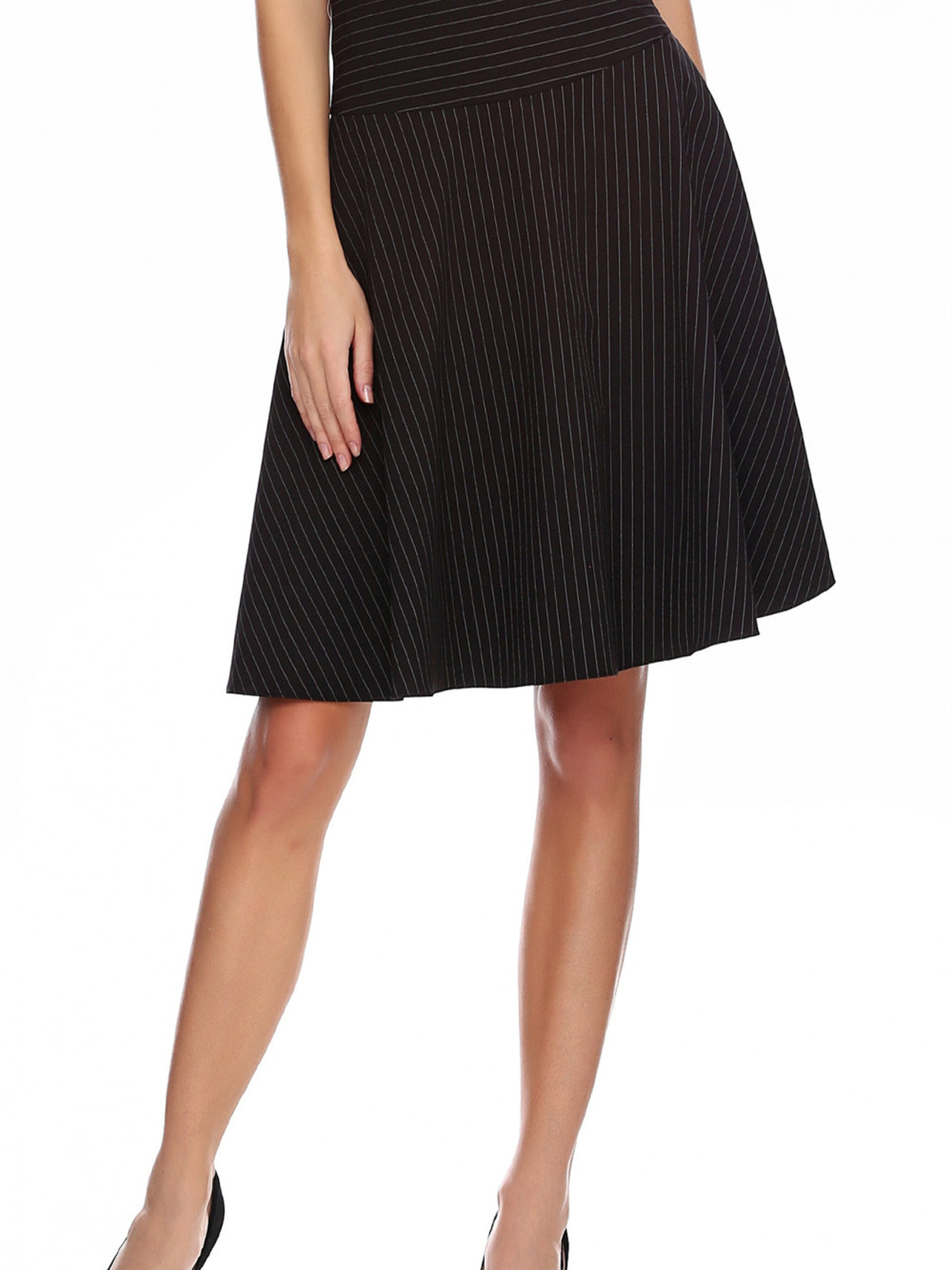 Чорна жіноча спідниця в смужку з кишенями з вільним кроєм на молнії Ця чорна жіноча спідниця в смужку з кишенями поєднує в собі стиль та функціональність. Вільний крій забезпечує комфорт і свободу рухів, роблячи її ідеальним варіантом для повсякденного носіння. Кишені додають практичності, дозволяючи тримати необхідні дрібниці завжди під рукою. Молнія на задній частині спідниці не лише практична, а й додає елемент сучасного стилю, роблячи виріб елегантним та зручним у використанні. Завдяки класичному чорному кольору та смужці, спідниця легко комбінується з різними варіантами верху — від простих футболок до елегантних блуз чи светрів. Ця спідниця — чудовий вибір для створення як повсякденних, так і більш елегантних образів. Вона підходить для прогулянок, офісних днів чи навіть вечірніх зустрічей, забезпечуючи комфорт і стиль протягом усього дня.