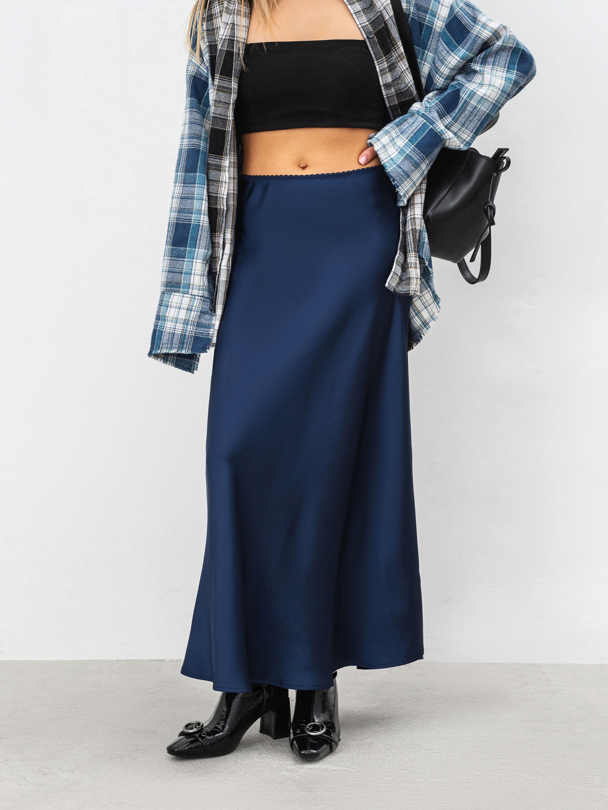 Неймовірно витончена спідниця в універсальній довжині міді. Модель на резинці, тому комфортно відчуватиметься на тілі. Виготовлена з приємного на дотик сатину. Склад тканини: 80% поліестер, 20% віскоза. Варіант спідниця для повсякденних луків. Її можна комбінувати як з базовим верхом, так і більш строгим. Верхній одяг також можна обирати різний, коригуючи настрій твого образу. ХС Довжина по зовнішньому шву : 92 см Напівобхват стегон : 49 см Напівобхват талії : 34 см С Довжина по зовнішньому шву : 92 см Напівобхват стегон : 50 см Напівобхват талії : 36 см М Довжина по зовнішньому шву : 92 см Напівобхват стегон : 52 см Напівобхват талії : 37 см Л Довжина по зовнішньому шву : 92 см Напівобхват стегон : 53 см Напівобхват талії : 38 см ХЛ Довжина по зовнішньому шву : 92 см Напівобхват стегон : 54 см Напівобхват талії : 39 см