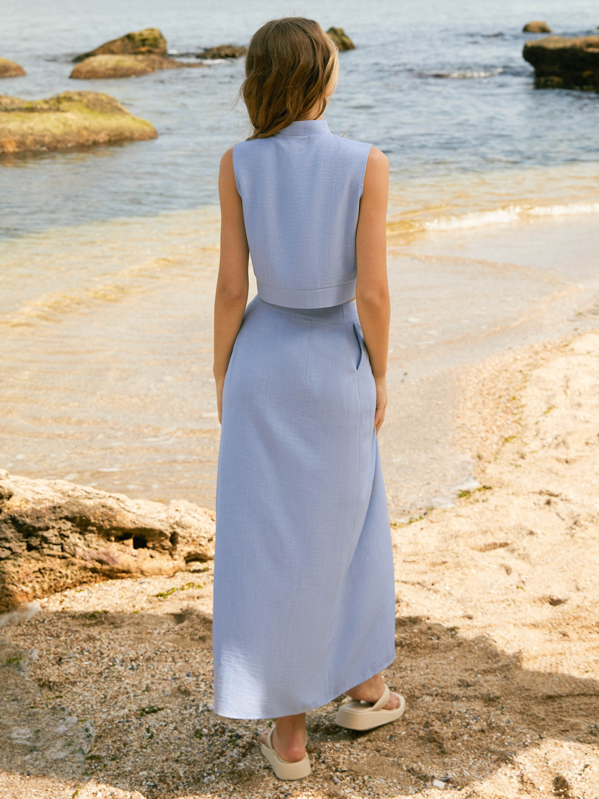 Спідниця на запах від Seventeen — легкість, що підкреслює фігуру Фасон Елегантна максі-спідниця на запах — втілення легкості й природної грації. Завдяки м’якому силуету, вона м’яко окреслює талію й стегна, створюючи витончений образ. Пояс із застібкою на внутрішні ґудзики дозволяє регулювати посадку. А розріз попереду додає свободи руху й ледь помітної інтриги. У бокових швах — зручні кишені, непомітні, але функціональні. Матеріал Натуральна тканина зі щільного льону з додаванням бавовни дарує комфорт навіть у найспекотніші дні. Поверхня матова, з характерною фактурою льону — дихає, тримає форму, не прилягає щільно до тіла. Ідеальний вибір для тих, хто цінує натуральність та якість. Розмірна сітка S–M: талія 68–72 см, стегна 92–96 см, довжина виробу 93 см L–XL: талія 76–81 см, стегна 100–105 см, довжина 93 см XXL–3XL: талія 86–91 см, стегна 110–115 см, довжина 93 см Завдяки регульованій талії спідниця добре сідає на різні типи фігур. Догляд Делікатне ручне або машинне прання при температурі до 30°C Не відбілювати Прасувати при середній температурі з виворітного боку Сушити в тіні у розкладеному вигляді Не замочувати надовго