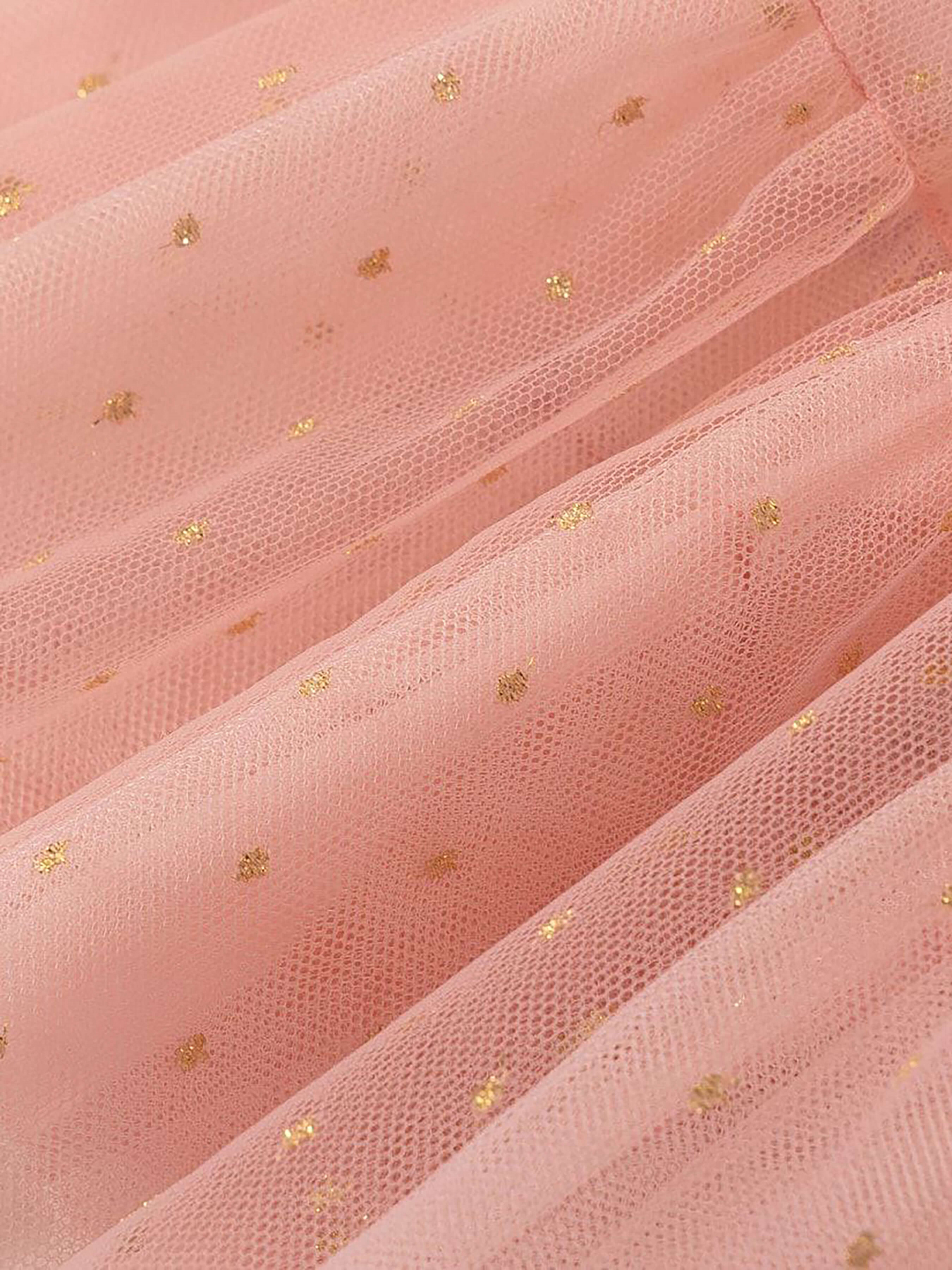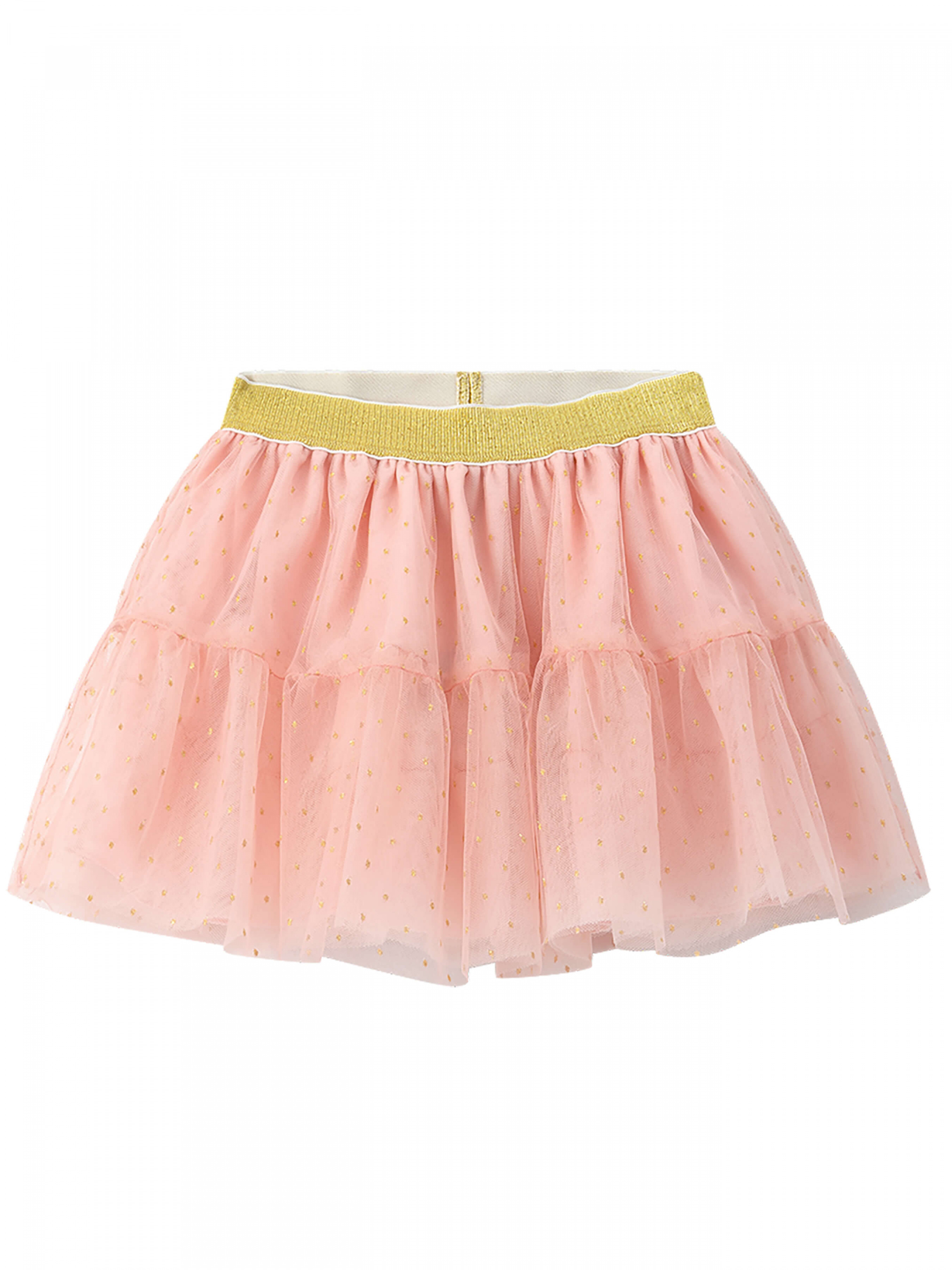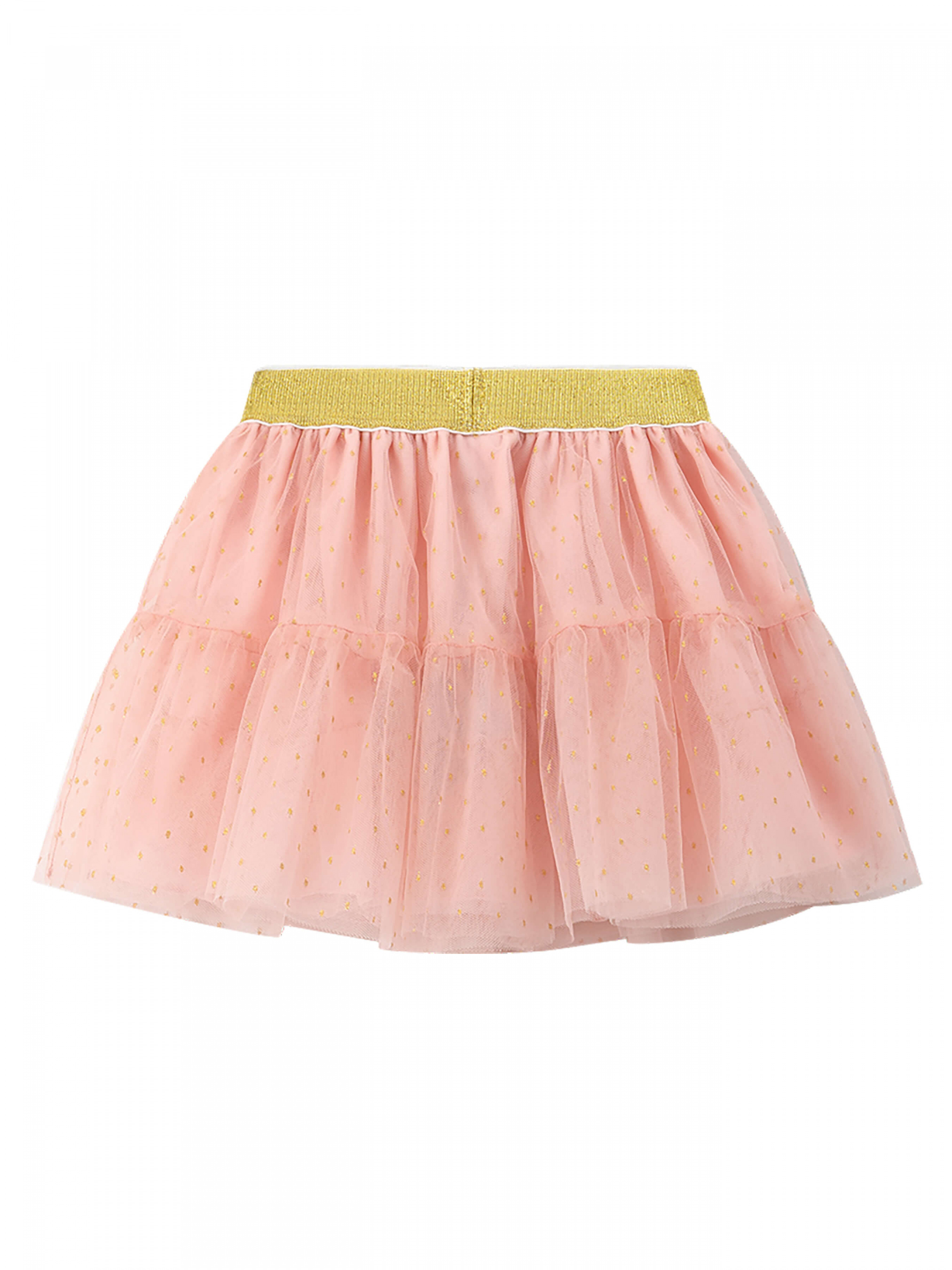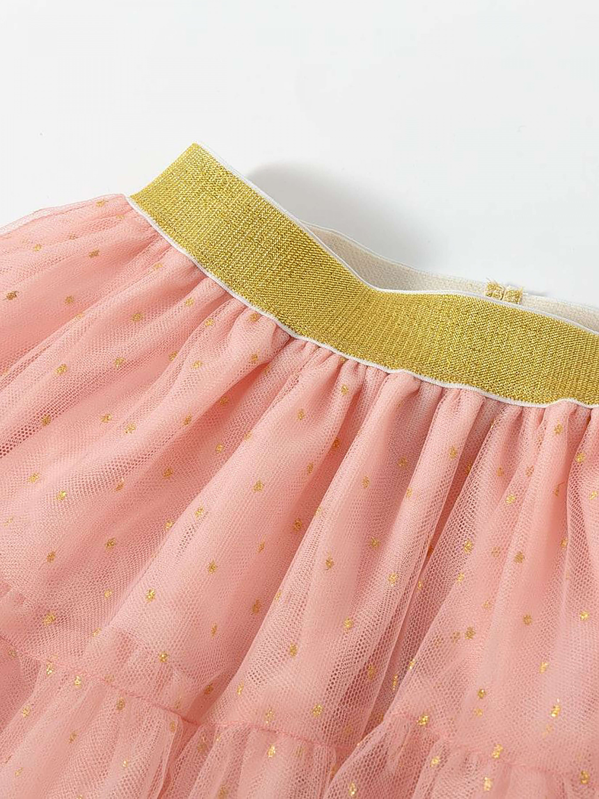 Деталі моделі: спідниця чорного кольору. Пояс на резинці. Кілька ярусів фатина + непрозорий під’юбник чорного кольору. Декор - напилення золотого та чорного кольору у вигляді дрібного горошку.