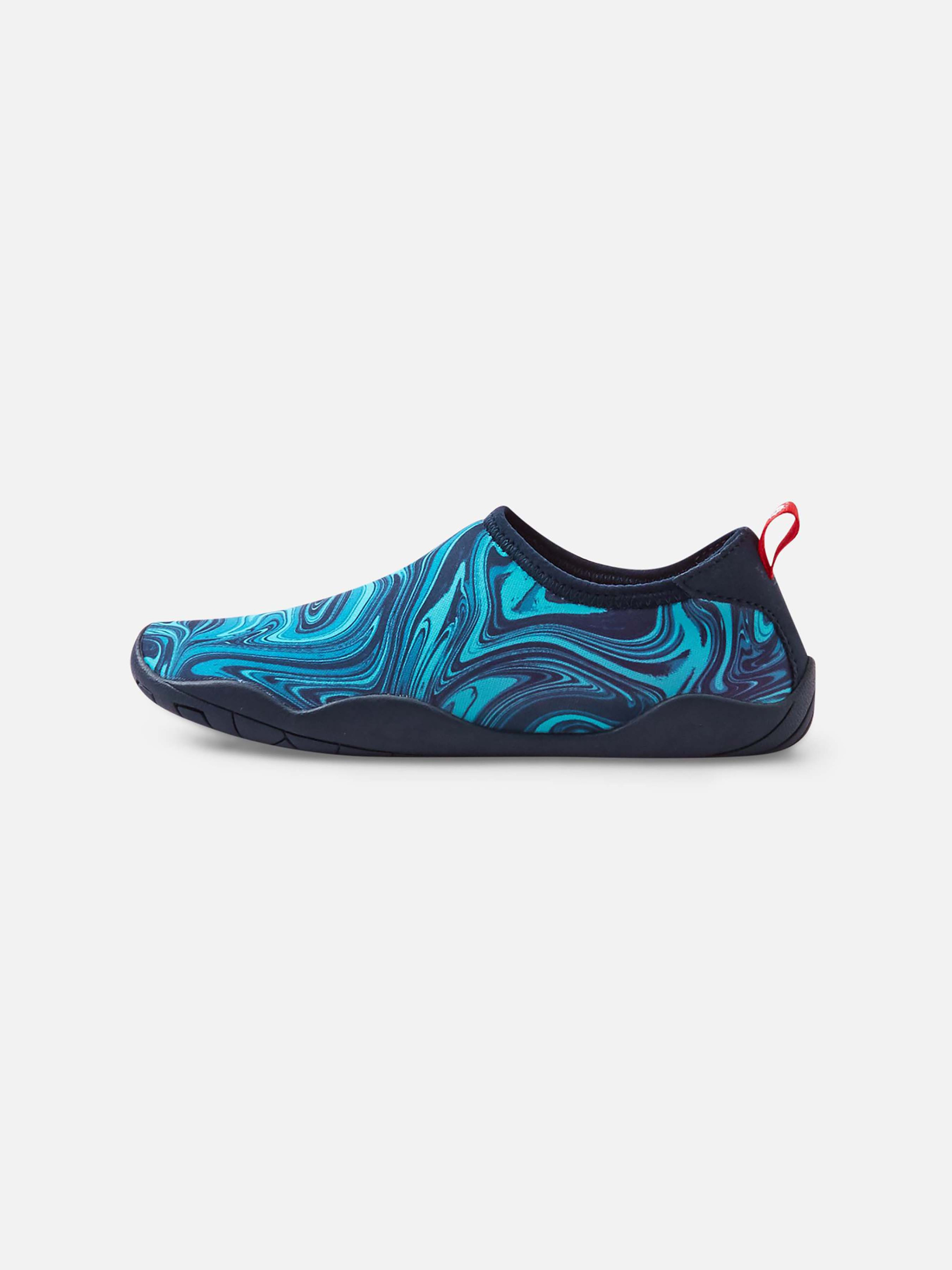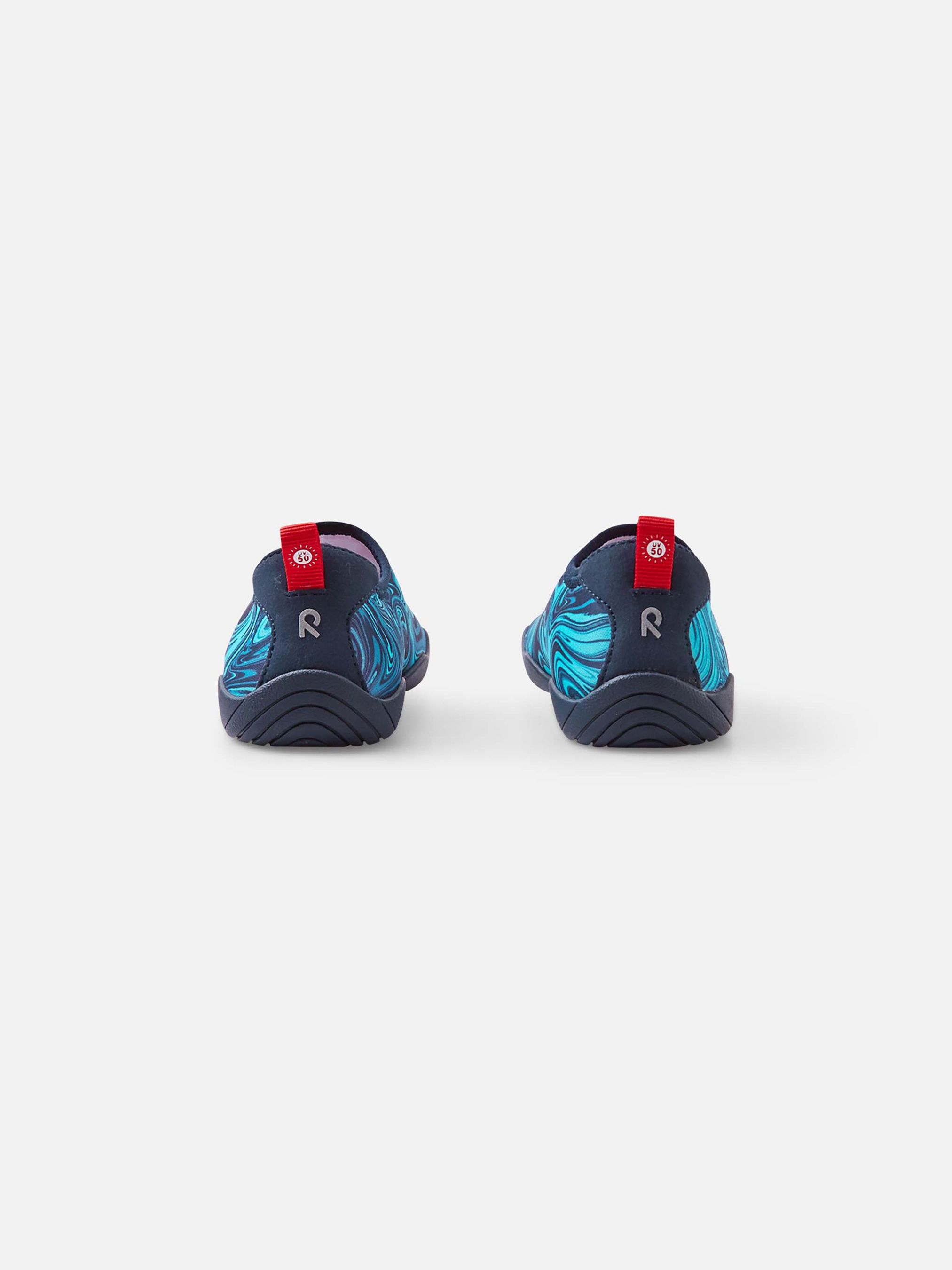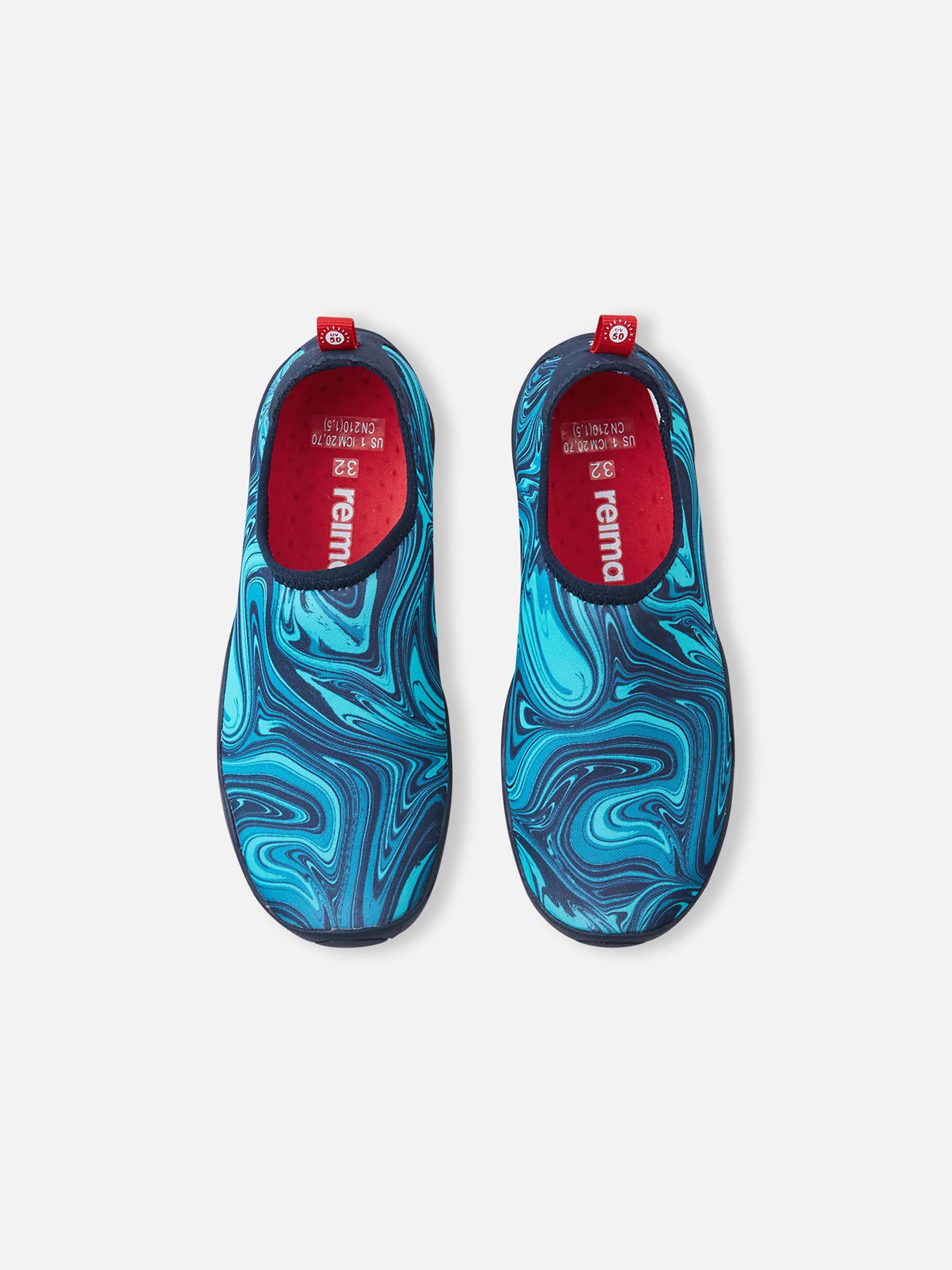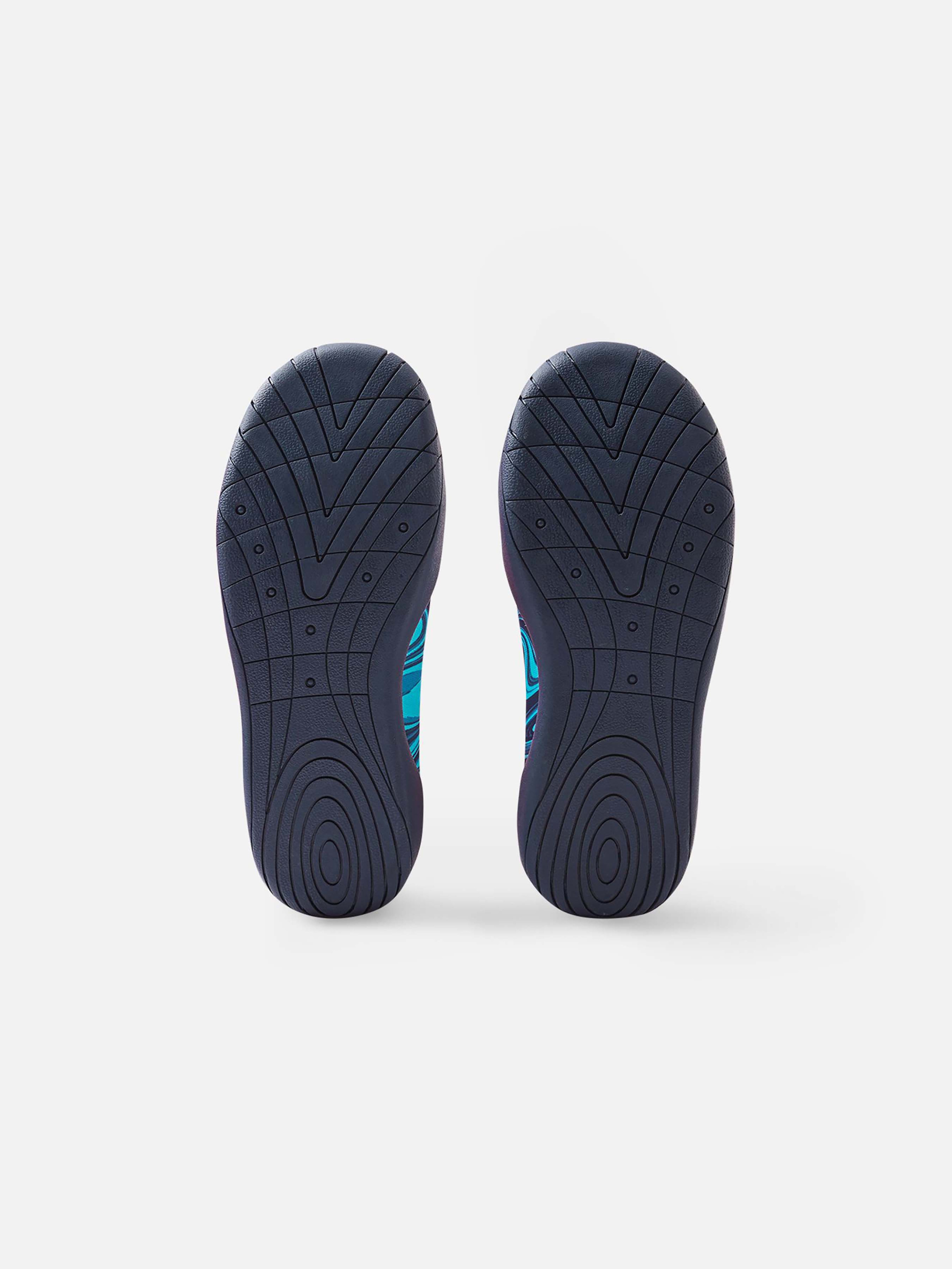 Показник повітряпровідності: >7 000 УФ захист 50+ Еластичний матеріал Не містить фторвуглецю Дихаюче взуття Дозволене прання у пральній машині Зручні устілки Happy Fit Знімні устілки Reima Barefoot Ідеальний варіант для пляжу. Верх виготовлений з сонцезахисного, швидковисихаючого матеріалу, а підошва - з нековзкої гуми. Структура підошви не дозволяє воді затримуватися під нею під час гри поруч з водоймами, а гумовий матеріал захищає маленькі ніжки від скла й гострих паличок на пляжі. Зауваже, однак, що, як і у більшості взуття, підошва аквакапців все ж може бути слизькою на мокрих плиткових поверхнях, тому вони не ідеальні для використання біля басейну. Ці капці легко надягати і можна прати в машинці, до того ж їх можна використовувати як капці для дому або дитячого садка. Верх: 72% поліестер, 10% бавовна, 9% еластан, 9% поліуретан; Підкладка: 80% поліестер, 10% бавовна, 10% еластан; Устілка: 80% поліестер, 20% еластан; Підошва: 55% гума, 45% каучук