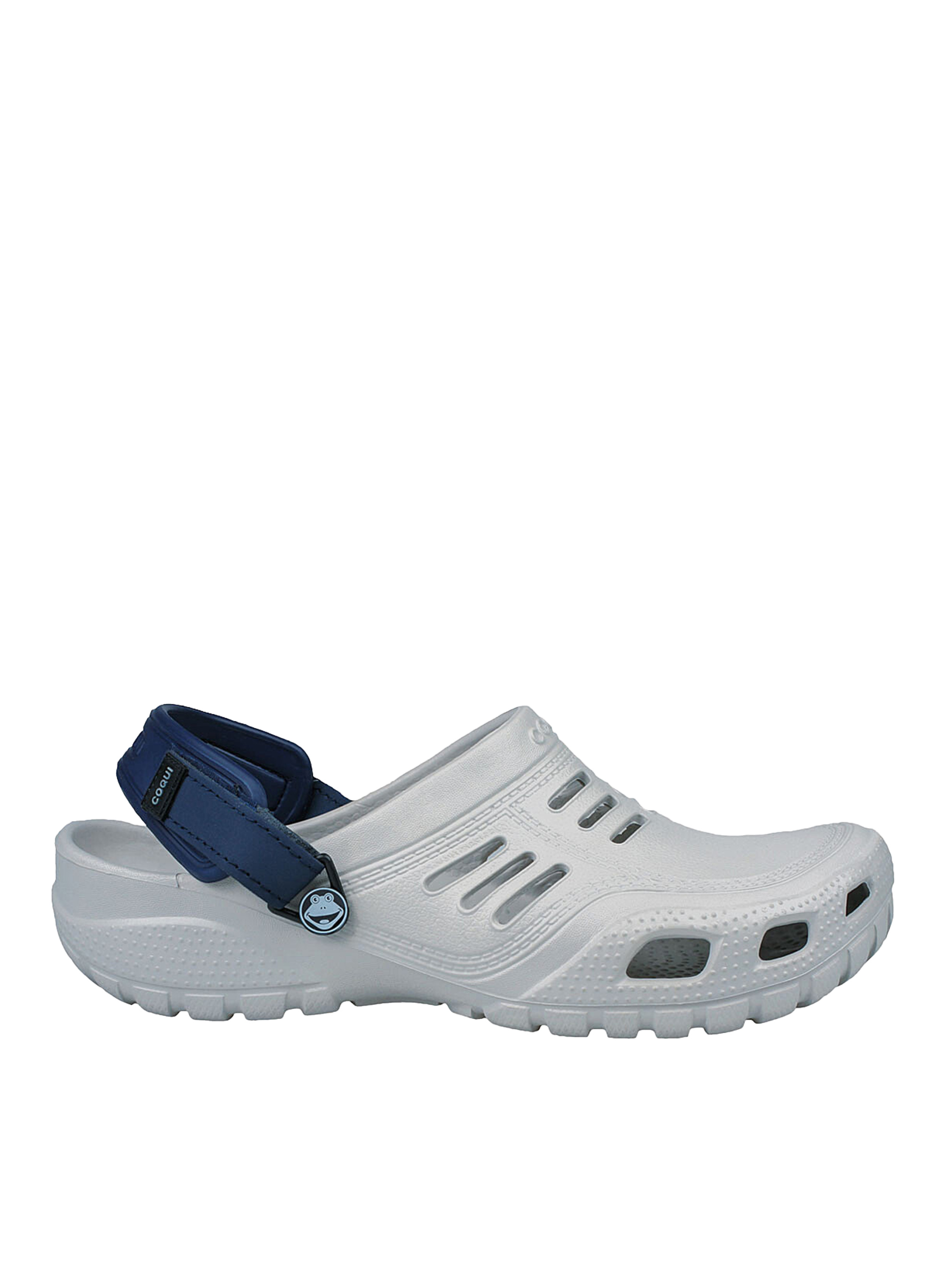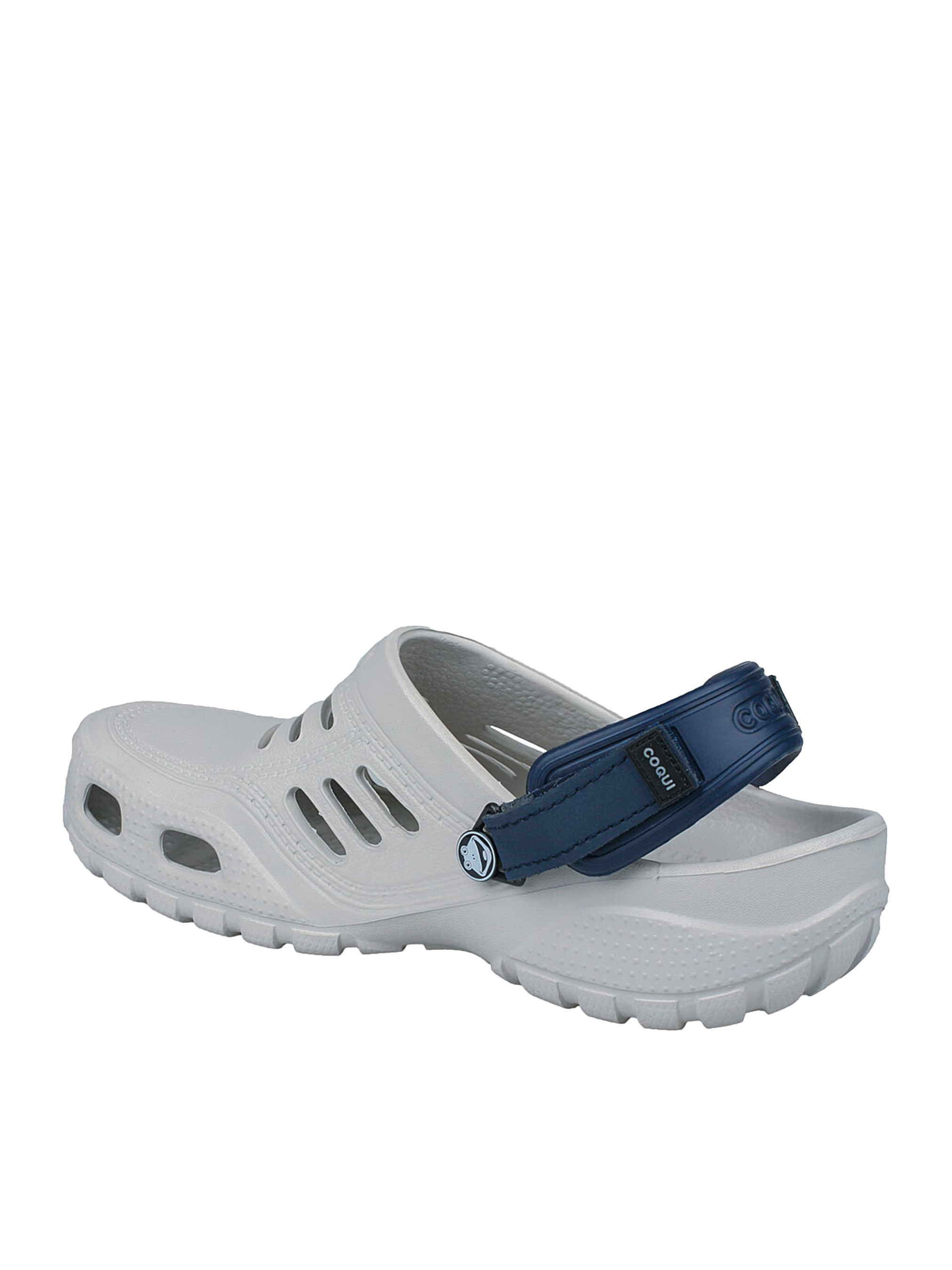 Сабо Coqui для чоловіків. М'які і зручні. Вони підходять на широку і звичайну ногу з високим підйомом. Легкі і комфортні, ідеально сидять завдяки еластичному ремінцю на п'ятці. Висота платформи 35-50 мм (з урахуванням виміру її найвищої точки). Підходять для щоденного використання. Особливо рекомендовані людям, які проводять багато часу на ногах. Масажна структура устілки створює розслабляючий ефект для стопи. При виробництві моделі використовується матеріал CoquiAir - особливий полімер, що володіє рядом унікальних властивостей: