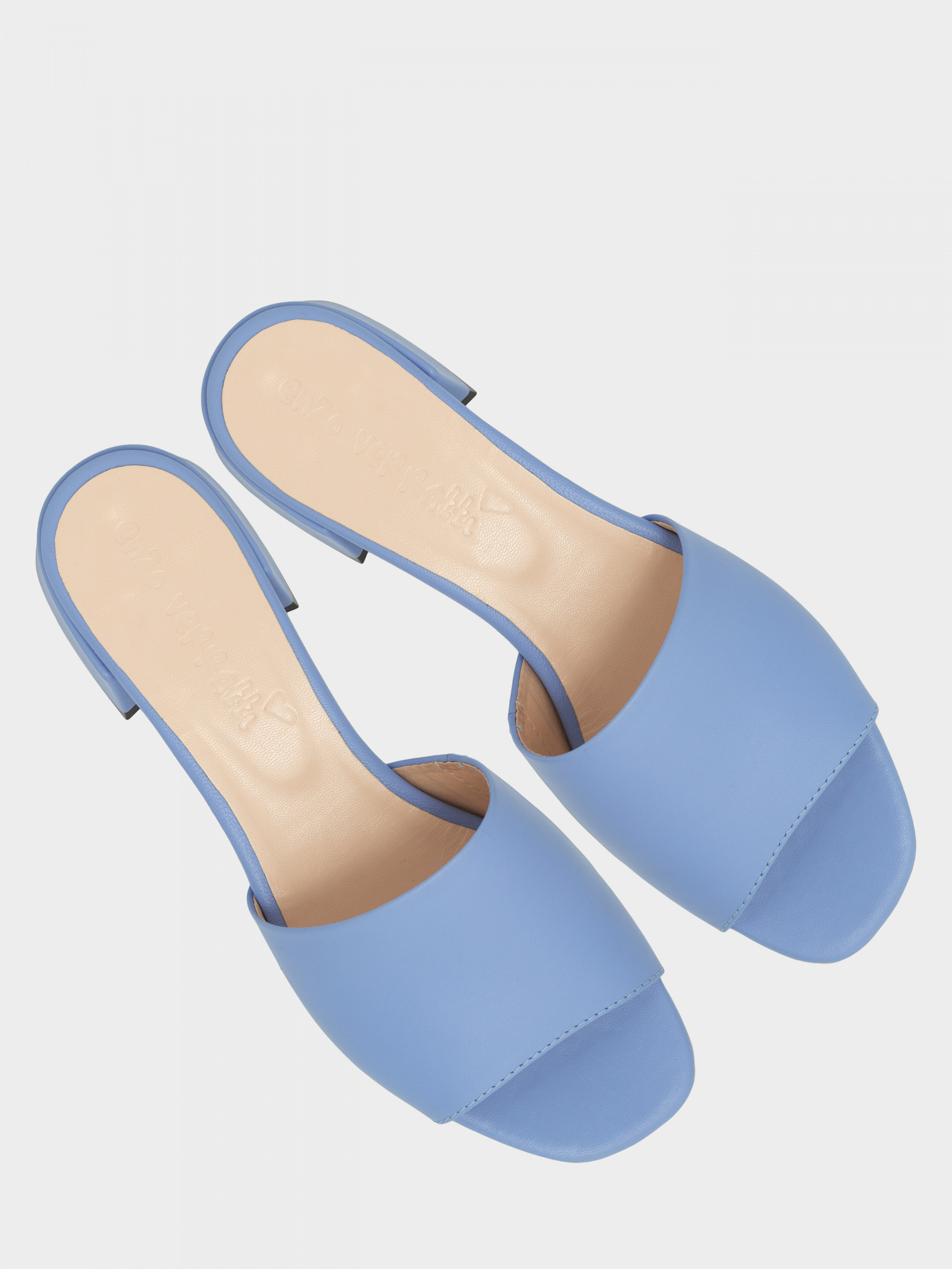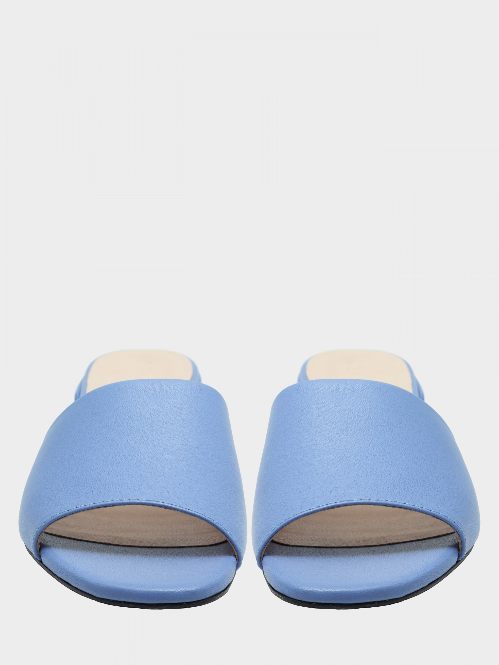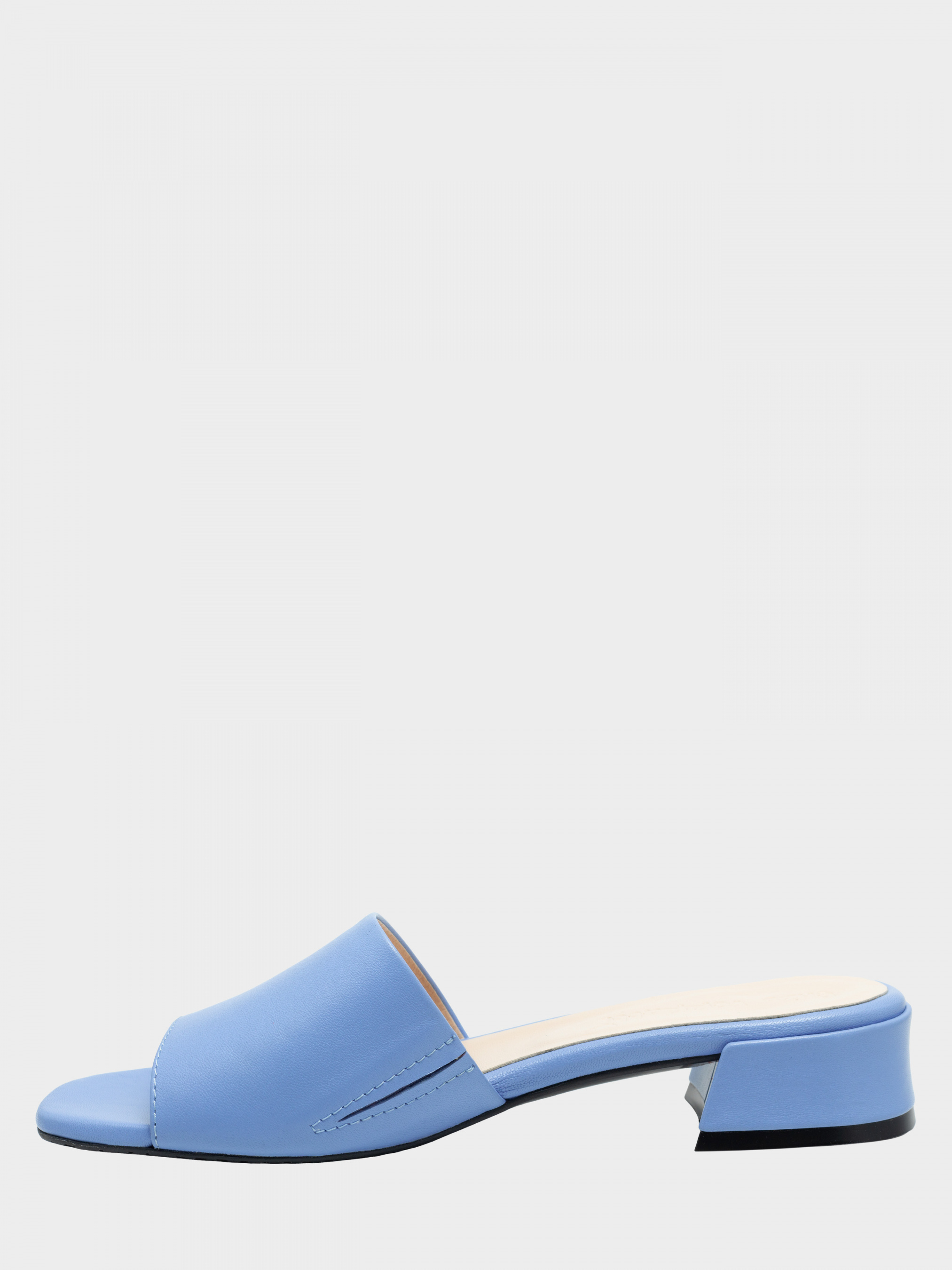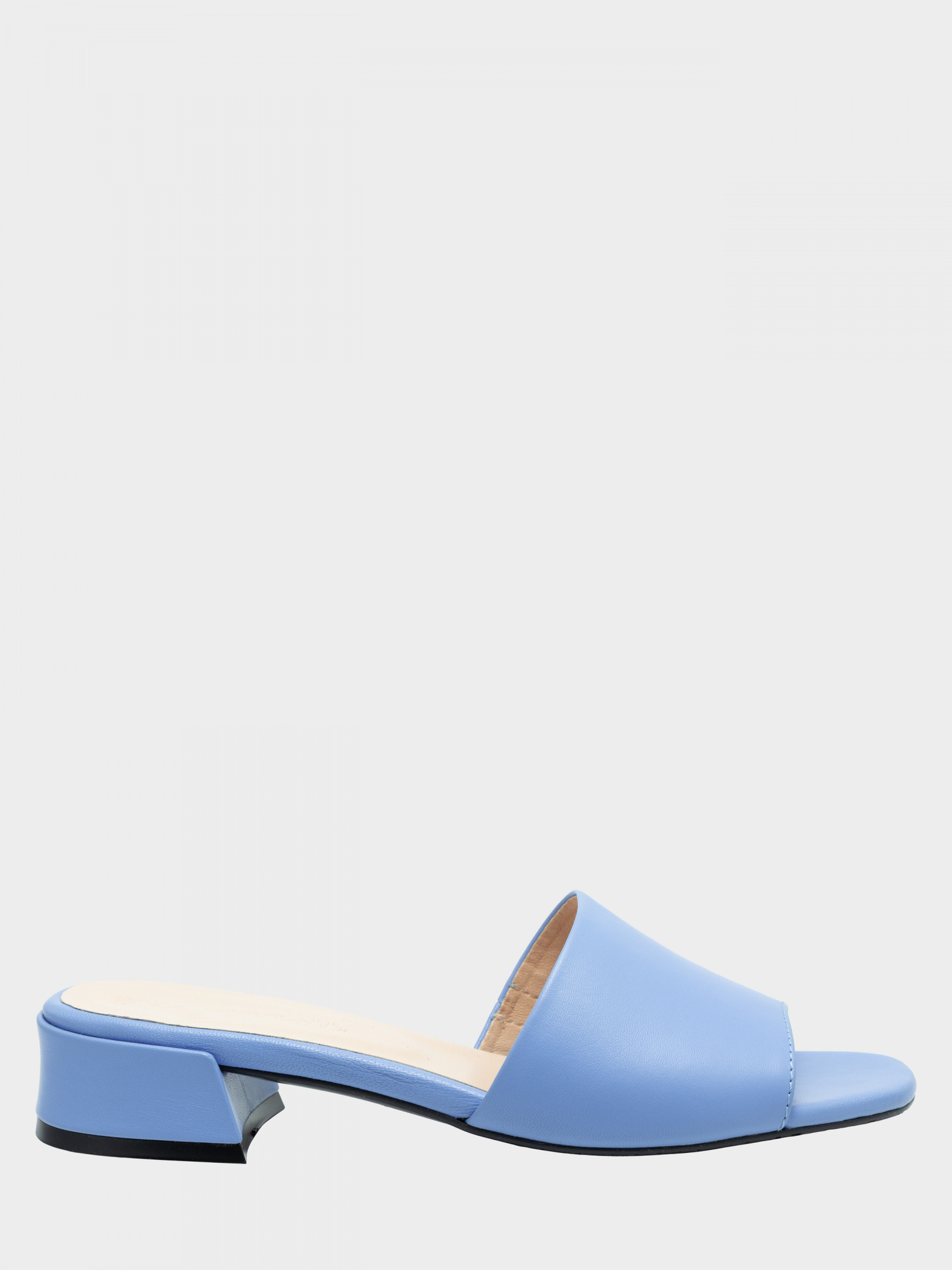 Шльопанці з натуральної м'якої шкіри блакитного кольору. Є гумова вставка з внутрішньої сторони для повноти підйому. Устілка- з силіконом. Висота каблука 3 см. 35 р - 22,5 см, 36 р - 23,3 см, 37 р - 24 см, 38 р - 24,6 см, 38 р 24,6 см, 39 р 25,2 см, 40 р - 26 см.