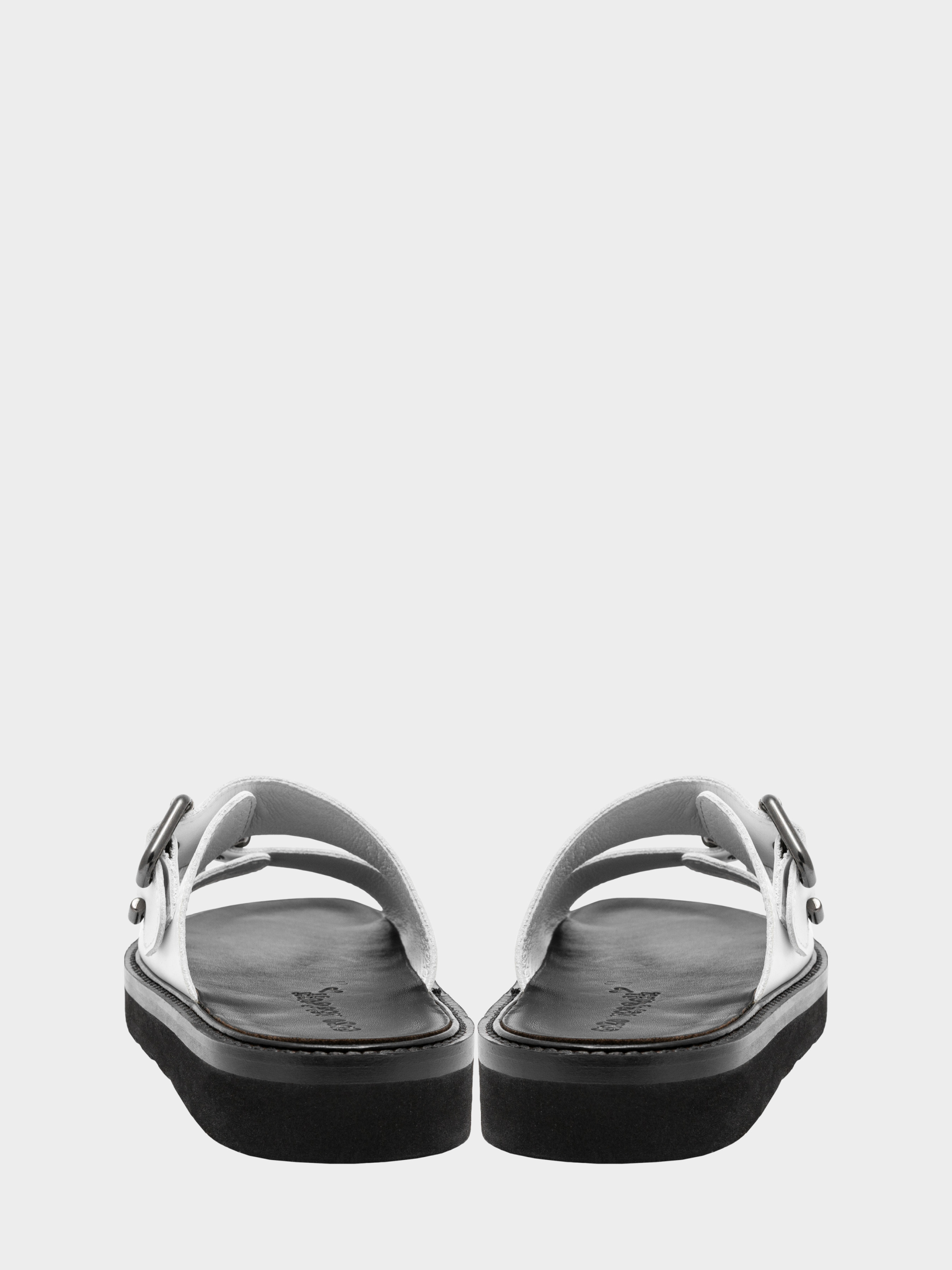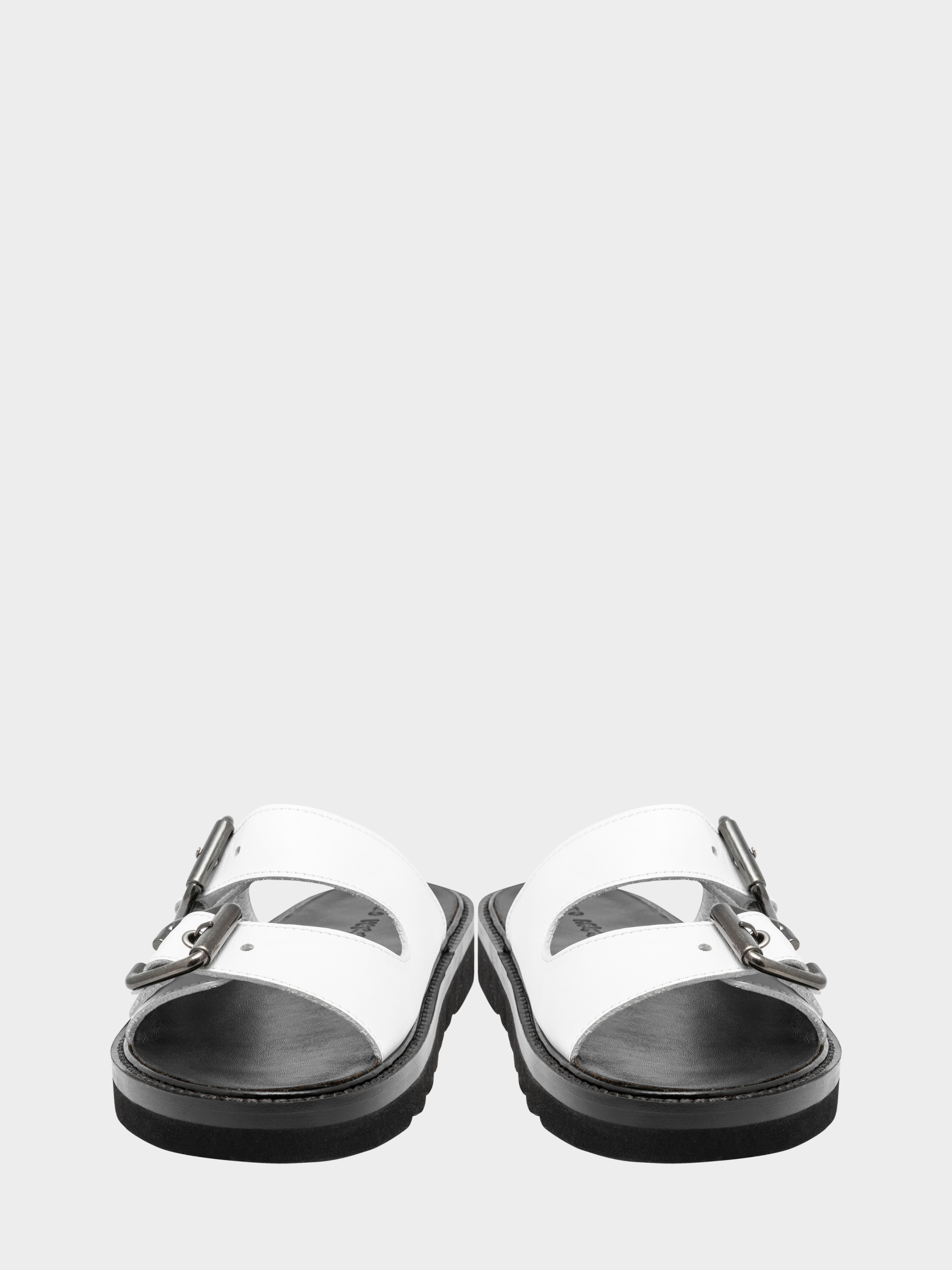 Жіночі шльопанці в трендовом грубому стилі Fisherman, виготовлені з білої натурально шкіри з великими чорними пряжками, які гармонійно виглядають з чорної підошвою висотою 2 см з мікропористої гуми італійського виробництва стійкою до стирання Vibram. Наявність пряжок дозволяє регулювати повноту моделі. Шльопанці, дуже зручні і стильні, зійшли до нас з модних подіумів і стали доступними і популярними. Розмірна сітка по довжині устілки: 36 р - 23,6 см, 37 р - 24,3 см, 38 р - 25,2 см, 39 р - 26 см, 40 р - 26,6 см.