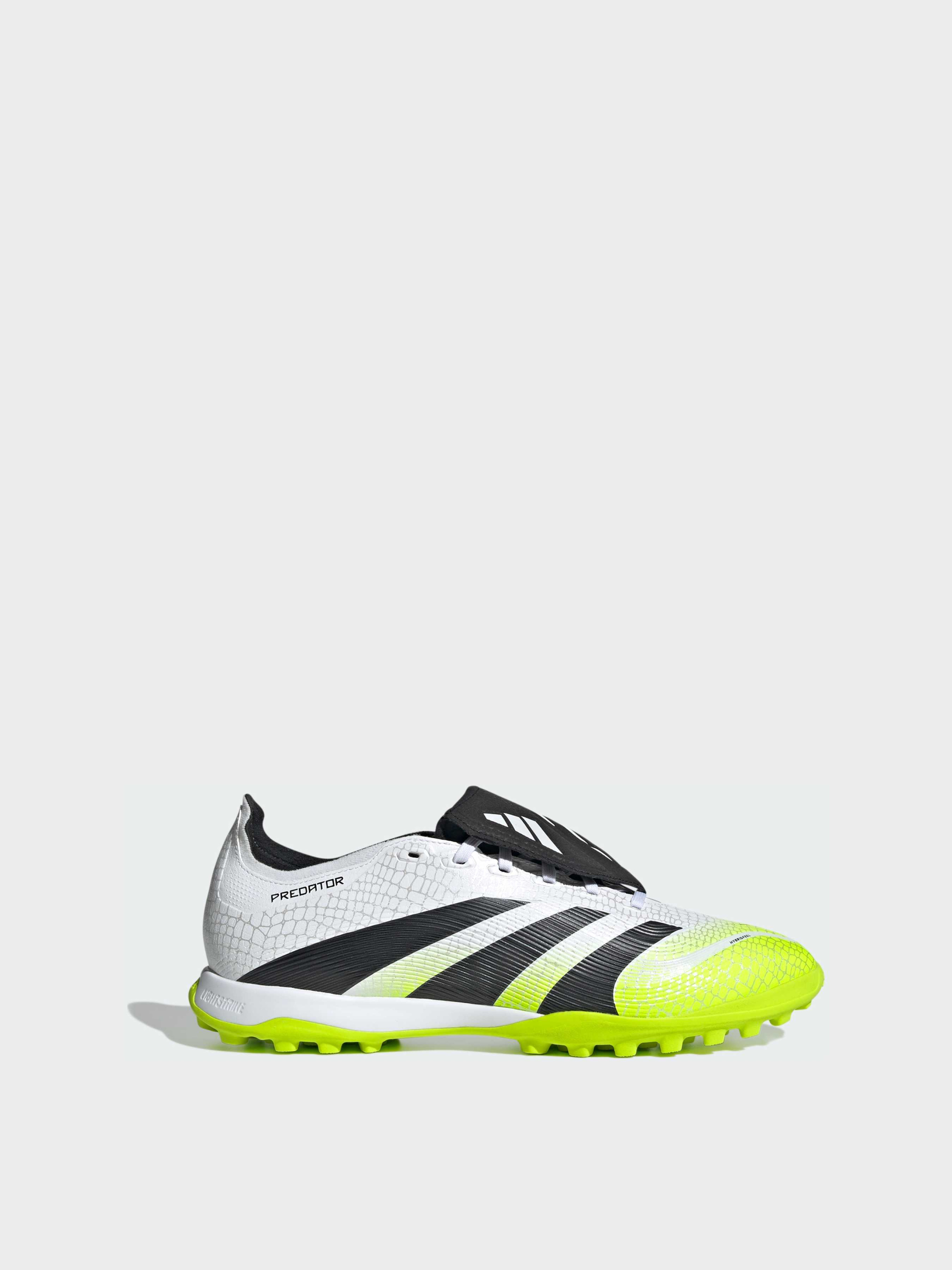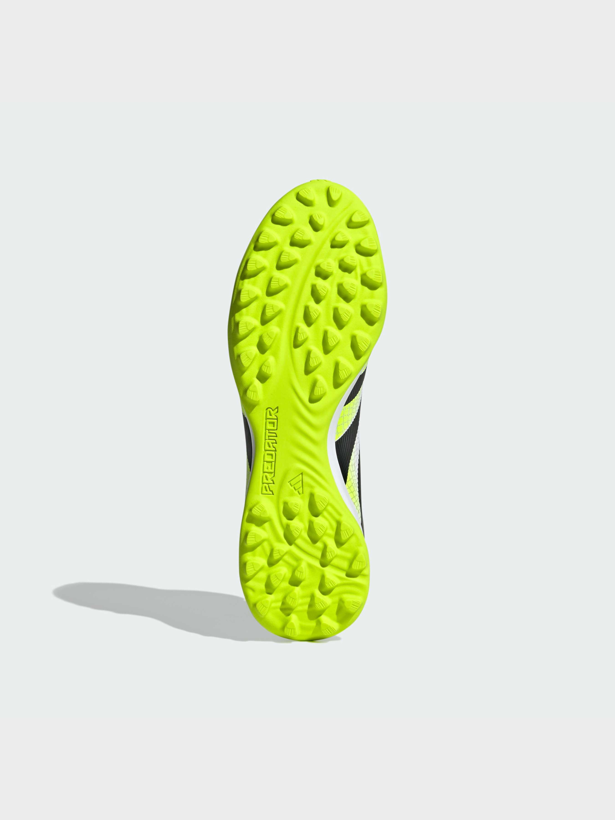 Характеристики Амортизація Lightstrike Верхня частина з гібридної тканини з елементами Strikescale Відкидний язичок Стандартний крій Текстильна підкладка Шнурівка Гумова підошва для асфальту, гумового покриття та штучного газону з коротким ворсом Опис Відчуй різницю між прагненням забити гол і впевненістю в тому, що ти його заб'єш, з бутсами adidas Predator, створеними для досягнення цілей. Ці бутси League оснащені верхом Hybridfeel з 3D текстурою по всій поверхні, відкидним язичком і елементами Strikescale, які допомагають контролювати м'яч при ударах. Проміжна підошва Lightstrike і міцна гумова підошва з протекторами забезпечать комфорт і стабільність на штучному газоні.