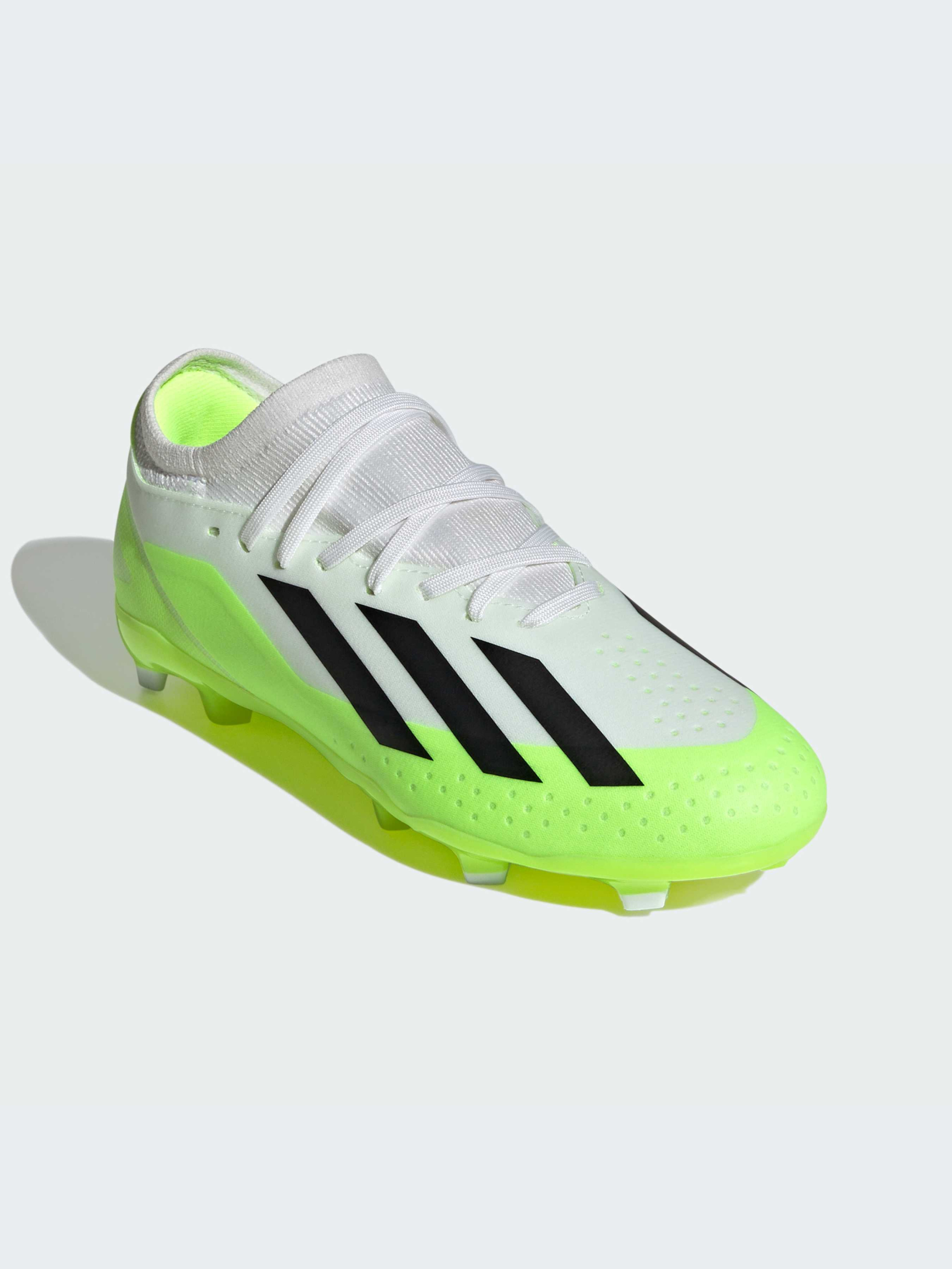 Гра закінчилася? Ні. Це пауза, поки ти змінюєш її напрямок. Знову. І ще раз. Любиш змушувати суперників гадати? Відірвися на повну в adidas X Crazyfast. Ці юніорські футбольні бутси з високошвидкісною підошвою для твердого ґрунту забезпечують стійкість на сухій натуральній траві. Легкий текстильний верх з покриттям і тонка трикотажна панчоха забезпечують надійну фіксацію. Верх цієї моделі на 50% складається із перероблених матеріалів і представляє одне з наших рішень зі скорочення пластикових відходів.