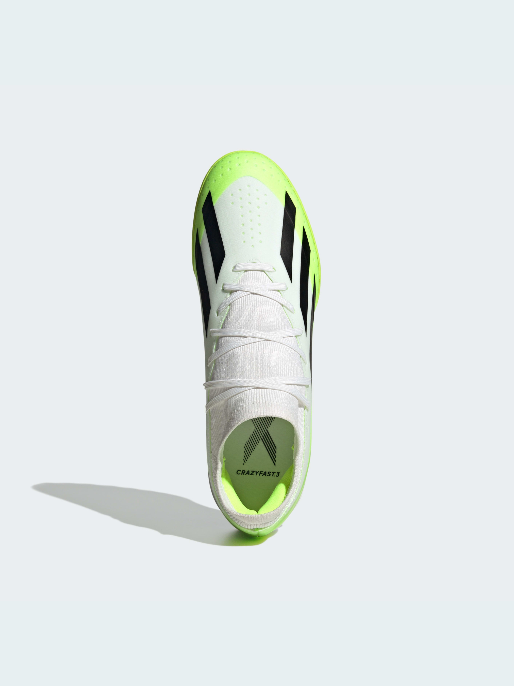 Гра не йде? Ні. Вона просто чекає, коли ти її зміниш. Знову. І знову. Любиш змушувати суперників гадати? Відірвися на повну в adidas X Crazyfast. Гумова підошва та міжпідошва з м'якого матеріалу EVA забезпечують стійкість на коротковорсовому синтетичному покритті навіть за найвищих швидкостей. Верх з легкого текстилю з покриттям і плоским в'язаним манжетом, що забезпечує надійну фіксацію, має додаткові шари тільки там, де потрібне посилення. Верх цієї моделі на 50% складається із перероблених матеріалів і представляє одне з наших рішень зі скорочення пластикових відходів.