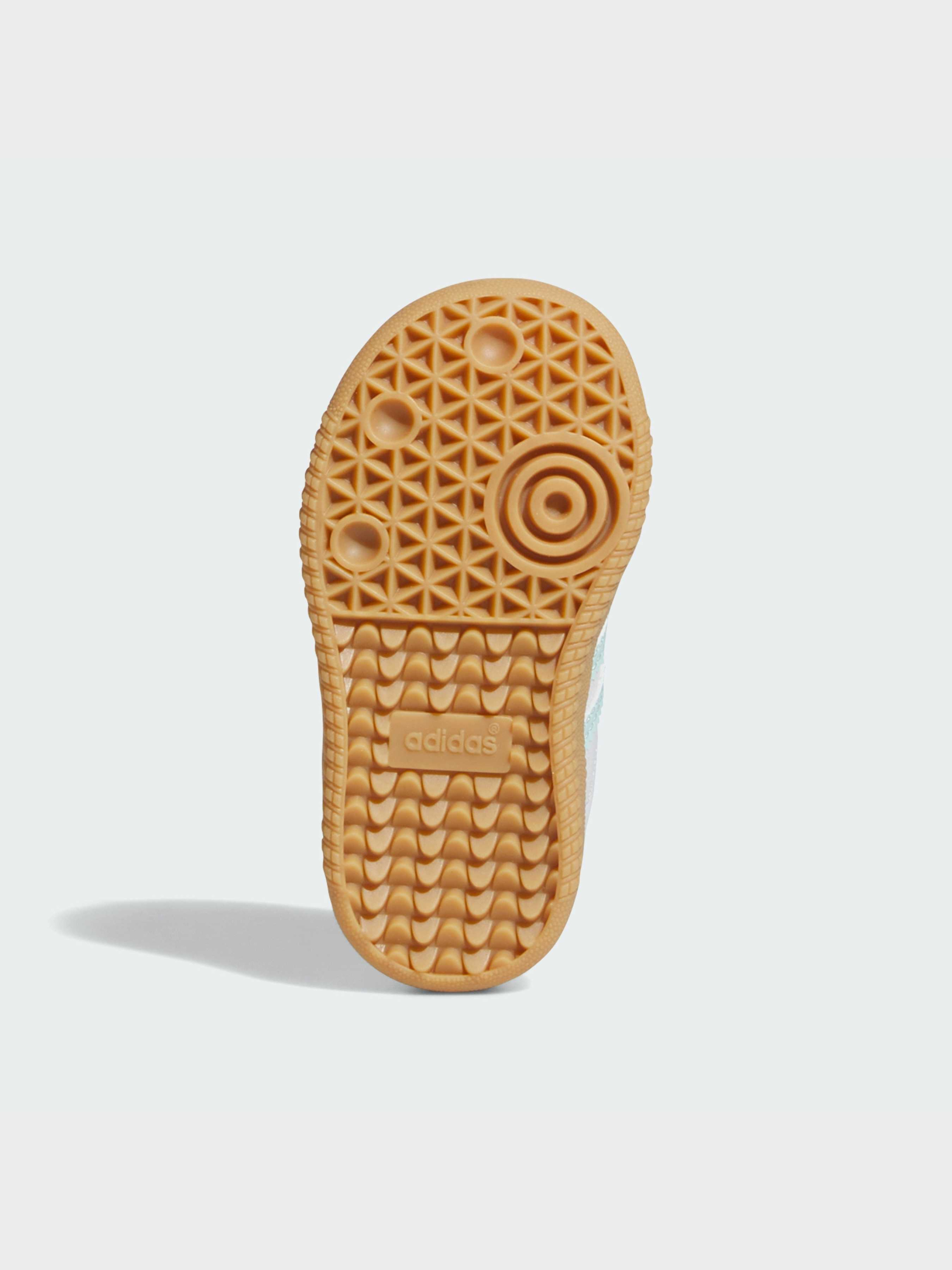 Характеристики Верх зі шкіри Підкладка із синтетичного матеріалу Стандартний крій Устілки OrthoLite® Еластичні шнурки Гумова підошва Опис Якщо перенестися в 1960-ті роки, то можна виявити, що професійні футболісти носять adidas Samba, точнісінько такі самі, як ці дитячі кросівки. Ну, майже такі самі. Зменшені в розмірах для маленьких ніжок, вони мають м'який носок, який забезпечить комфорт протягом усього дня. Шкіряний верх, гумова підошва і три смужки залишилися незмінними.