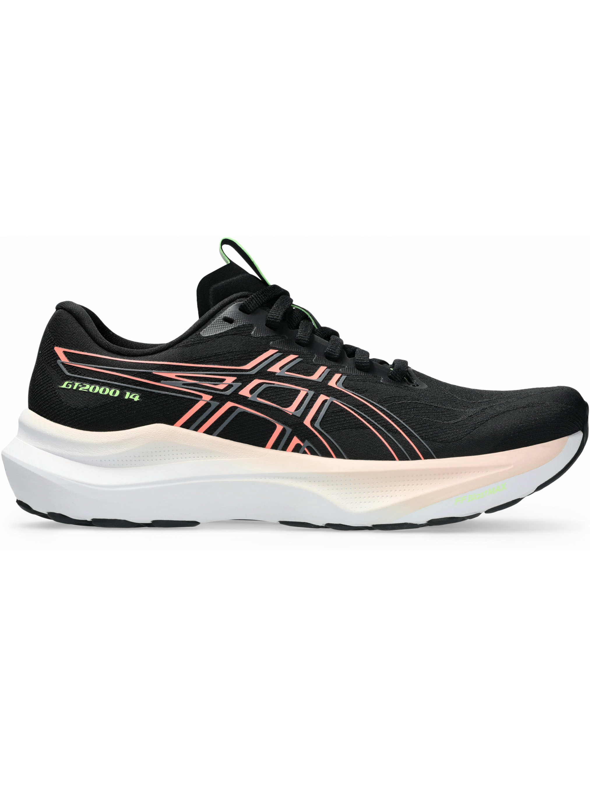 Кросівки для бігу GT-2000 14 створені для стабільного та комфортного бігу, допомагаючи зберігати зосередженість і впевненість під час щоденних тренувань. Це найбільш комфортна версія моделі, розроблена для тих, хто шукає додаткову підтримку та чітке спрямування руху. Верх виконаний з інженерної тканої сітки, яка має легку структуру та забезпечує приємне відчуття під час активного руху. Щонайменше 61% матеріалу верху виготовлено з переробленої сировини, що сприяє зменшенню впливу на довкілля. Ключовим елементом стабільності є 3D GUIDANCE SYSTEM, яка складається з трьох окремих компонентів і допомагає стопі рухатися природною траєкторією, забезпечуючи додаткову підтримку. Проміжна підошва поєднує FF BLAST MAX, що відповідає за м’яку та легку амортизацію, та PureGEL, який ефективно поглинає удари й зменшує навантаження на суглоби. Для плавного та енергійного руху вперед використовується спеціальний елемент, що підтримує стабільність кроку. Зовнішня підошва поєднує матеріали AHAR LOW HARDNESS та вставку AHARPLUS у зоні п’ятки, підвищуючи стійкість до зношування. Устілка OrthoLite X-30 забезпечує м’який комфорт з першого кроку. Світловідбиваючі елементи підвищують помітність у темний час доби. Під час виробництва устілки застосовано технології зі зменшеним споживанням води та скороченими викидами вуглецю, а устілка, внутрішня вкладка, носок, люверси, язичок і підкладка коміра виготовлені з перероблених матеріалів.