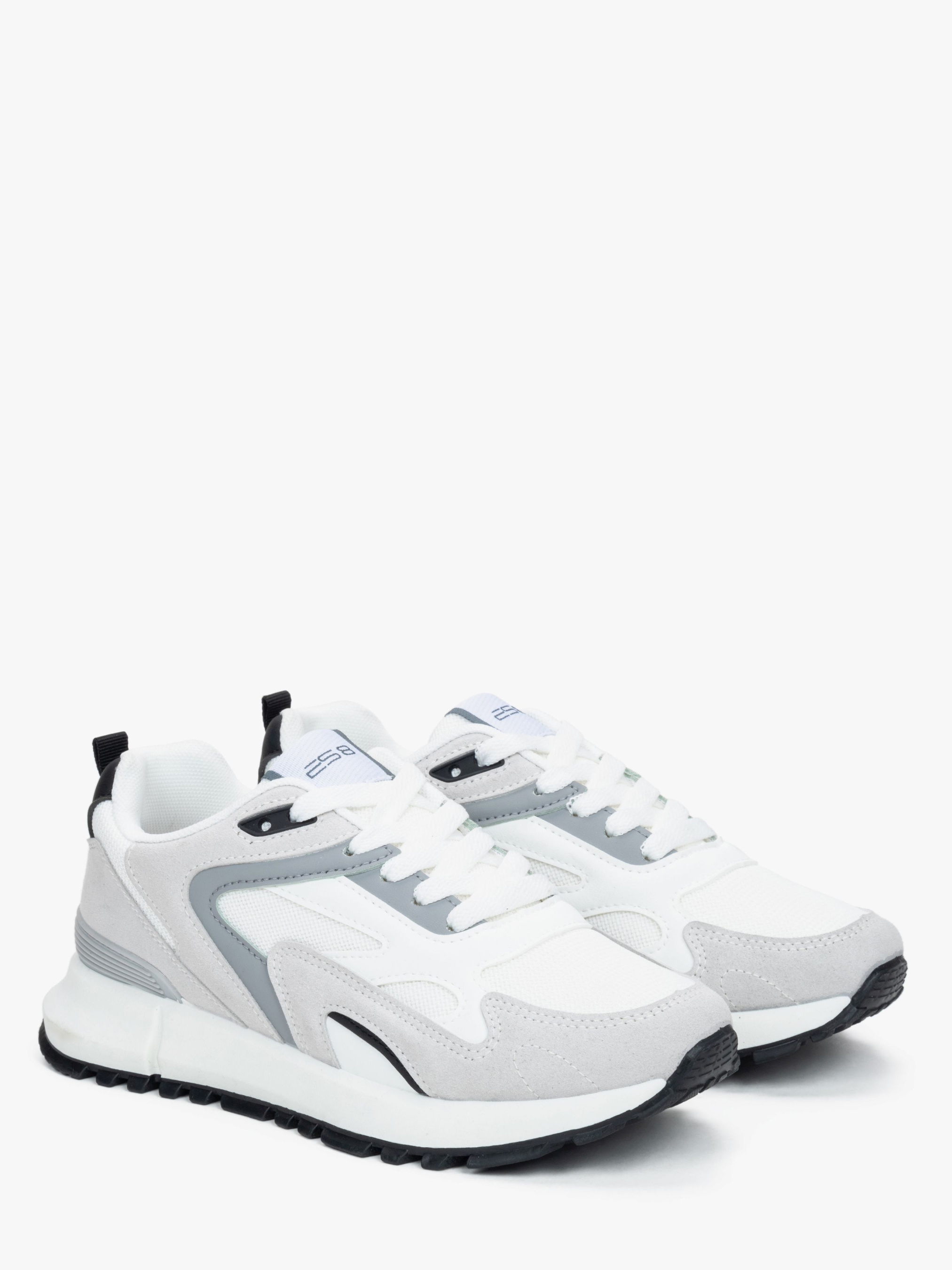 Кросівки ES8 90-2301-79093, колір білий Особливості замірів модель зменшена за розміром Сезон демісезон Вид взуття кросівки Стиль повсякденний Колір сірий, білий Кольорова гама сіра, біла Матеріал верху текстиль, шкірозамінник Підошва ПВХ Підкладка текстиль Устілка 100% натуральна шкіра Вид підборів низький хід Виробництво Китай