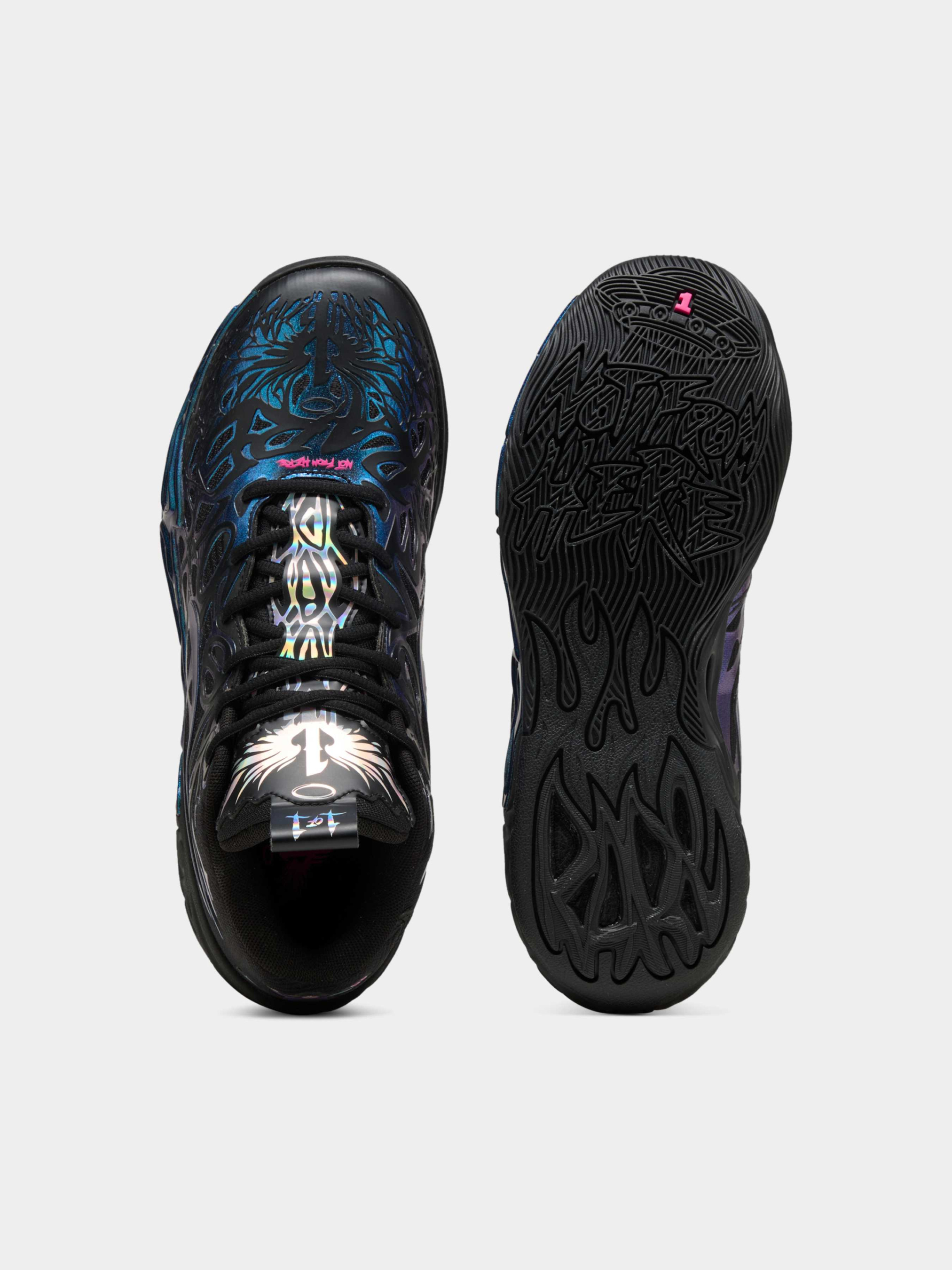 Четверта серія баскетбольного взуття LaMelo Ball обов’язково підкорить всесвіт. Продовжуючи наратив «BE MELO», кросівки MB.04 дозволять вам перетворитися на самого Ламело. Унікальна фактура трикотажного верху разом із рельєфними елементами 5D, які огортають взуття від носка до п'яти, забезпечує повітропроникність, а також фірмовий стиль Ламело. Райдужні сяйва завжди були основним елементом Всесвіту Мело, а цей дроп продовжує цю традицію. Чорна основа створює чудове тло для райдужного покриття, а кумедний логотип на п'яті покращує ваші рухи! Характеристики NITROFOAM™: удосконалена піна з упорскуванням азоту, яка була розроблена для забезпечення максимальної чутливості та амортизації, а також легкості корпусу CMEVA: пресований матеріал EVA від PUMA, який гарантує легкість Стандартна повнота Сітчастий верх для повітропроникності та підтримки Шнурівка Технологія піноутворення CMEVA гарантує найкращу чуйність та амортизацію, а також легкість Міцна рельєфна підошва із гумової суміші, яка гарантує довговічність, додаткове зчеплення та захист від ковзання Багатошарова конструкція разом із сегментами різної висоти надає додаткову стабільність та цілеспрямовану підтримку Рельєфна структура 5D, яка обгортає взуття від носку до п’яти, декорована написами Melo На п’яті вставка із TPU для додаткової бічної підтримки з брендингом LaMelo Кожен екземпляр MB.04 має на п’яті унікальний логотип спеціального кольору, який пов’язан із історією взуття