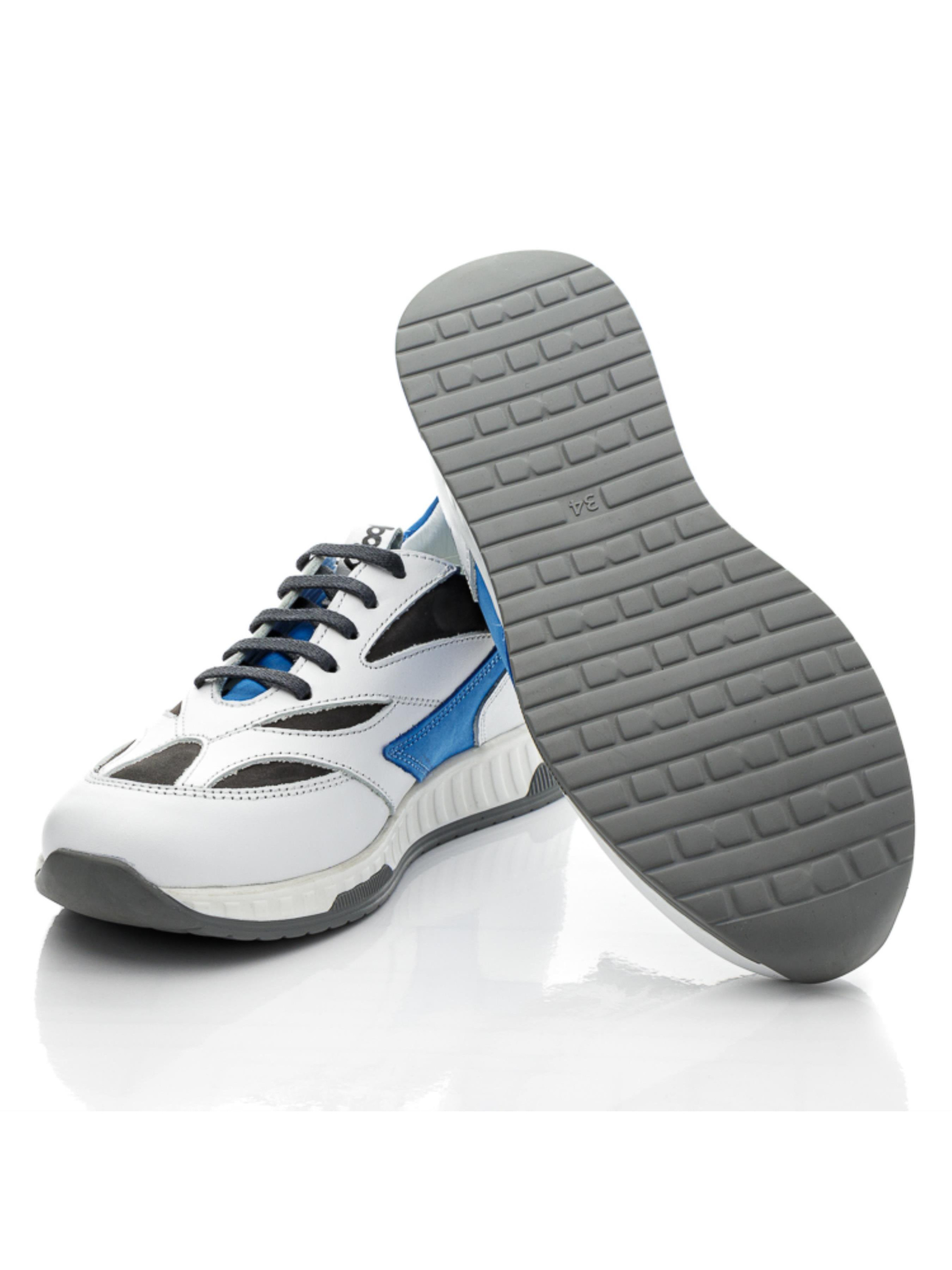 Дитячим стопам буде неймовірно комфортно в таких стильних кросівках, адже пошиті вони з якісних матеріалів та з врахуванням ортопедичних елементів. Дитячі кросівки для хлопчика пошиті з натуральної шкіри білого кольору. Поєднання базового білого кольору з насиченим синім та чорним створює стильний тандем та класний вигляд. Фактуру моделі доповнено вставками з натурального нубука 2-х контрастних кольорів. П'яточну зону моделі прикрашає фірмовий логотип виробника. Підошва в кросівках комфортна, легка, відлита з якісної резини. Анатомічно правильна устілка, яка поглинає удари під час ходьби та бігу, супінатор та жорсткий задник забезпечать зручність в тривалих прогулянках. Спосіб застібання - шнурівка, яка дозволить надійно зафіксувати ніжку.