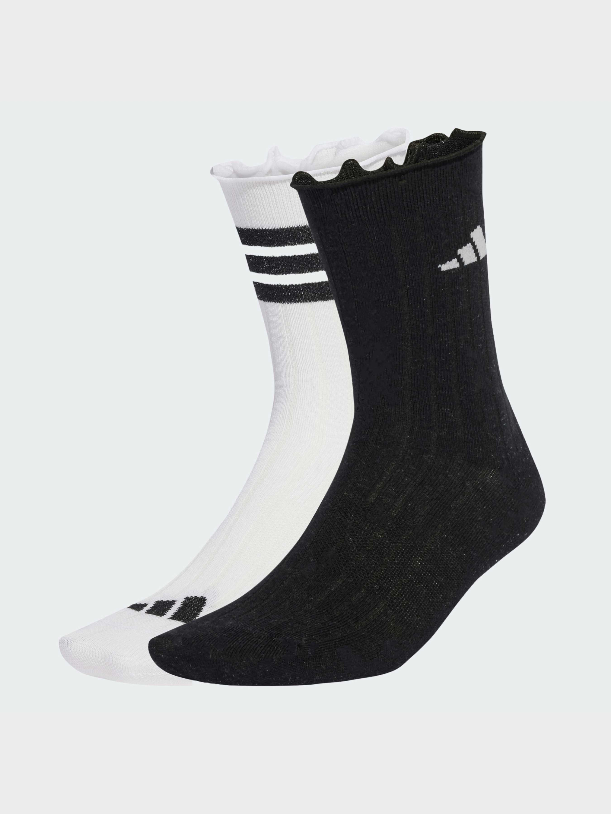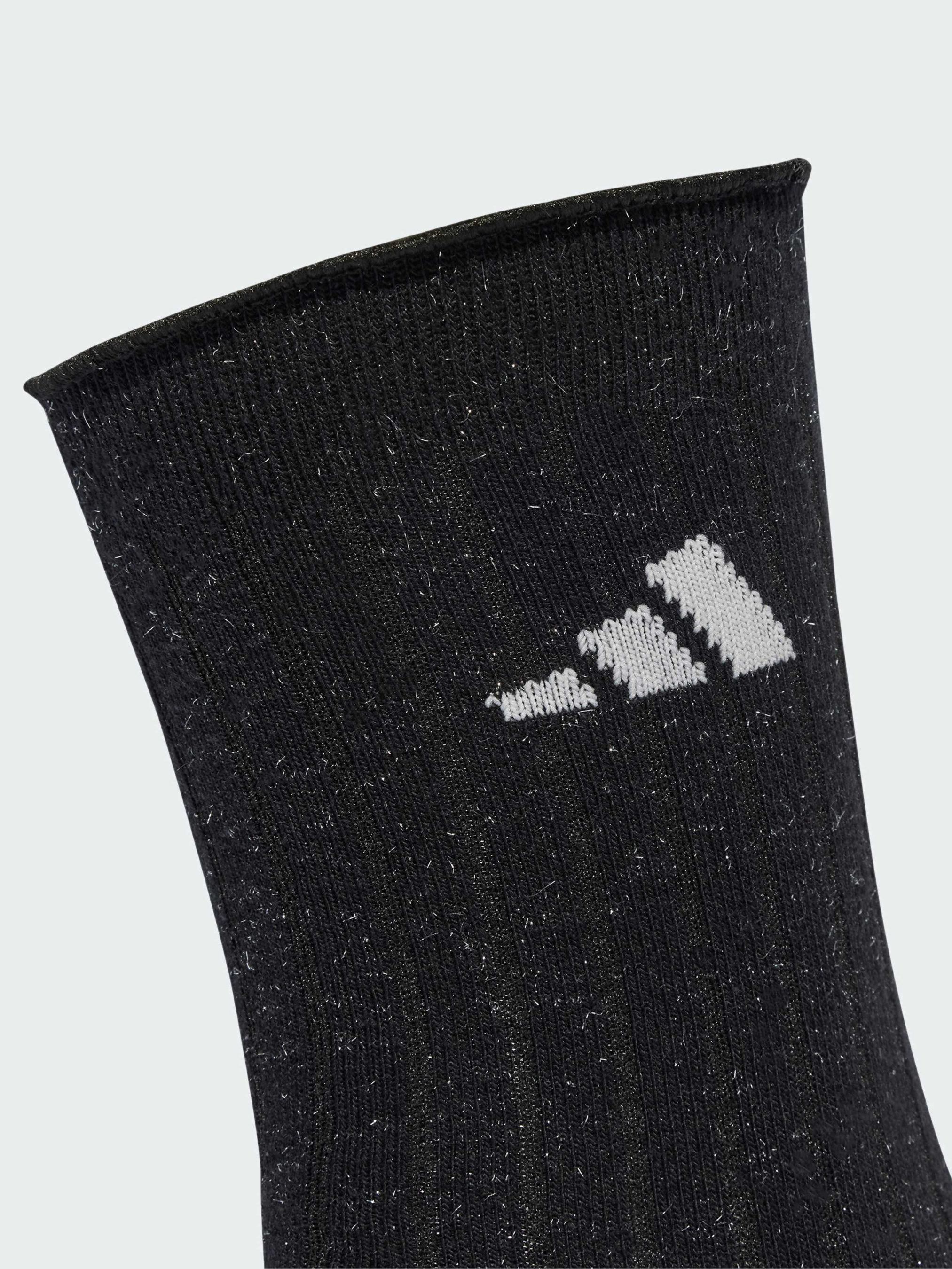 Характеристики 44% перероблений поліестер, 27% бавовна, 25% модал, 3% еластан, 1% металізований перероблений поліестер Дві пари в упаковці Класична довжина до середини литок Опис Відчувай комфорт з цими стильними шкарпетками adidas. Виготовлені з м'якої еластичної суміші бавовни, вони щільно облягають ногу, забезпечуючи ідеальну підтримку без відчуття здавлювання. Вплетені металізовані волокна надають шкарпеткам блиску.