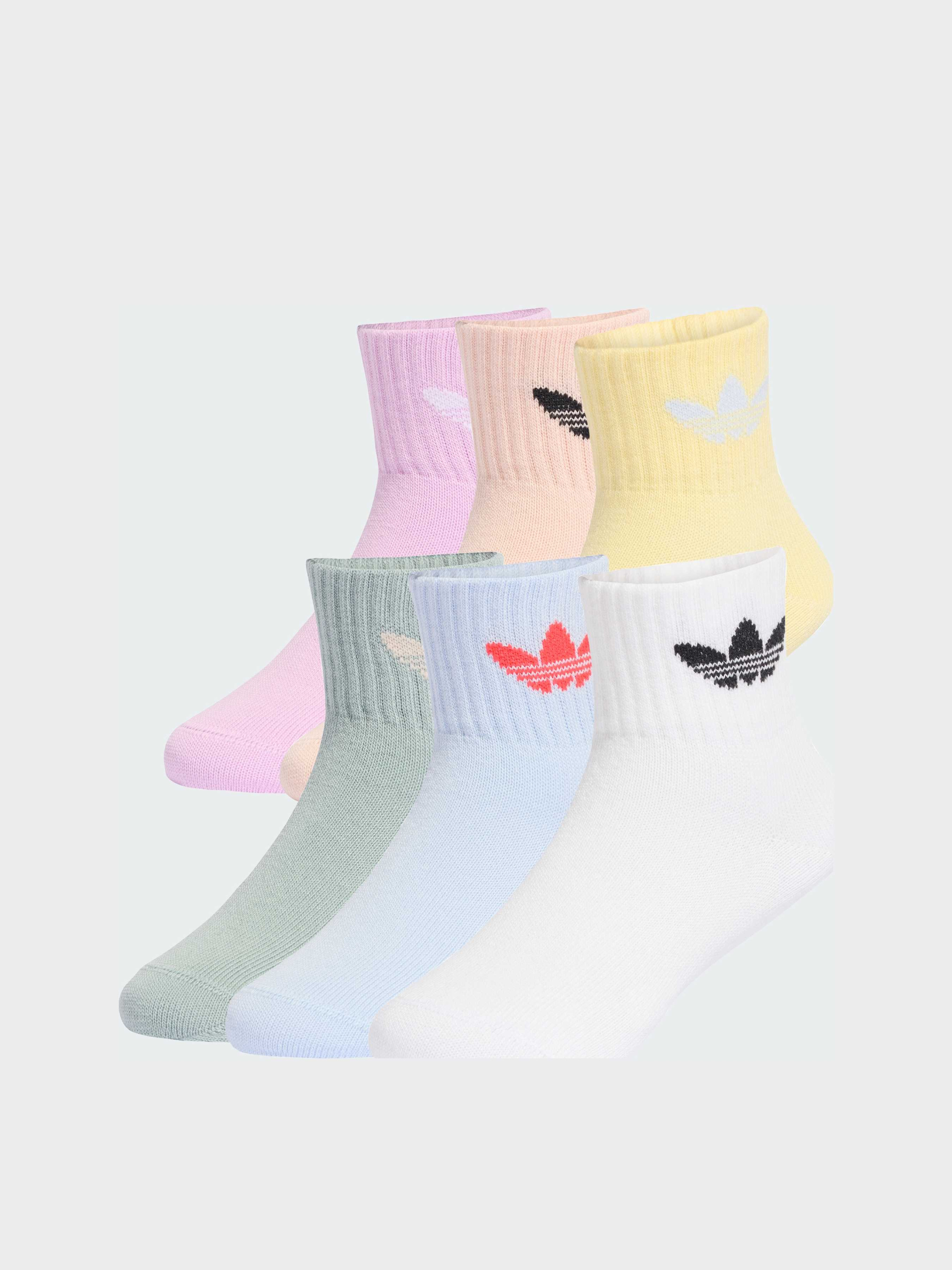 Характеристики 55% бавовна, 41% перероблений поліестер, 3% еластан, 1% перероблений поліамід Висота до щиколотки Шість пар в упаковці Постачається за системою балансу мас Better Cotton, тому цей продукт може не містити Better Cotton Опис Трилисник практично на кожен день тижня. Ці шкарпетки adidas з шістьма парами в упаковці привносять спортивний стиль як у будні, так і у вихідні. Еластичний нейлон забезпечує комфорт, чи то в школі, чи то на зустрічі з друзями. Завдяки різноманітності кольорів твої діти завжди зможуть підібрати пару, яка відмінно доповнить їхнє улюблене вбрання. Бавовна для цього виробу була отримана через компанію Better Cotton. Бавовна Better Cotton поставляється за моделлю ланцюжка поставок, званої балансом мас. Це означає, що Better Cotton не можна фізично відстежити до кінцевого продукту.