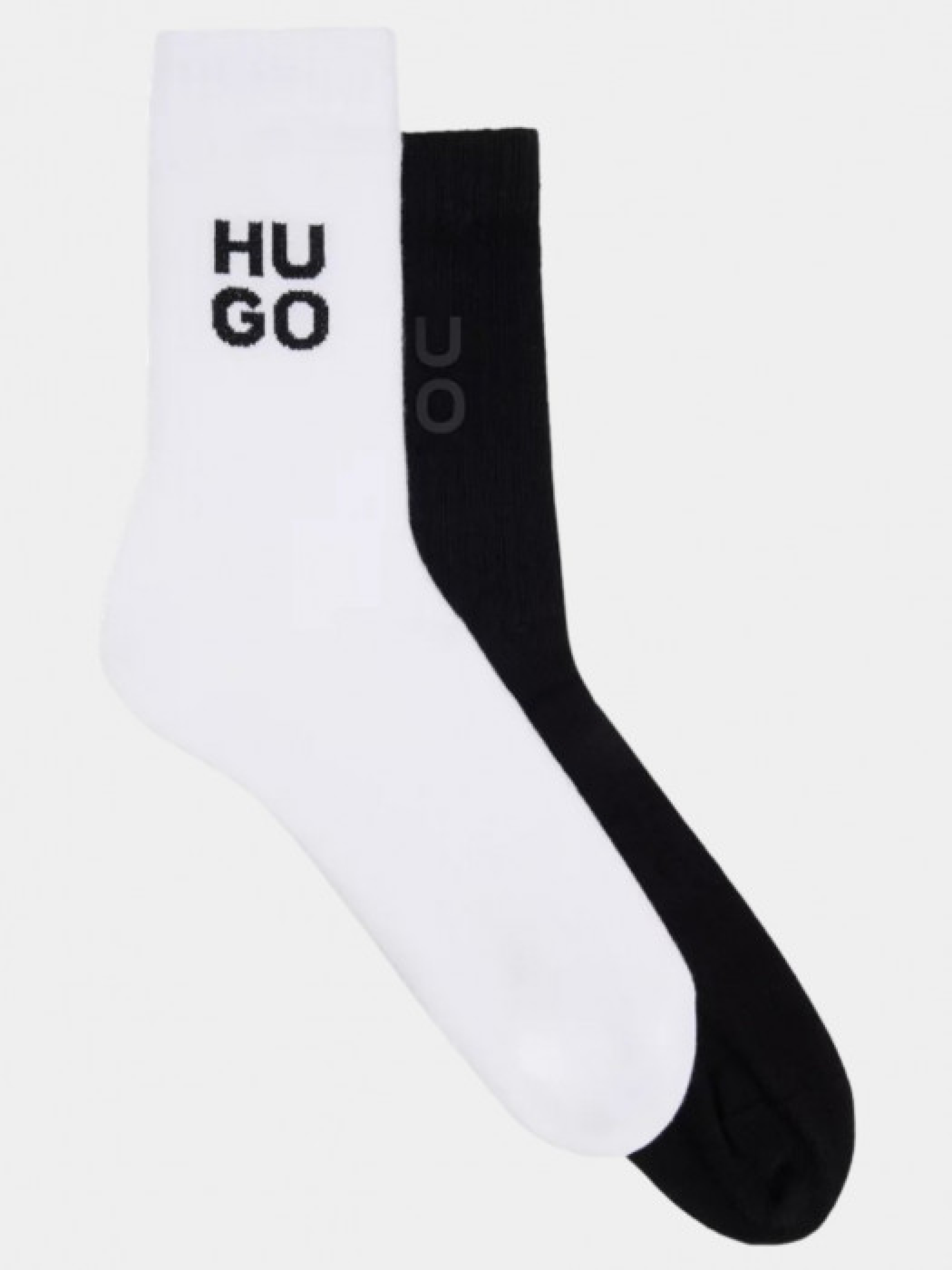 Набір коротких шкарпеток (модель 2P QS RIB EDGE CC) з логотипом HUGO на манжетах. У комплекті 2 пари: чорні та білі.