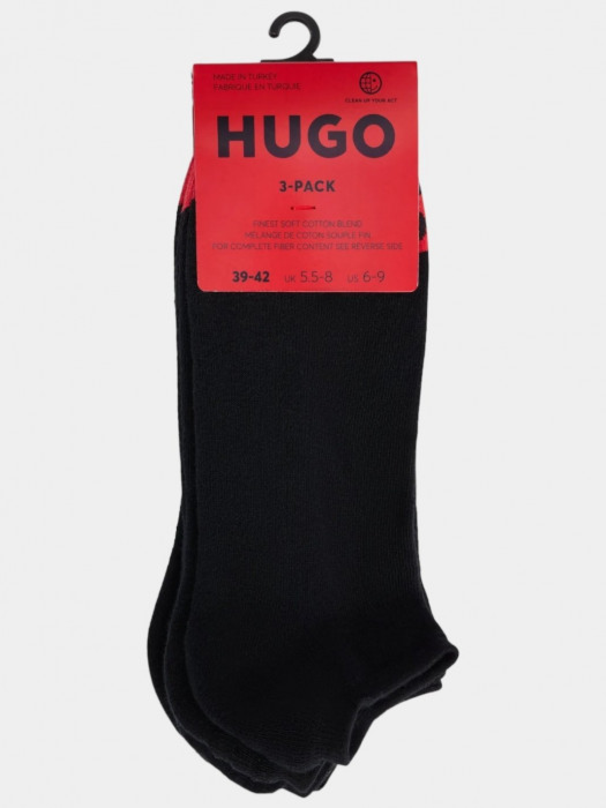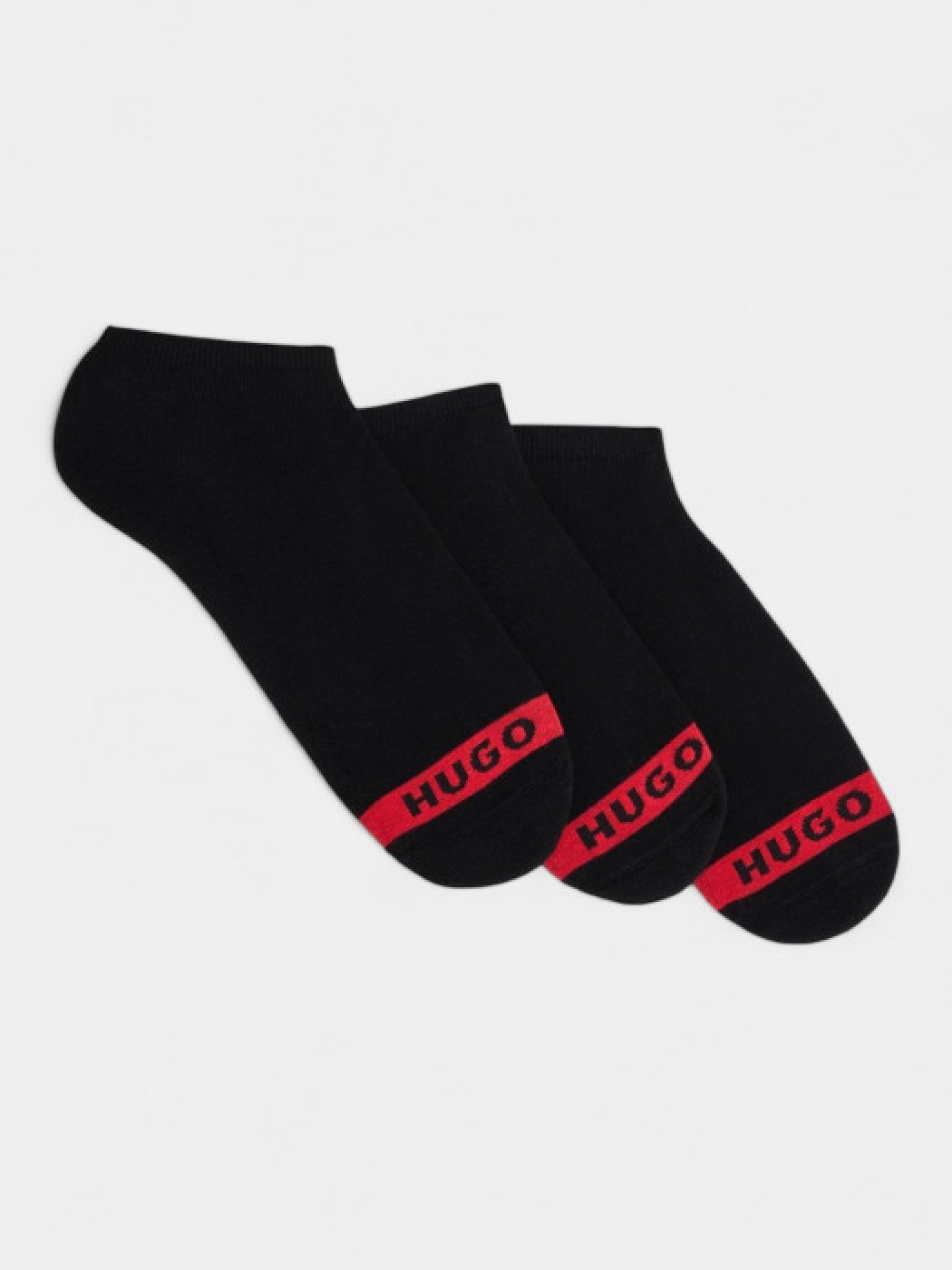 Набір з трьох пар низьких шкарпеток (модель 3P LC PLUSH TAPE CC), виготовлених з суміші бавовни, є ідеальними для носіння з низьким взуттям. Кожна пара має силіконові вставки на підошві для запобігання ковзанню і забезпечення надійного зчеплення. Шкарпетки також мають м'яку устілку для додаткового комфорту та фірмовий логотип HUGO, нанесений стрічкою.