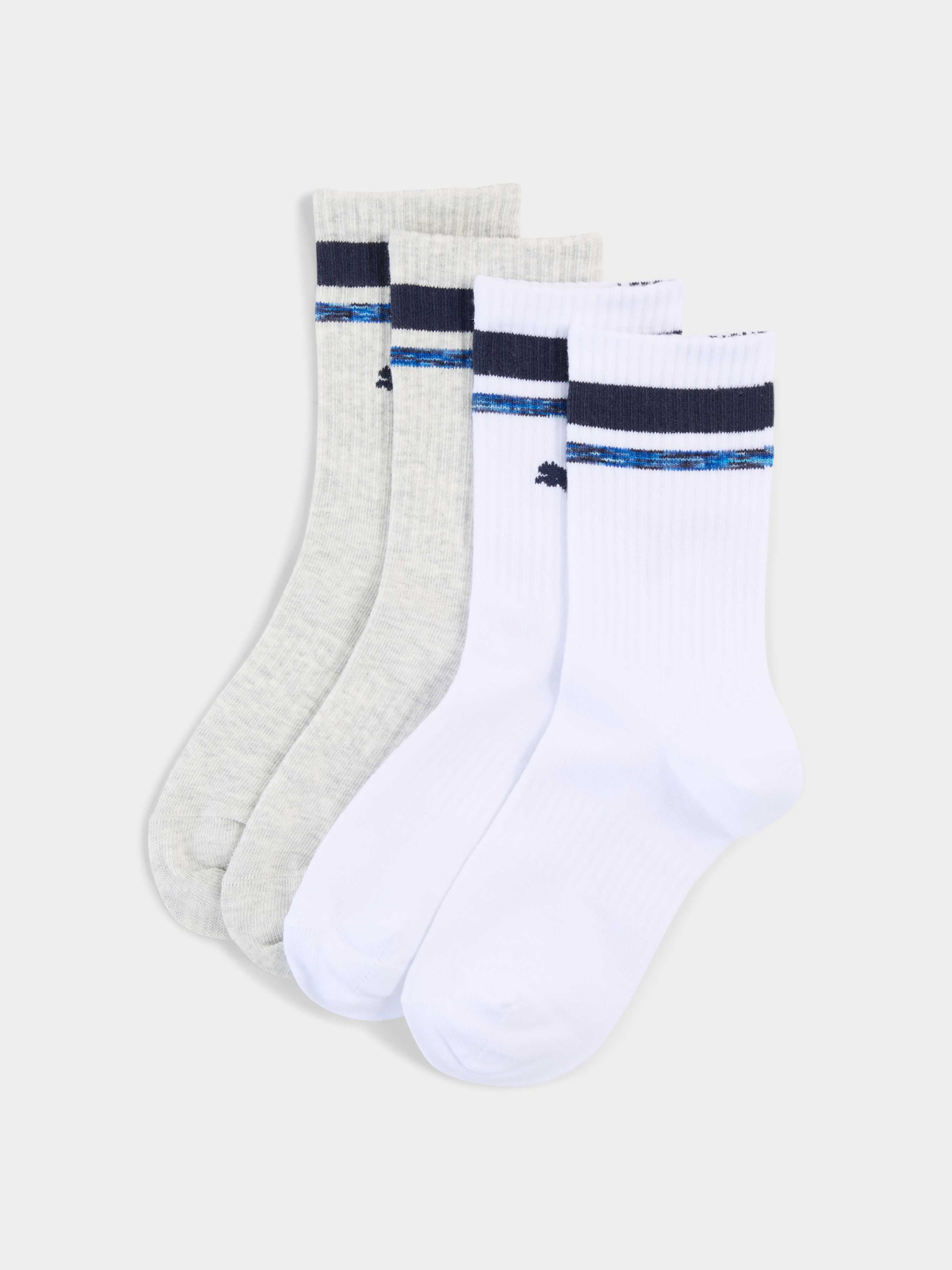 Ці дитячі шкарпетки класичної довжини відповідають філософії PUMA. Вони відрізняються одночасно спортивним і стильним дизайном. Завдяки м'якому бавовняному матеріалу твій хлопчик відчуватиме максимальний комфорт при контакті зі шкірою. Виготовлені з підтримкою зводу стопи для кращої посадки та стабільності. Поставляються в упаковці з 2х пар. Характеристики Вміст перероблених матеріалів: виготовлено з переробленого матеріалу не менше ніж на 30% і втілює крок уперед, до кращого майбутнього. Підтримка зводу стопи для кращої посадки та стабільності М'яка бавовняна тканина Комфортний стиль від PUMA Щоденний комфорт 2 пари в упаковці — для хлопчиків