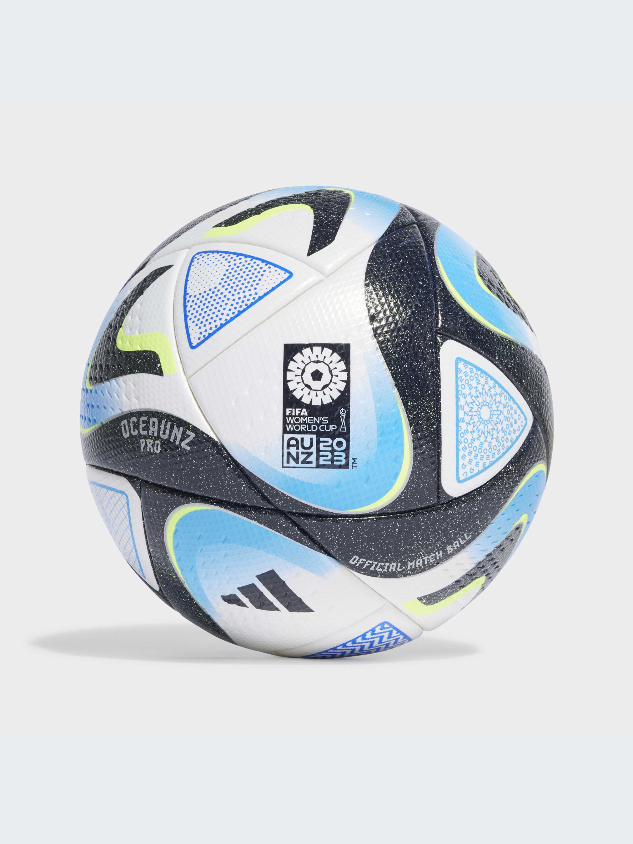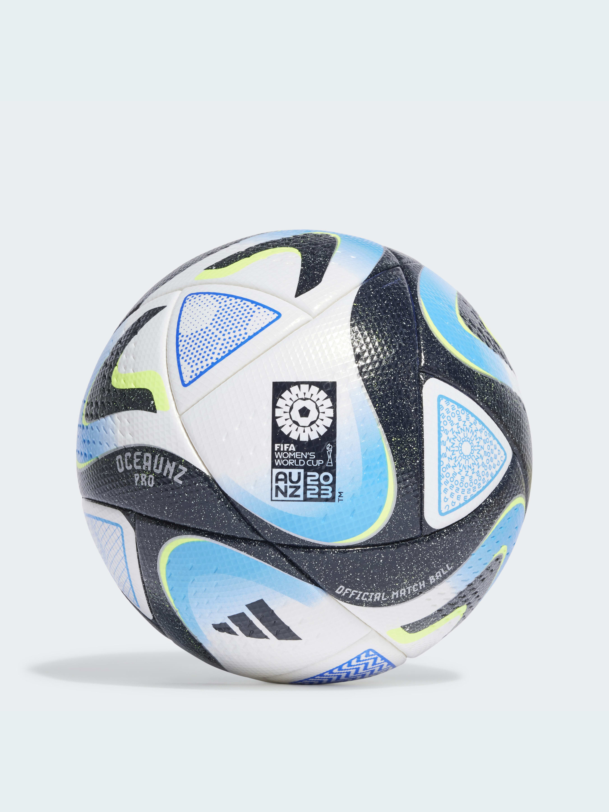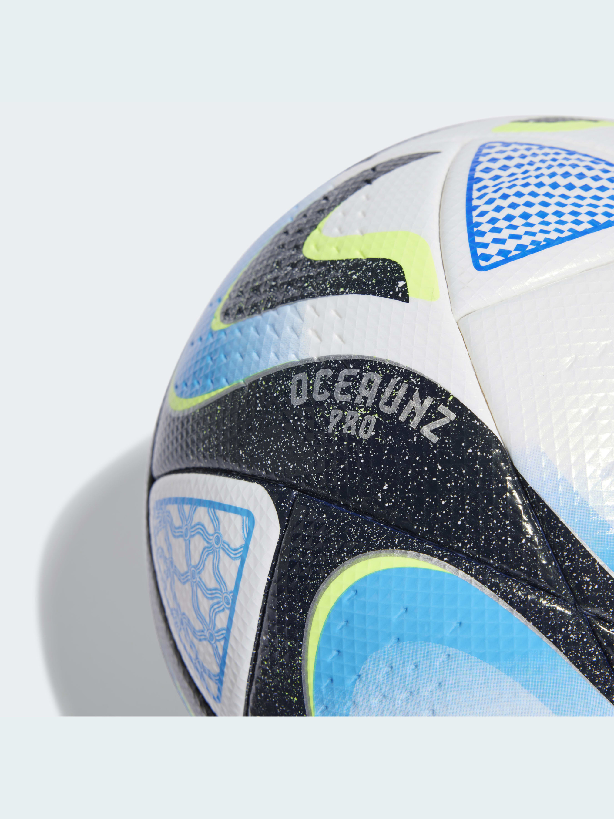 Створено для плавного футболу. Цей професійний м'яч adidas Oceaunz - офіційний м'яч, який використовується на ранніх стадіях Чемпіонату світу з футболу FIFA серед жінок, - вирізняється графікою, що відображає важливість мальовничих берегових ліній Австралії та Нової Зеландії, а також озер і водних шляхів, що підтримують життя. Його безшовна конструкція забезпечує передбачуваний політ і відскік. Знак Quality Pro - це найвища оцінка FIFA.