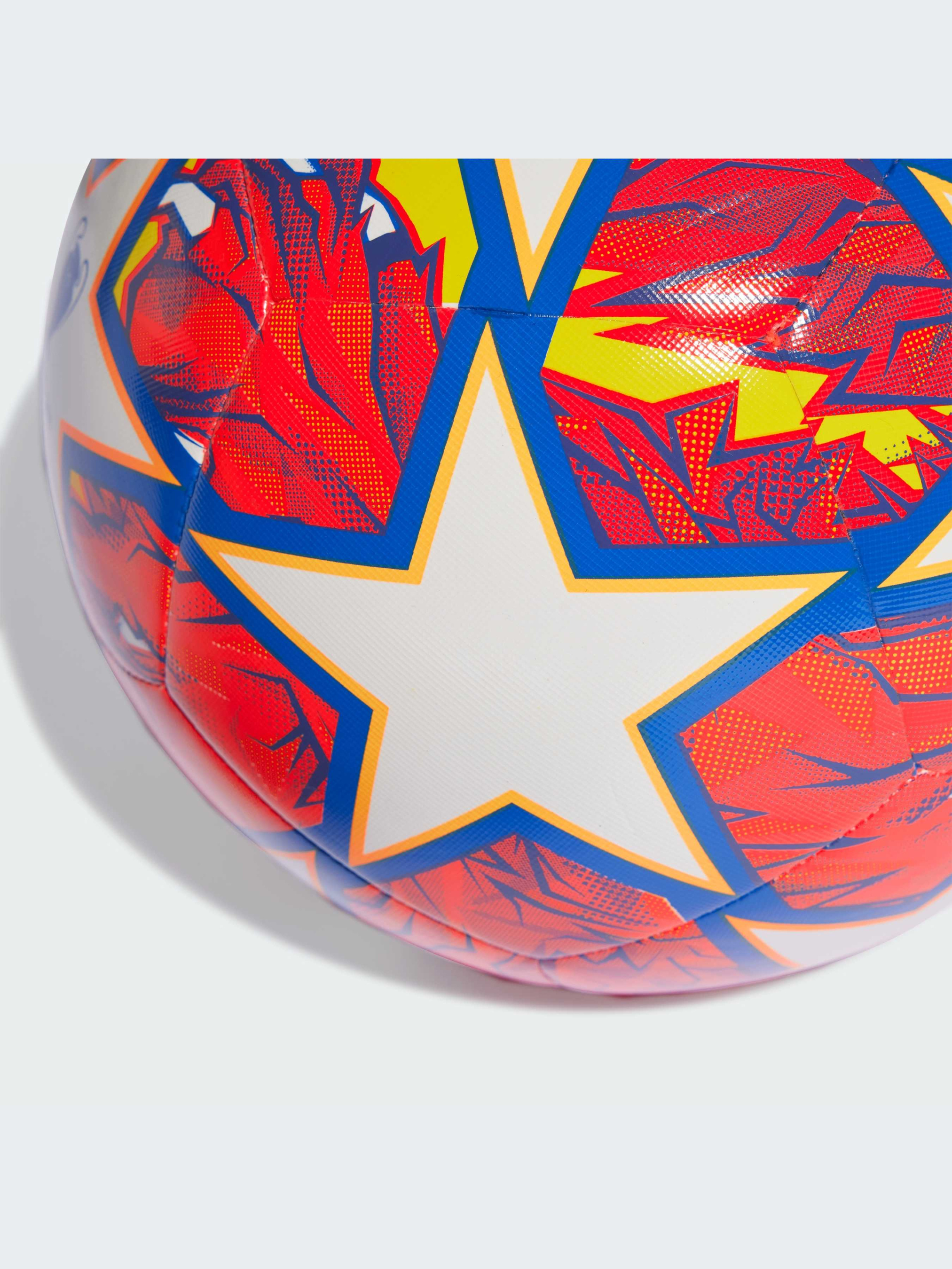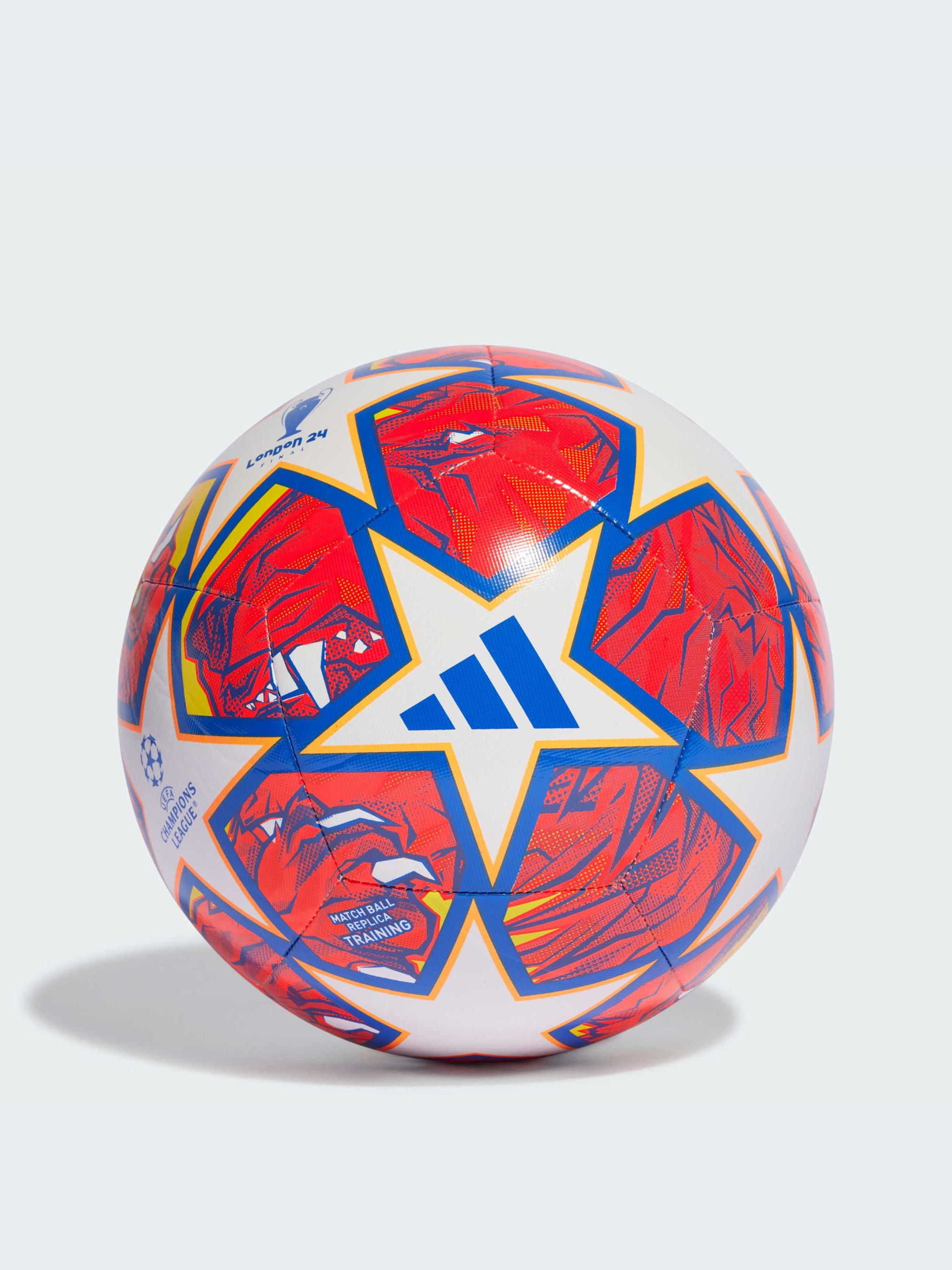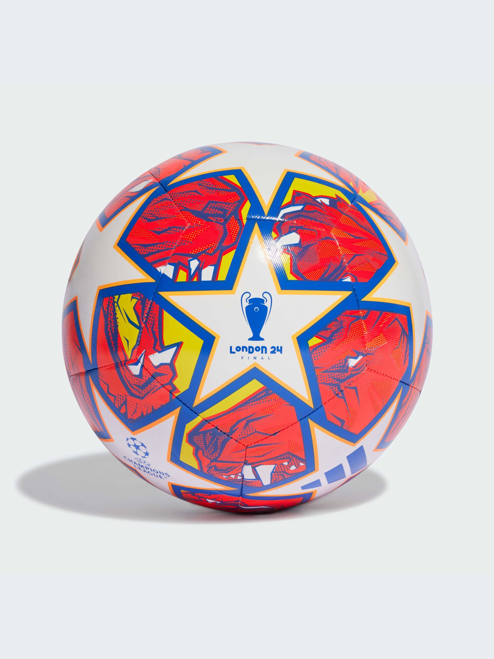 Гордість Лондона. Сміливий дизайн цього тренувального м'яча adidas UCL запозичений у офіційного м'яча для матчів, натхненного левом. Міцна конструкція з машинною прошивкою і бутиловий міхур допомагають йому витримувати постійні тренування. Продемонструй свої навички та переймися духом найбільшого змагання у футбольному світі.