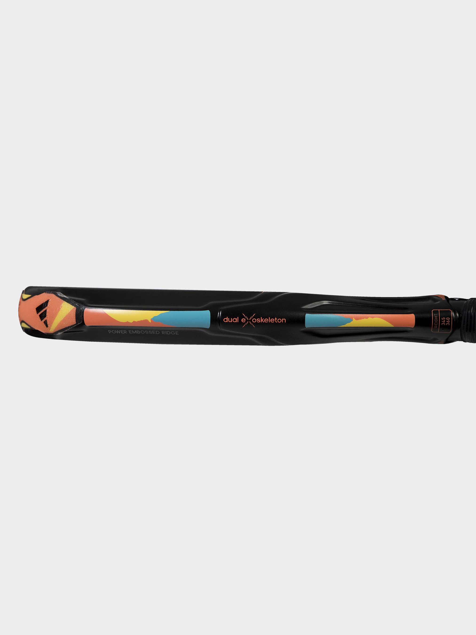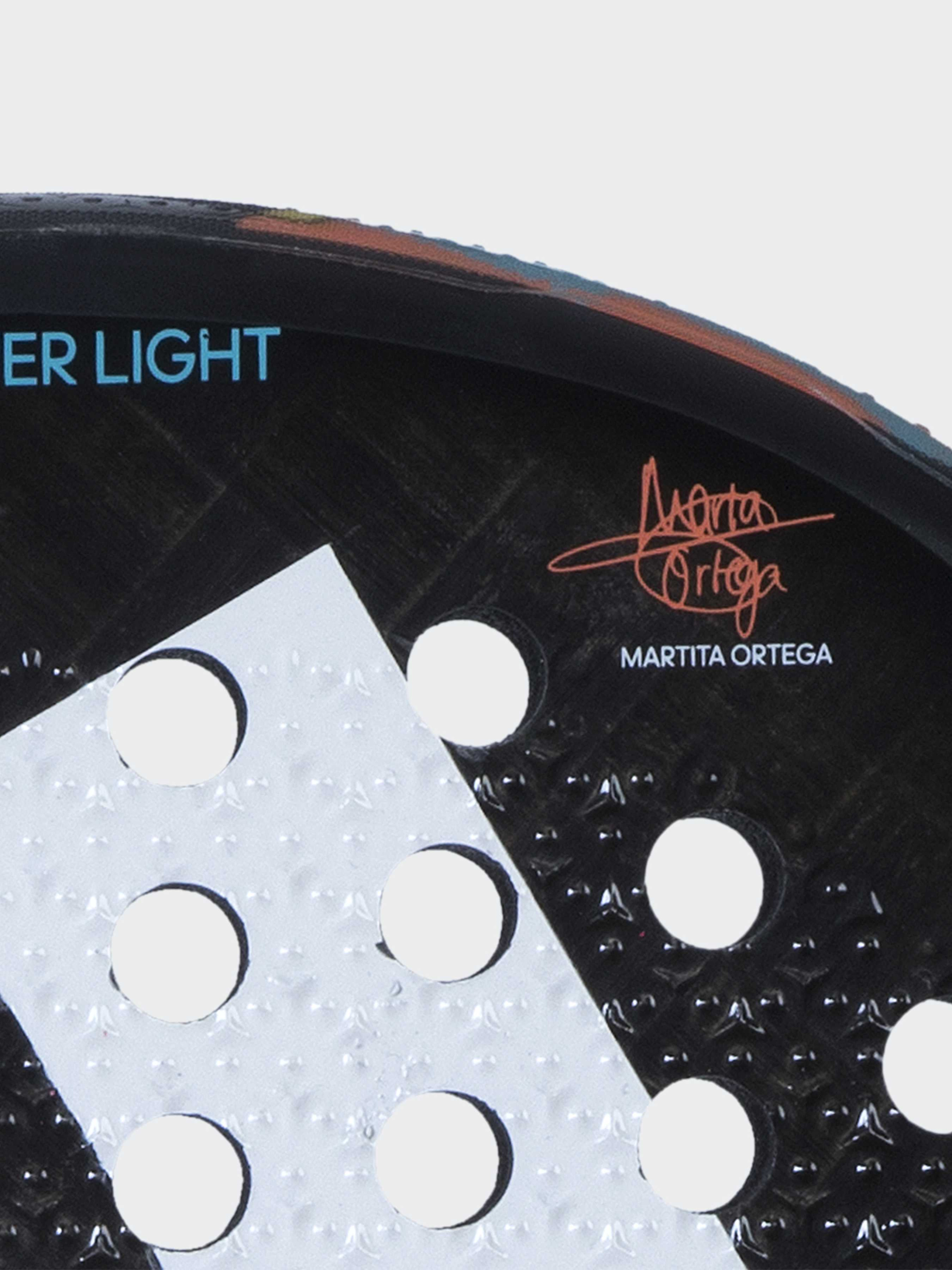 Характеристики Dual Exoskeleton з вуглецевого волокна для збільшення потужності. Інноваційні криві отвори для посилення ефектів і обертання м'яча Кругла форма для контролю під час кожного удару Рельєфна ребриста поверхня Power Embossed збільшує жорсткість ракетки Структурне посилення забезпечує жорсткість конструкції ракетки 345г - 360г Довжина 455 мм x товщина 38 мм Опис Ракетка для паделу adidas Adipower Light 3.2 - продовження ракетки, створеної для перемог. Вона оснащена поверхнею з вуглецю з алюмінієвим покриттям 24k, що надає їй додаткову міцність і довговічність. М'яка енергоефективна гума EVA з високою відновлюваністю та ефектом пам'яті дасть тобі додаткову перевагу в грі. Технологія Dual Exoskeleton покриває сердечник ракетки вуглецевими волокнами, забезпечуючи підвищену жорсткість і міць. Шорсткість технології Spin Blade забезпечує максимальну віддачу за будь-яких ударів. Технологія Structural Reinforcement зміцнює структуру ракетки вуглецевими вставками, що збільшує її опір крутним навантаженням, навіть за найагресивніших ударів. Центральна зона sweet spot забезпечить потужність і зручний контроль для точних і впевнених ударів.