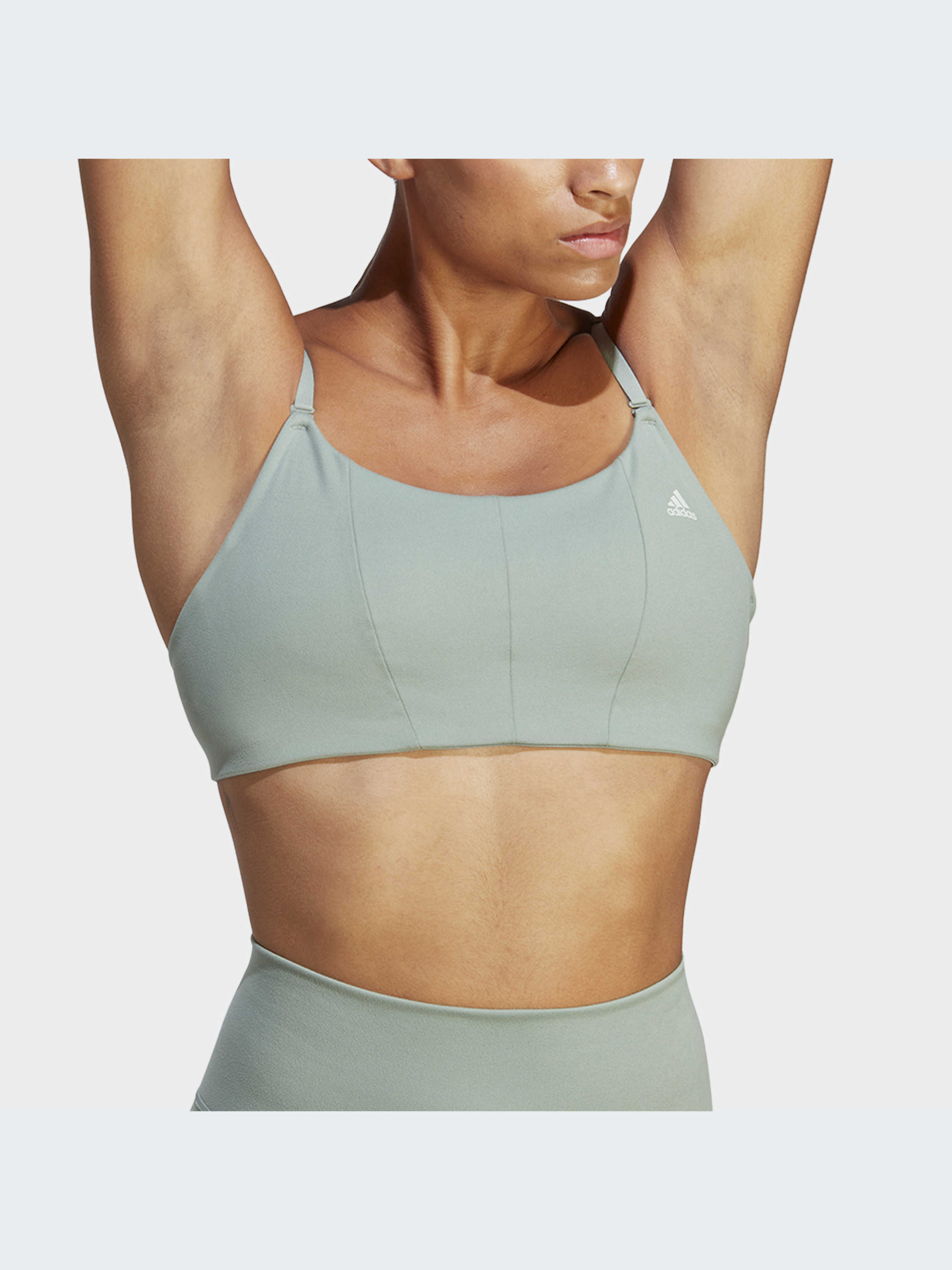 Характеристики Вологопоглинаюча тканина з технологією AEROREADY Інтерлок: 79% перероблений поліестер, 21% еластан Круглий виріз горловини Облягаючий крій Регульовані плечові ремені Тканина adisoft на дотик м'яка і гладка, як друга шкіра Легкий ступінь підтримки Передній стабілізатор Опис Відкинь зайве, коли ти на маті. Є тільки ти і твоє дихання - і цей спортивний бюстгальтер для йоги adidas, який допоможе тобі не втратити голову в цей момент. Суперм'який матеріал Adisoft прилягає до тіла і відчувається як друга шкіра. Регульовані бретелі дають змогу налаштувати посадку так, як потрібно, щоб відволікаючі чинники були якомога далі, поки ти занурюєшся в потік. Адже ти тут не просто так, і ніщо не має заважати цьому. Йде розмір в розмір. Ми радимо замовити цю модель в твоєму звичайному розмірі.