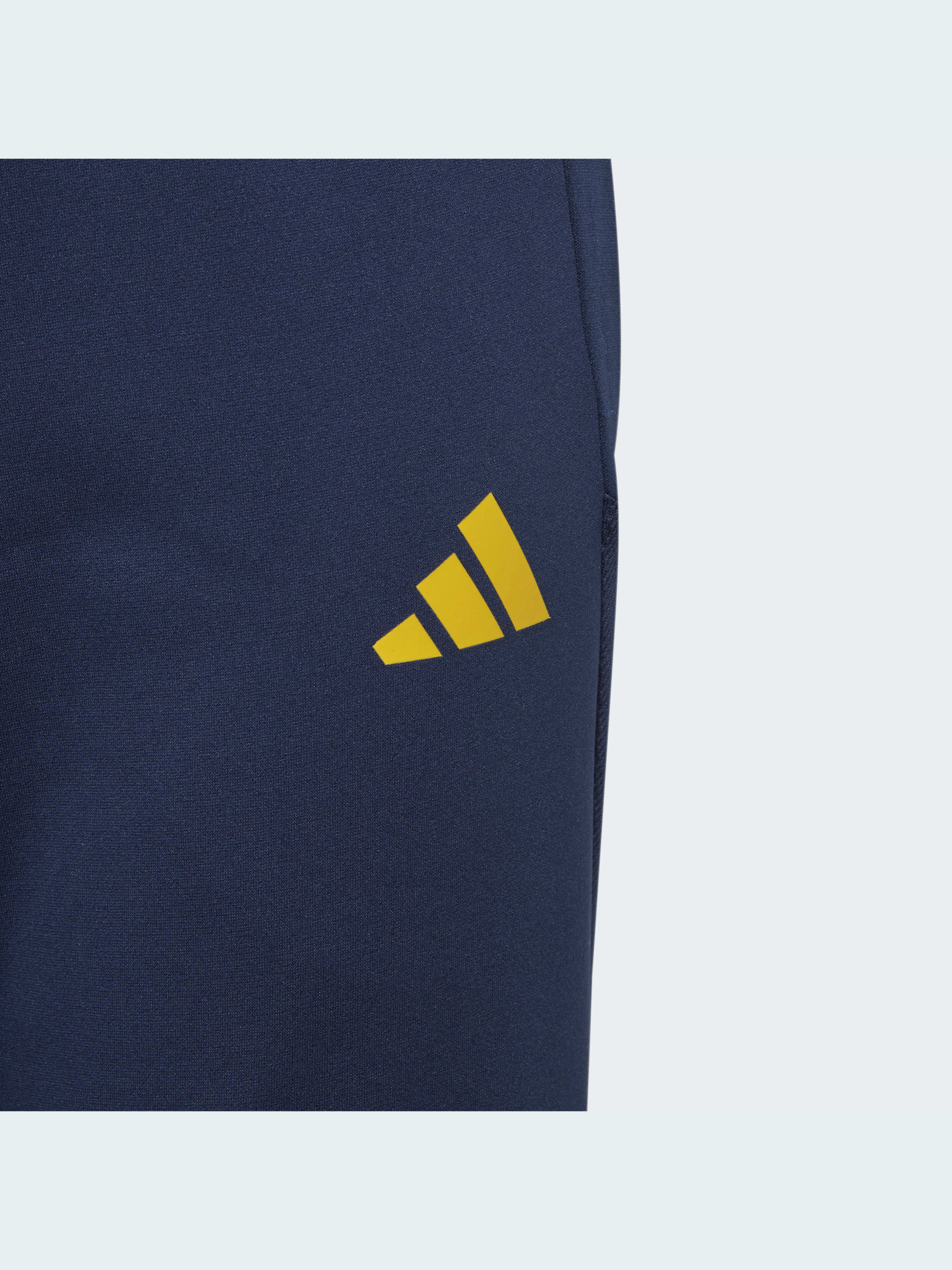 Коли настане холодна погода, одягни ці юнацькі футбольні штани adidas і покажи свої навички на тренуванні. Вони мають звужений крій, який облягає тіло та зберігає тепло, поки ти відпрацьовуєш удари, паси та дриблінг. Вологовідвідна тканина AEROREADY гарантує, що ти залишишся сухим на полі та поза ним. Герб Швеції показує твою любов до національної команди. Ця модель на 100% складається із перероблених матеріалів і представляє одне з наших рішень щодо скорочення пластикових відходів.
