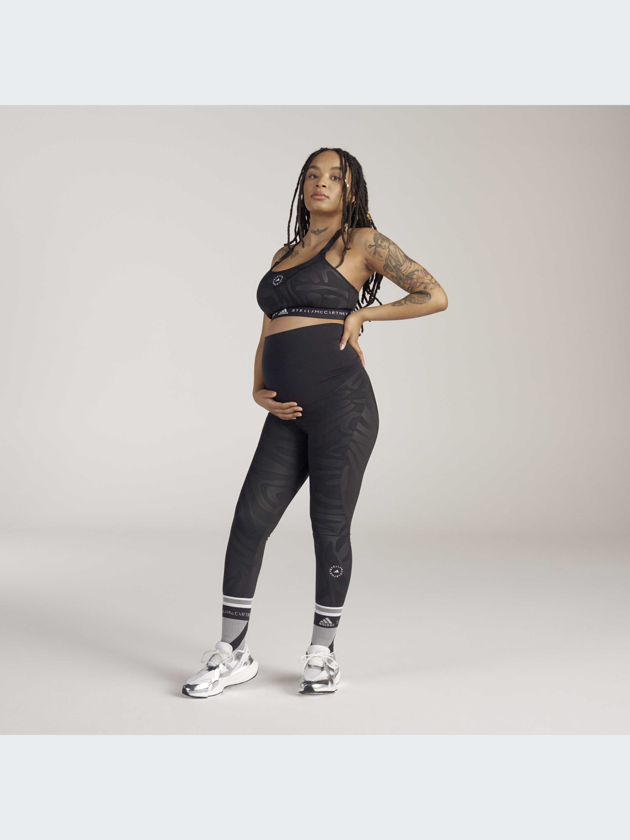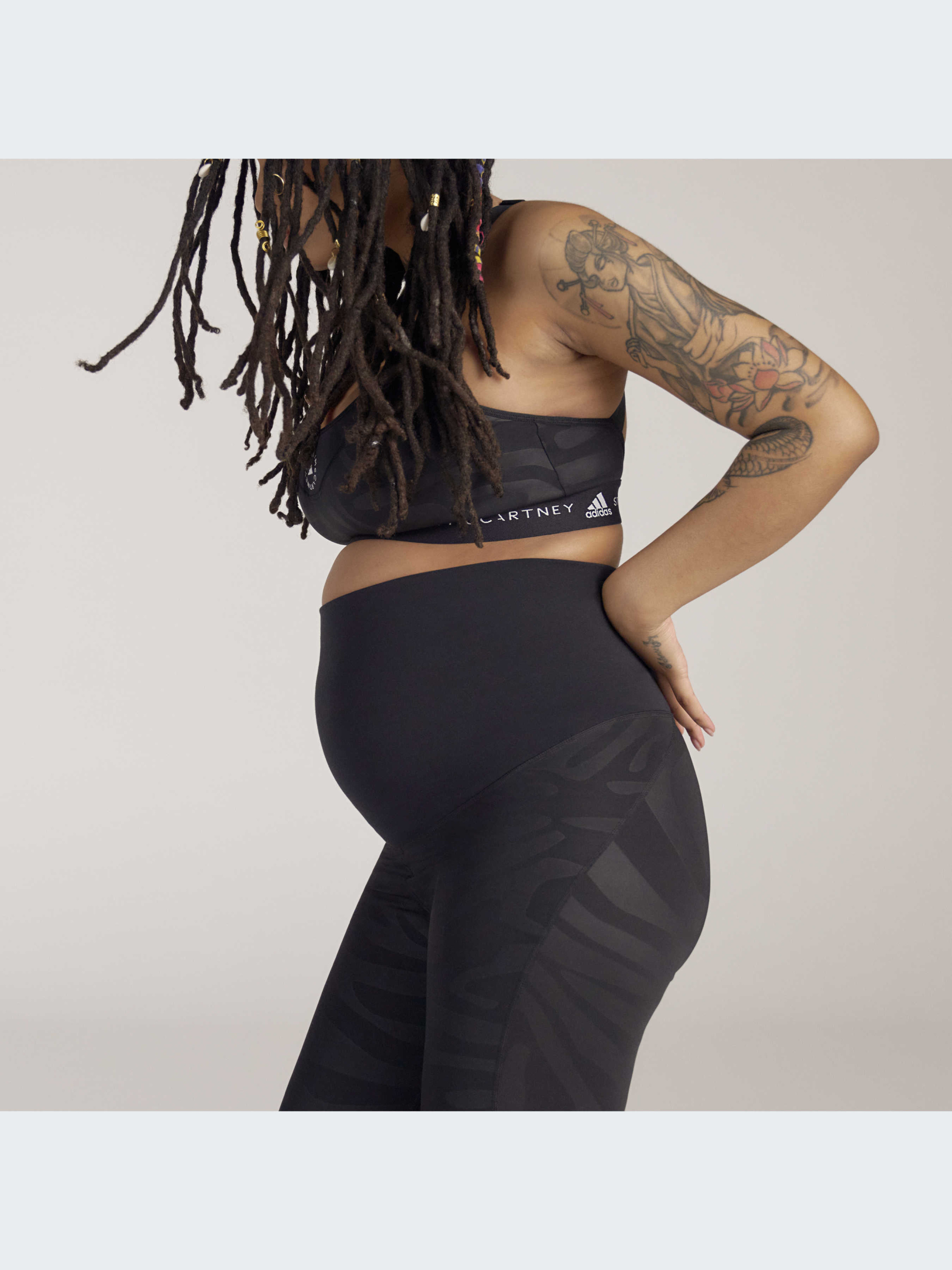 Нова стильна та екологічна колекція adidas by Stella McCartney створена для майбутніх мам. Кожна модель забезпечує комфорт та адаптується до змін тіла під час вагітності та після пологів. Ці легінси забезпечують підтримку під час занять йогою та під час більш динамічних тренувань. М'який еластичний матеріал обережно облягає і не перетягує животик. Ця модель виконана із волокна, яке на 50% складається з Parley Ocean Plastic – переробленого пластику, зібраного на пляжах та прибережних територіях до того, як він потрапить до океану. Загалом модель містить щонайменше 40% переробленого матеріалу.