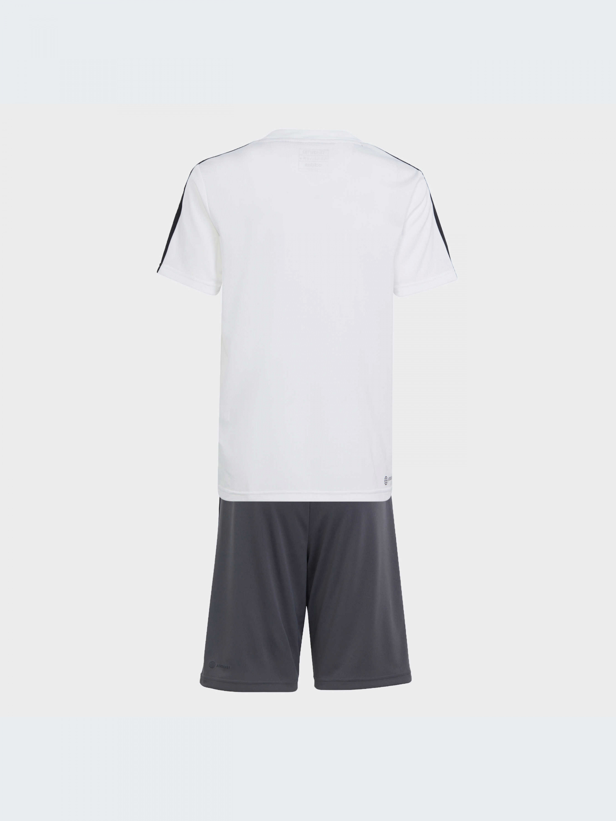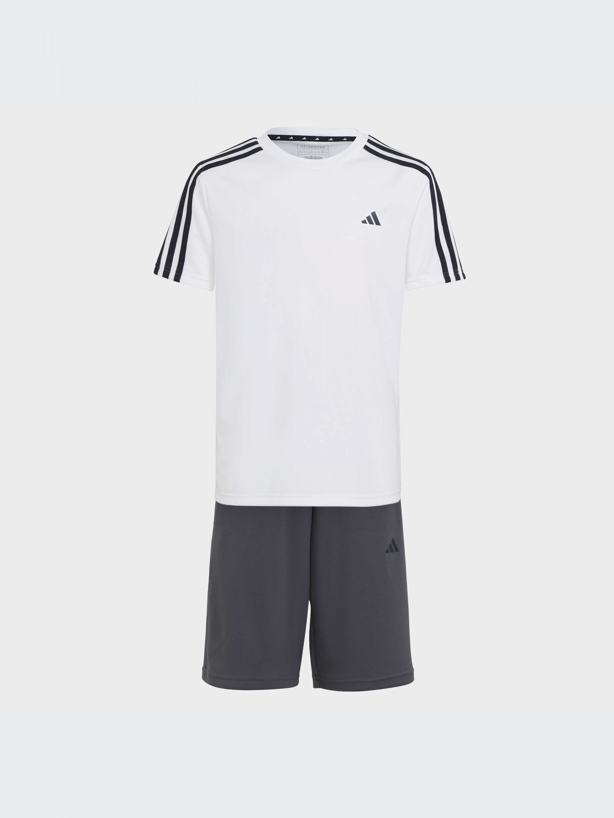 Почувайся комфортно, навіть під час найінтенсивнішого тренування. Цей тренувальний комплект adidas для підлітків складається з футболки та шортів із вологовідвідним покриттям AEROREADY, щоб ти залишався сухим у спортзалі та поза ним. Класичні три смужки і знакові логотипи adidas надають обом речам спортивного вигляду. Цей продукт містить не менше 70% перероблених матеріалів і є лише одним з наших рішень по боротьбі з пластиковими відходами.