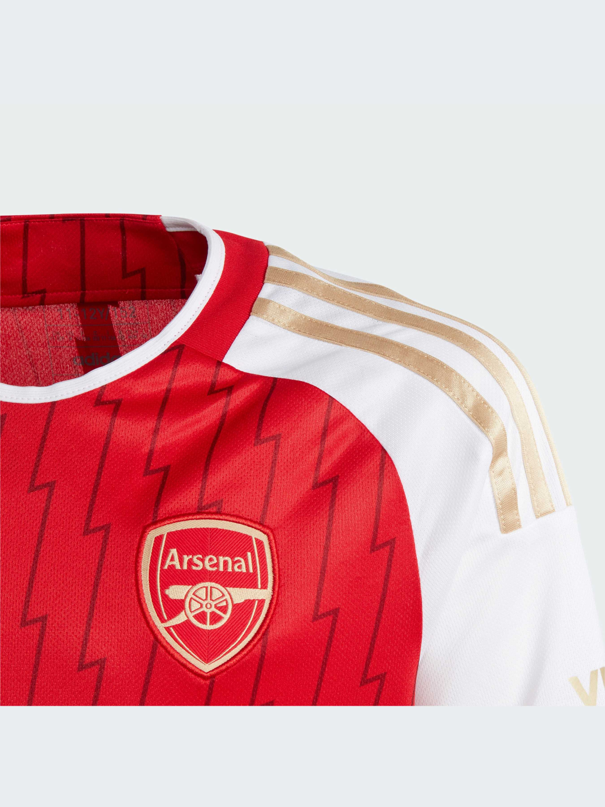 Кажуть, що блискавка ніколи не б'є двічі в те саме місце. І 20 років потому Арсенал залишається єдиним клубом, який завершив сезон у вищій лізі англійського футболу без поразок. Ця юніорська футболка adidas Арсенал святкує унікальний ювілей, прикрашена блискавками та золотими деталями. Створена для вболівальників, вона забезпечує комфорт завдяки вологовідвідній тканині AEROREADY. Привабливий зовнішній вигляд доповнює тканий значок. Виготовлена зі 100% перероблених матеріалів, ця футболка являє собою лише одне з наших зусиль, по боротьбі з пластиковими відходами.