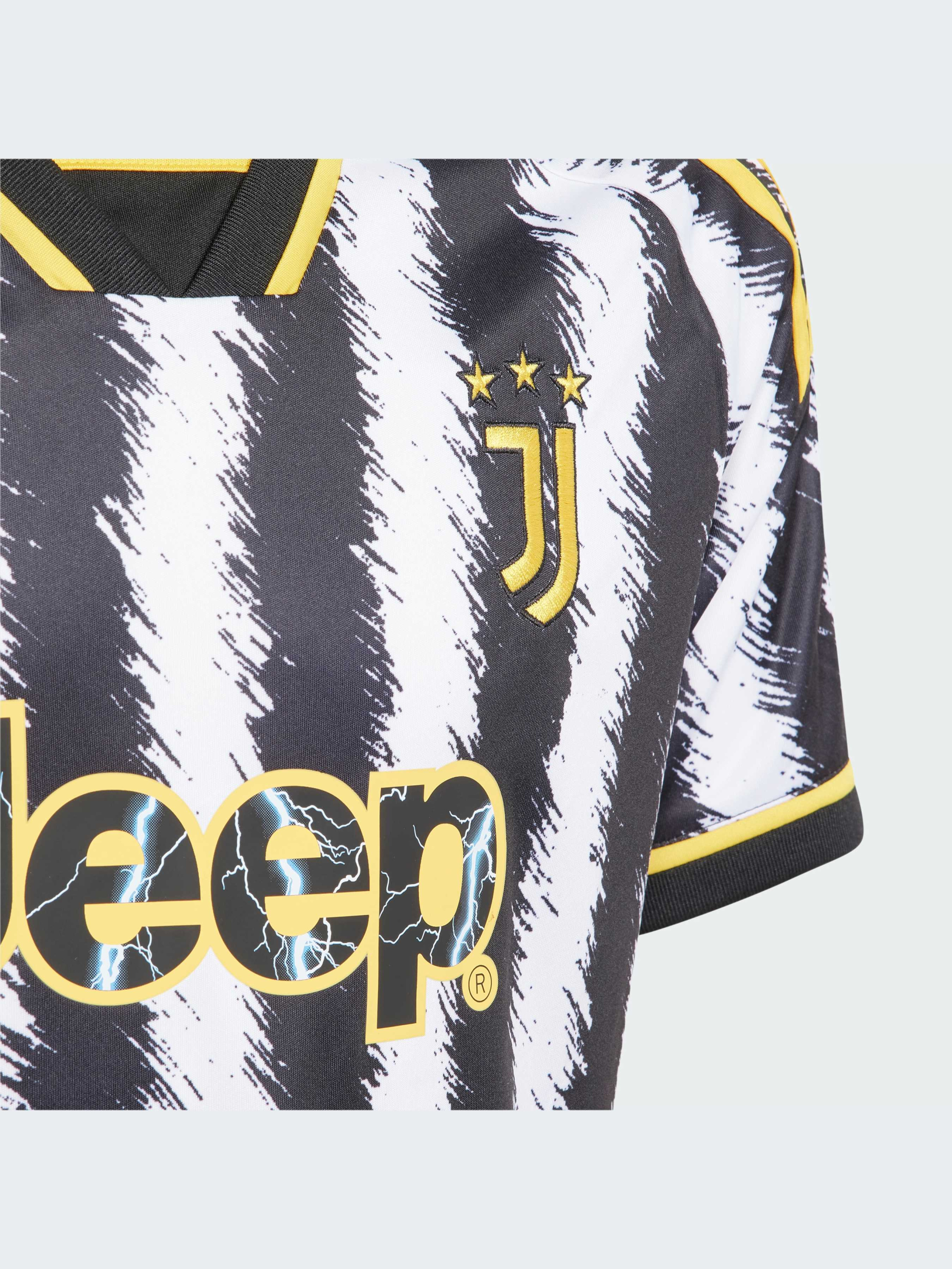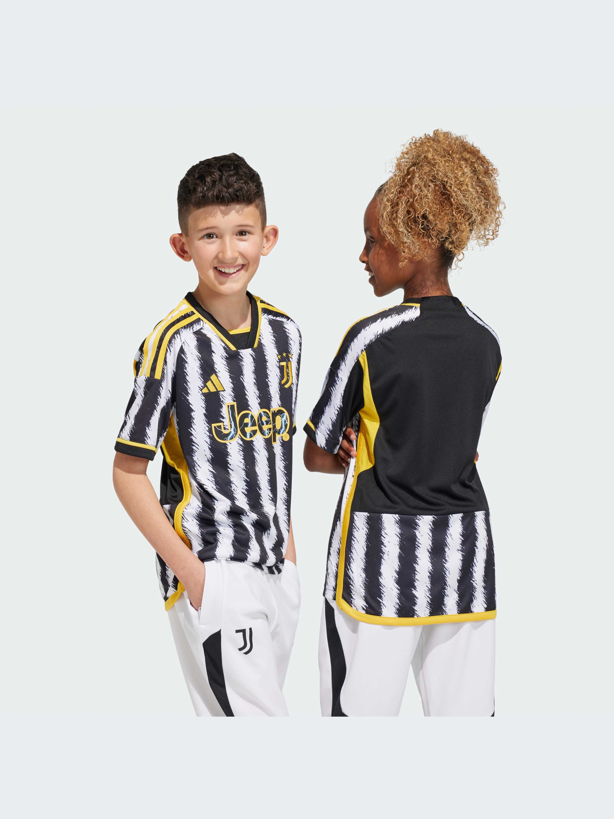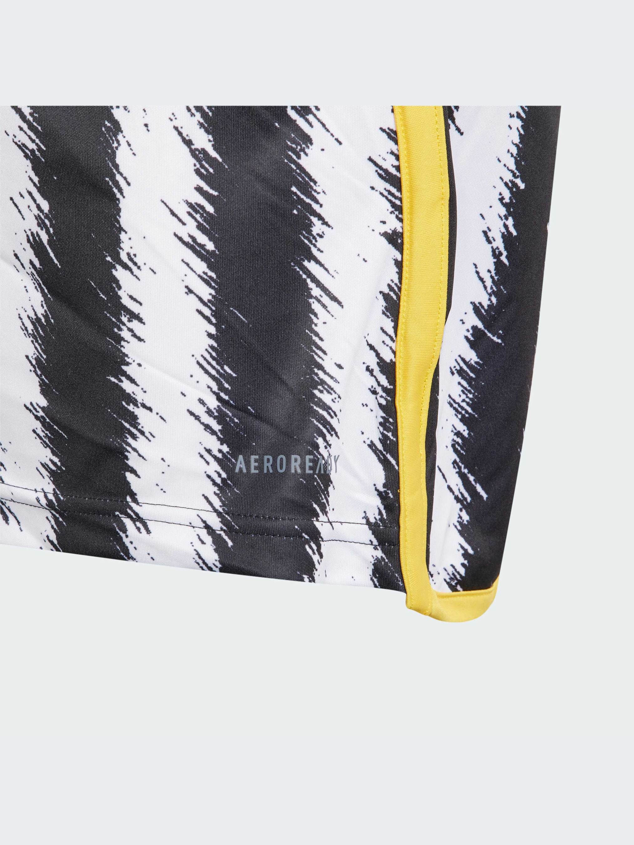 Коріння, що сягає у клубні традиції. Втілюючи в життя одне з найяскравіших прізвиськ Ювентуса, чорна основа і контрастні білі смужки на цій футбольній джерсі adidas для юніорів натхненні ворсом зебри. Створене для того, щоб вболівальникам було комфортно, воно містить у собі вологовідвідний матеріал AEROREADY і сітчасті деталі. Вставки жовтого кольору і ткана емблема клубу завершують образ. Модель на 100% складається із перероблених матеріалів і представляє одне з наших рішень зі скорочення пластикових відходів.