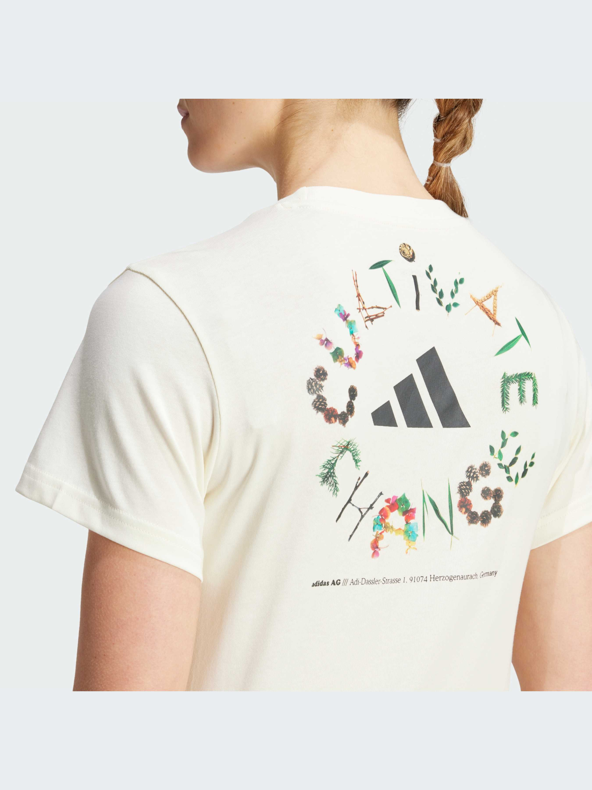 Характеристики AEROREADY Рифлений круглий виріз горловини Стандартний крій Тонкий трикотаж: 70% бавовна, 30% перероблений поліестер Постачається за системою балансу мас Better Cotton, тому цей продукт може не містити Better Cotton Опис У цій футболці з принтом, присвяченим Дню Землі, adidas допоможе тобі по-новому поглянути на твою пробіжку. З бунтарським закликом "культивувати зміни" ти зможеш спрямовувати свою внутрішню енергію на зміни з кожним ривком і спринтом на пагорбі. AEROREADY зберігає сухість, підвищуючи твою витривалість. Бавовна для цього виробу була отримана завдяки Better Cotton. Цю бавовну постачають за моделлю ланцюжка поставок, що називається балансом мас. Це означає, що бавовну Better Cotton неможливо фізично відстежити до кінцевого продукту.