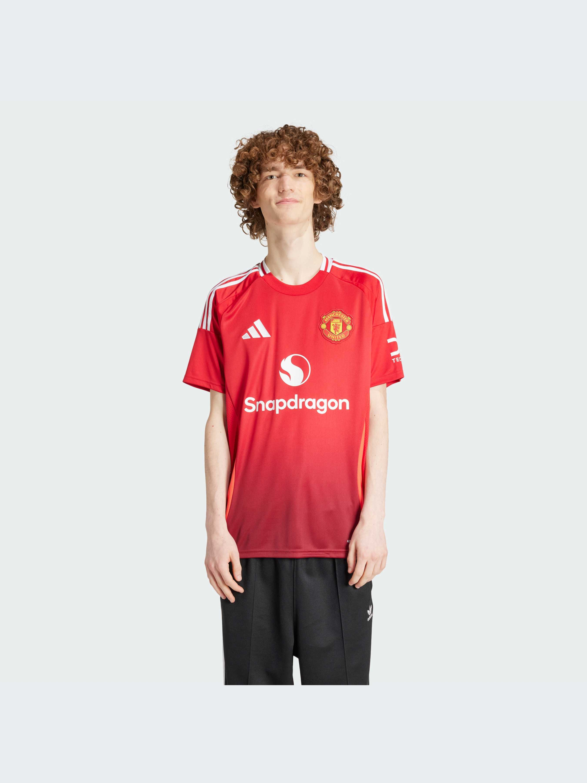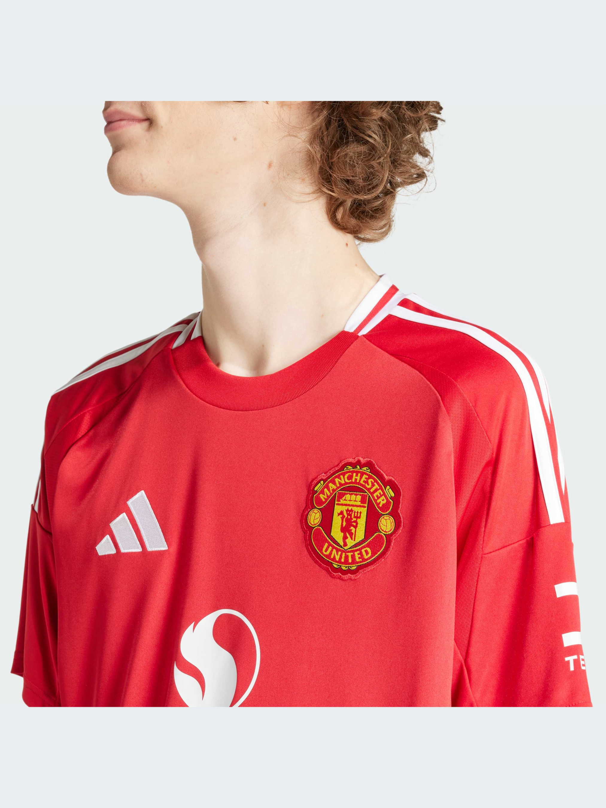 Манчестер Юнайтед на Олд Траффорд. Домашні вболівальники обожнюють їх, і навіть суперники не можуть їх проігнорувати. У сезоні 24/25 домашні футболки клубу стають ще більш помітними завдяки яскраво-червоним вставкам з боків і тонкому градієнтному дизайну спереду і ззаду. Створені для підтримки, ці футболки adidas містять технологію вологовідведення AEROREADY і вишитий значок клубу. Цей продукт виготовлено зі 100% перероблених матеріалів. Повторно використовуючи вже створені матеріали, ми допомагаємо скоротити кількість відходів і нашу залежність від обмежених ресурсів, а також зменшити негативний вплив продуктів, які ми виробляємо.