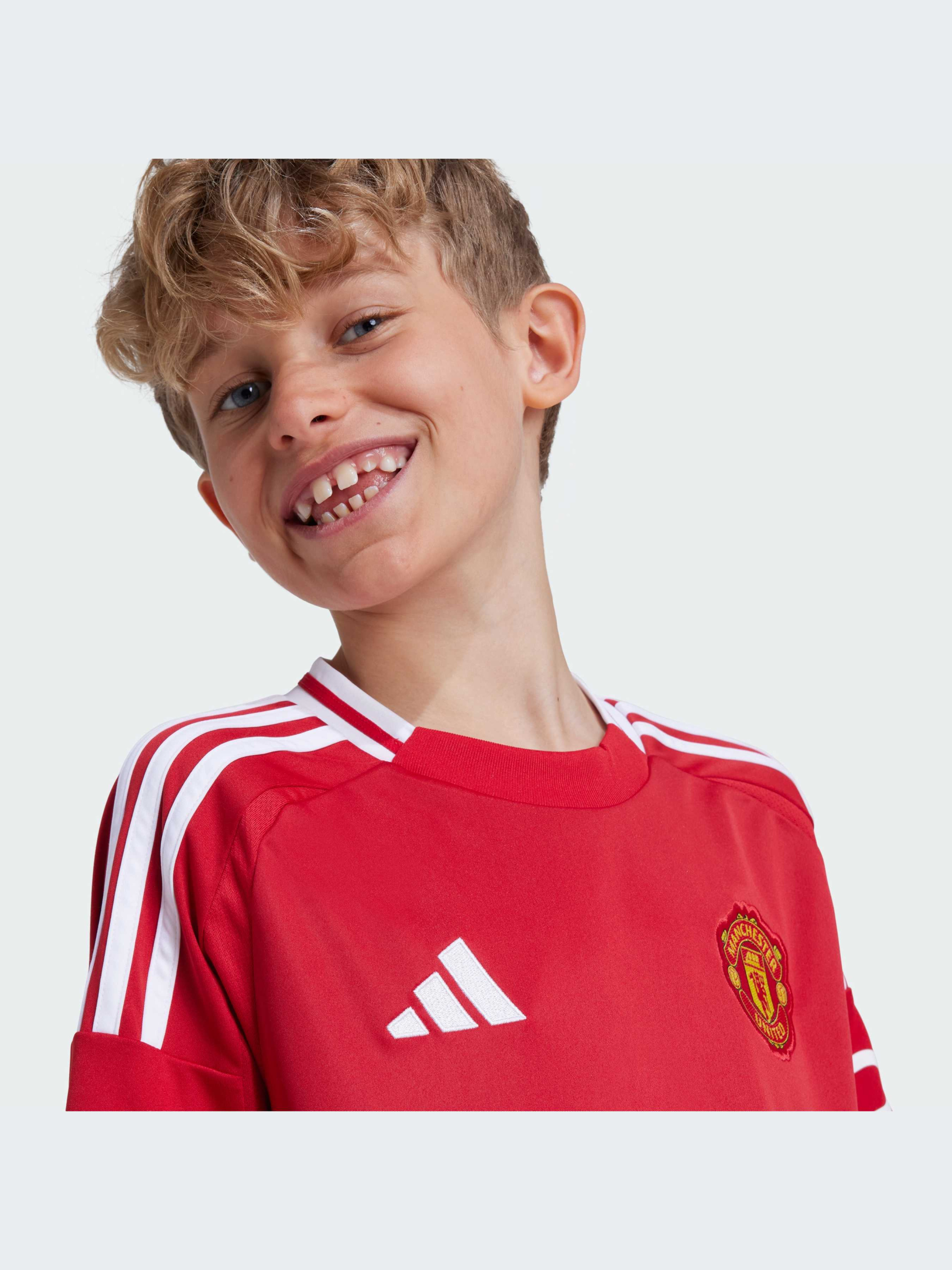 Манчестер Юнайтед на Олд Траффорд. Вболівальники обожнюють їх, і навіть суперники не можуть оминути їх увагою. У сезоні 24/25 нестаріючі домашні футболки клубу кричать ще голосніше завдяки яскраво-червоним вставкам з боків і тонкому градієнтному малюнку спереду і ззаду. Створена для вболівальників, ця футбольна джерсі adidas для підлітків має вологовідвідну технологію AEROREADY і вишитий знак. Цей продукт виготовлений зі 100% перероблених матеріалів. Повторно використовуючи вже створені матеріали, ми допомагаємо скоротити кількість відходів і нашу залежність від обмежених ресурсів, а також зменшити негативний вплив продуктів, які ми виробляємо.