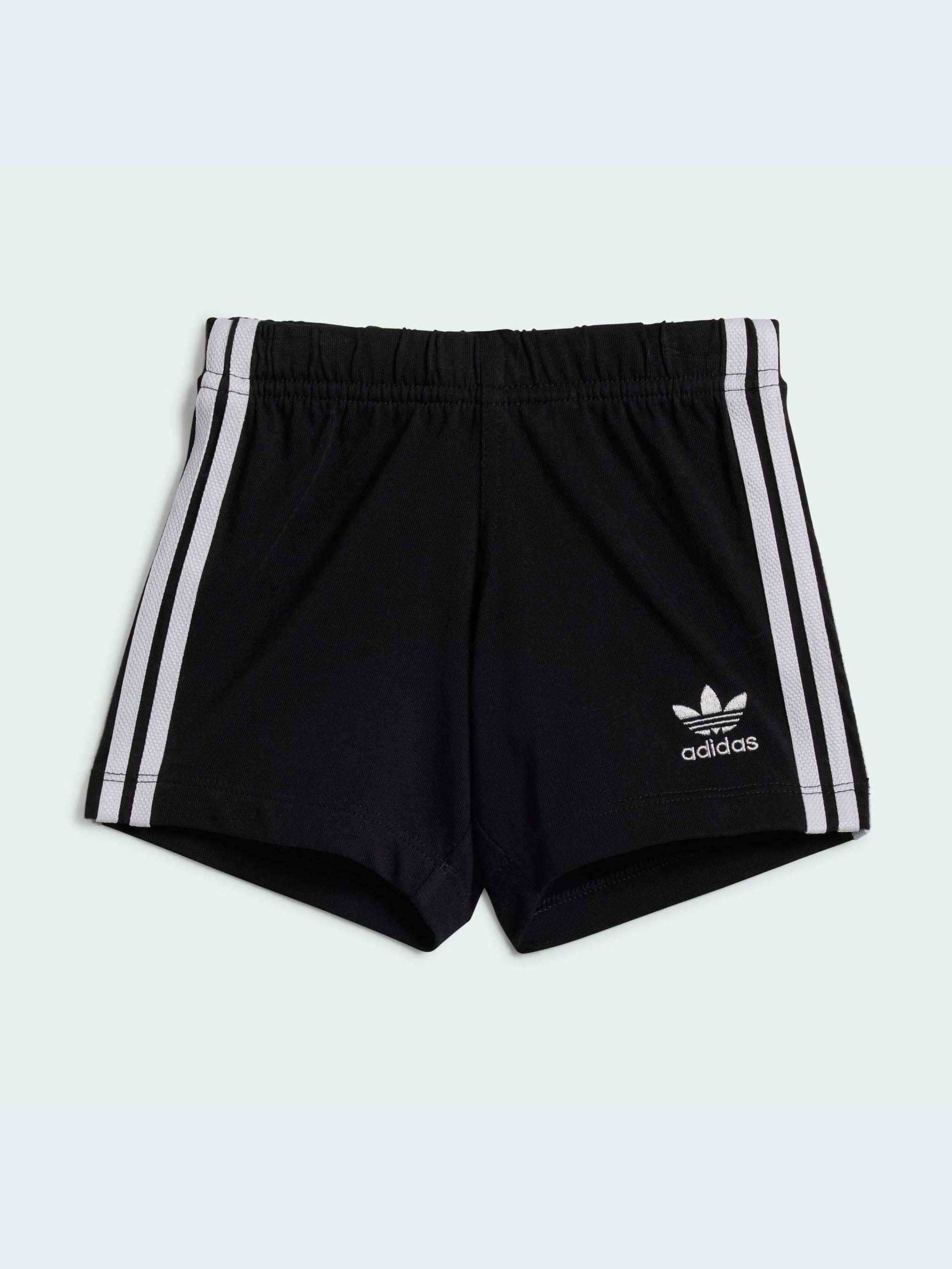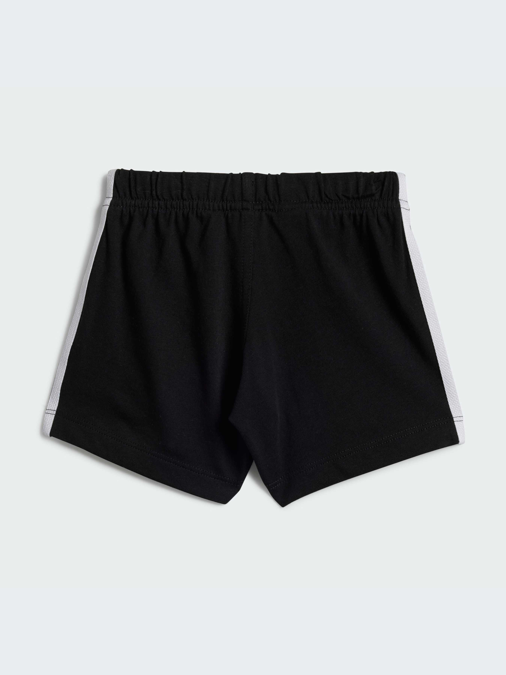 Комплект для гри, який хочеться повторювати. Твій малюк буде готовий до всього в цих шортах і футболці для малюків від adidas. Знаковий логотип із Трилисником і три смужки в поєднанні з рифленою горловиною створюють класичний спортивний образ. Еластична талія зі стягуючим шнурком, застібка на кнопках на плечі та матеріал джерсі підтримують комфорт. Бавовна для цього виробу була отримана завдяки Better Cotton. Бавовна Better Cotton постачається за моделлю ланцюжка поставок, що називається балансом мас. Це означає, що бавовну Better Cotton неможливо фізично відстежити до кінцевого продукту.