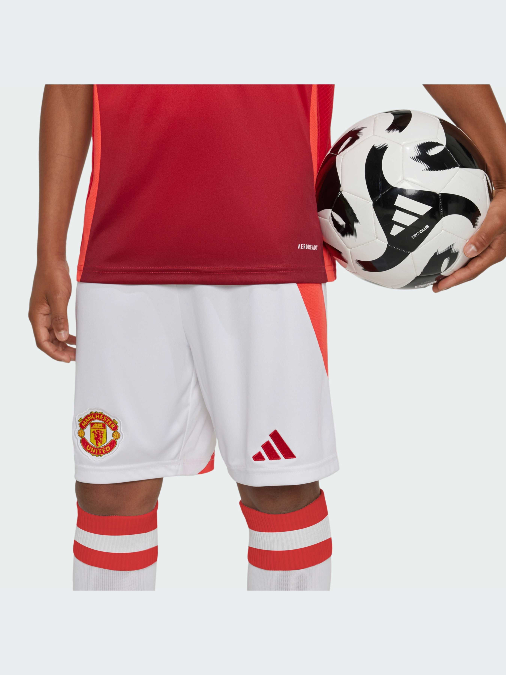Покажи свою відданість "Олд Траффорд". Шорти adidas Manchester United для юніорів, виконані в класичних білих тонах, повторюють деталі домашньої джерсі. Створені для комфорту вболівальників, вони оснащені м'якою тканиною інтерлок і вологовідвідним матеріалом AEROREADY. Вишита емблема команди доповнює футбольний образ, який складно ігнорувати. Цей продукт виготовлений зі 100% перероблених матеріалів. Повторно використовуючи вже створені матеріали, ми допомагаємо скоротити кількість відходів і нашу залежність від обмежених ресурсів, а також зменшити негативний вплив продуктів, які ми виробляємо.