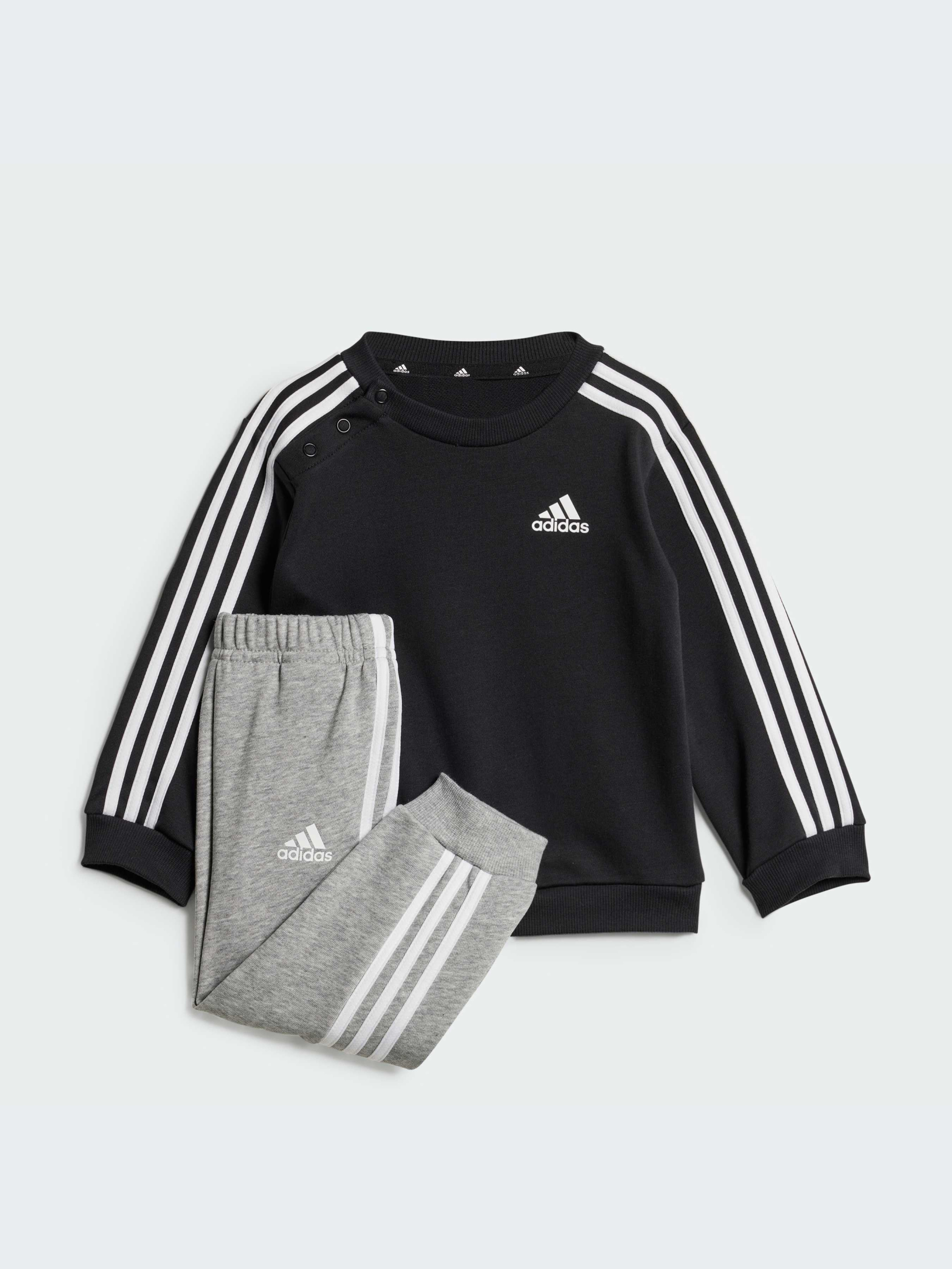Коли маленькі діти не бігають, не ковзають і не тупають по калюжах, вони дрімають. Цей комплект adidas забезпечує їм комфорт під час усього цього. Виготовлений із м'якої бавовняної суміші, він дає змогу малюкам бути настільки активними, наскільки вони хочуть. Світшот, що застібається на кнопки на плечі, призначений для легкого надягання і зняття. Джоггери регулюються на талії для надійної посадки під час щоденних пригод. Щонайменше 70% цього продукту складається з перероблених і відновлюваних матеріалів.