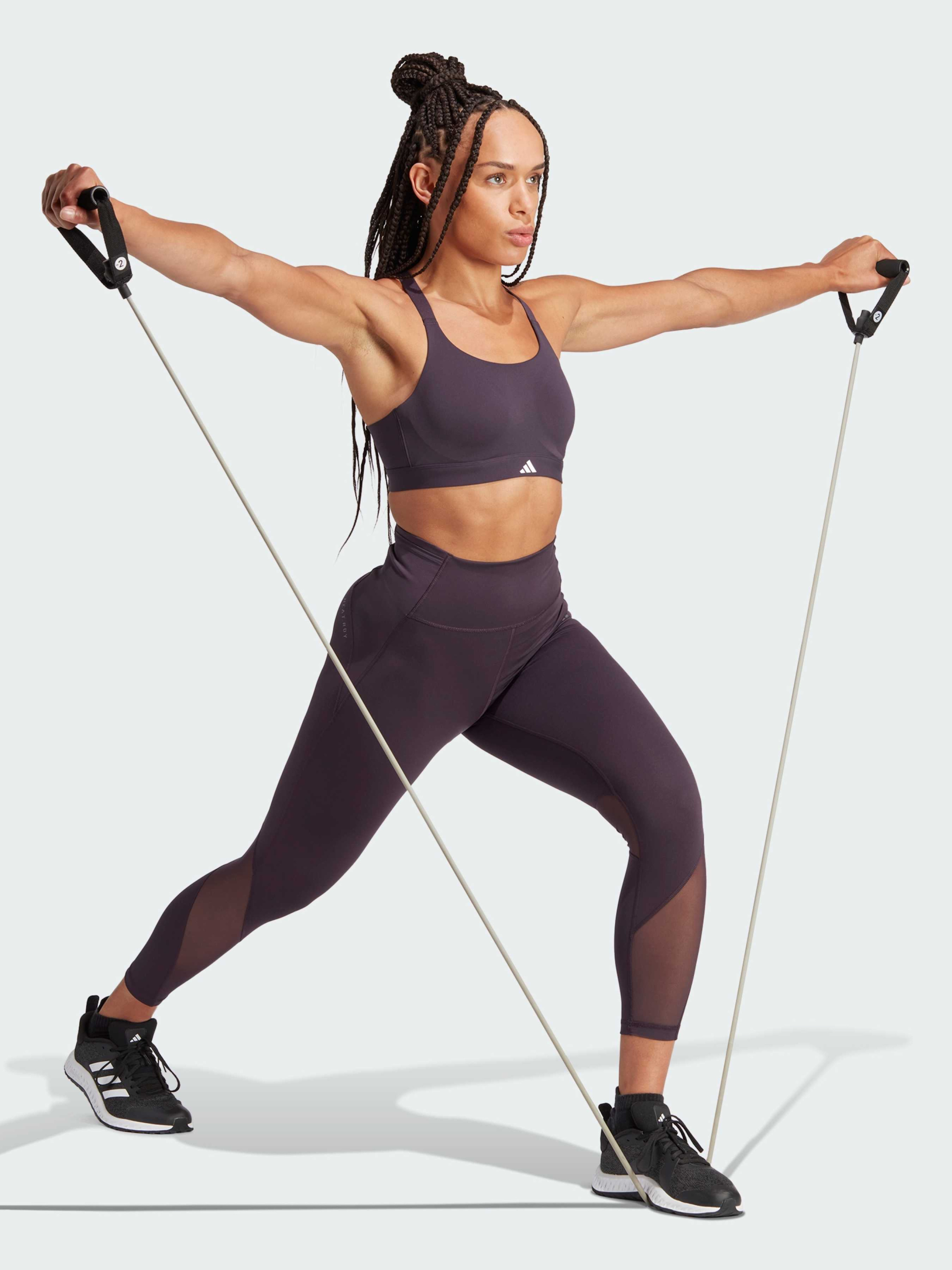 Характеристики 70% перероблений нейлон, 30% еластан HEAT.RDY Горловина з вирізом Застібка на гачках і підтримка із заниженою талією М'яка тканина Adiflex Облягаючий крій Незнімні, вбудовані чашечки Бретелі можна носити прямо або з Х-образно Сітчасті вставки в зонах підвищеного потовиділення Опис Цей спортивний бра з високим ступенем підтримки від adidas створений для занять HIIT, кікбоксингом і командними видами спорту. Сітчасті вставки в зонах підвищеного потовиділення оптимізують циркуляцію повітря, забезпечуючи прохолоду і сухість. Регульована застібка на спині та бретелі забезпечують індивідуальну посадку, а незнімні вкладиші надають форму та підтримують. Під час виготовлення цього виробу використано щонайменше 70% перероблених матеріалів. Повторне використання матеріалів, які вже були створені, допомагає нам зменшити кількість відходів і залежність від обмежених ресурсів, а також скоротити вплив продукції, яку ми виробляємо.