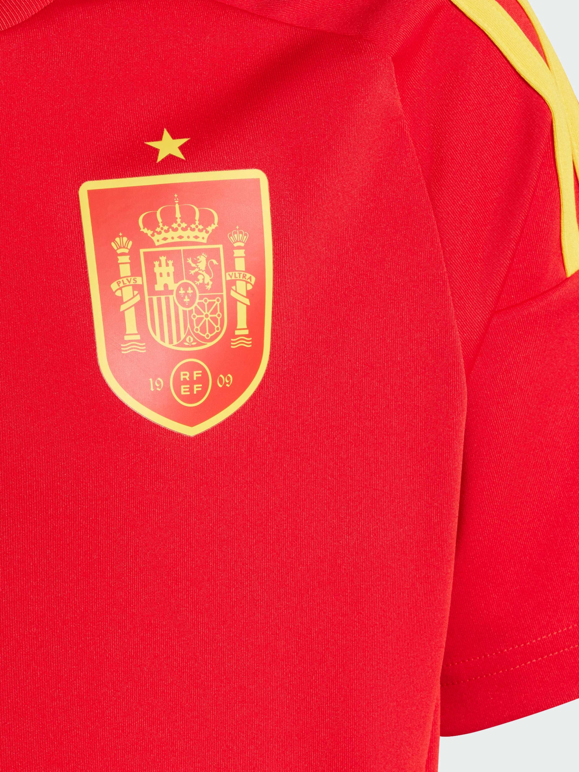 Характеристики AEROREADY Інтерлок: 100% перероблений поліестер Рифлений круглий виріз горловини Стандартний крій Емблема збірної Іспанії (термодрук) Опис Підтримай свою команду в найважливіших матчах. Ця підліткова футболка для вболівальників adidas Іспанія ідеально підходить для гри на турнірі та створена на основі ігрової футболки з гвоздиками. Вологовідвідний матеріал AEROREADY і м'який інтерлок забезпечують комфортну підтримку. А термонанесена емблема демонструє твою футбольну пристрасть на загальний огляд. Цей продукт виготовлений на 100% з перероблених матеріалів. Повторне використання вже створених матеріалів допомагає нам скоротити кількість відходів і залежність від обмежених ресурсів, а також зменшити вплив продукції, яку ми виробляємо, на навколишнє середовище.