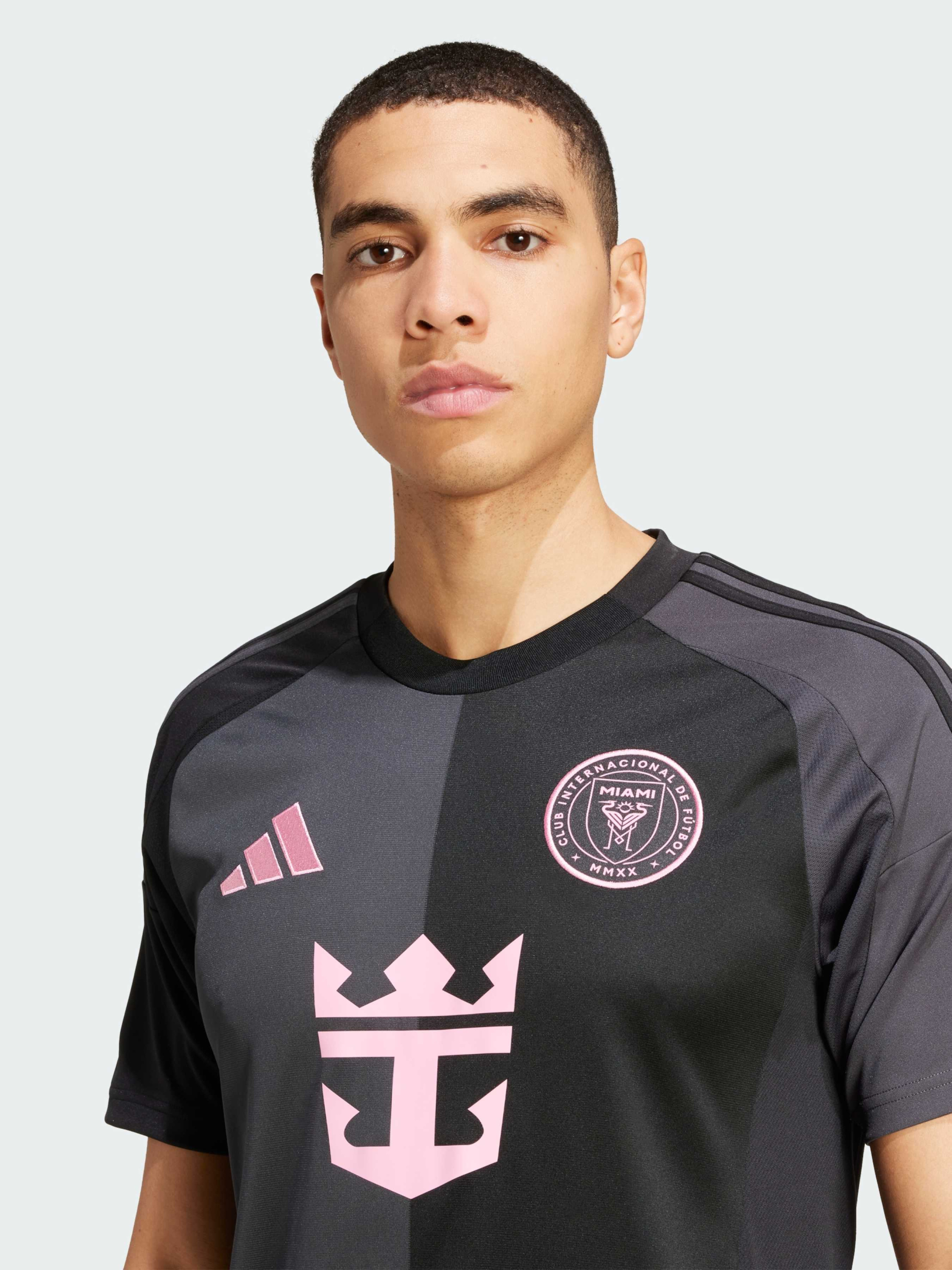 Характеристики 100% перероблений поліестер AEROREADY Бічні сітчасті вставки Круглий виріз горловини Облягаючий крій Вишитий герб Inter Miami CF Опис Привнеси стиль Маямі на трибуни з виїзною футболкою для підлітків Inter Miami CF від adidas. Яскраві рожеві акценти ефектно виділяються на чорному дизайні, надаючи футболці елегантного вигляду. Вологовідвідна технологія AEROREADY і м'яка тканина забезпечують максимальний комфорт для вболівальників. Логотип клубу та вишитий герб підкреслюють твою відданість висококласному футболу.