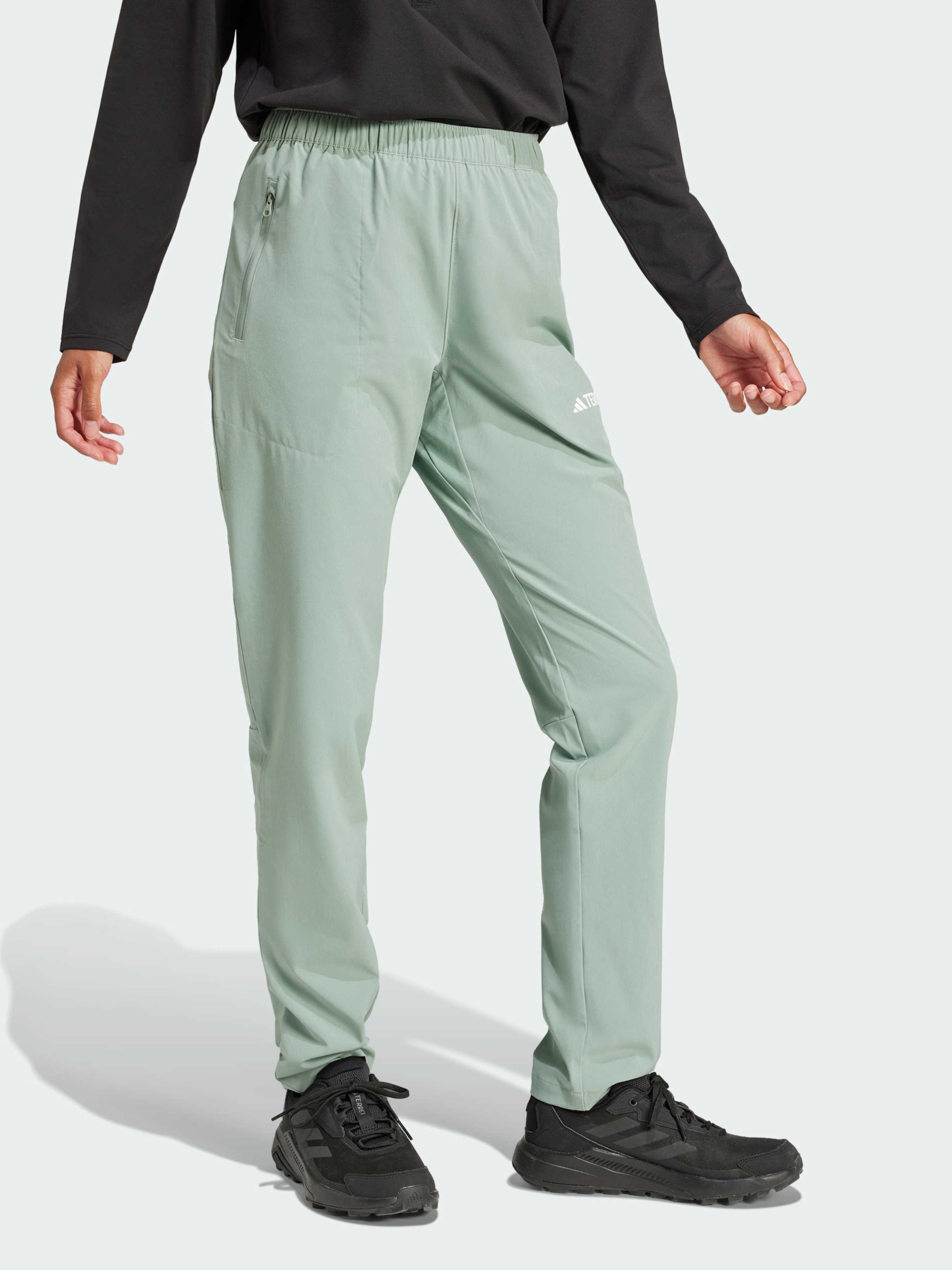 Характеристики 87% перероблений поліестер, 13% еластан Бічні кишені на блискавці Краї зі шнурком, що затягується Облягаючий крій Еластичний пояс на зав'язках-шнурках Опис Від лісових стежок до альпійських вершин, ці штани для хайкінгу adidas призначені для активних пригод. Вузький крій і регульовані манжети забезпечують зручність і стиль під час руху різноманітним рельєфом. Бічні кишені на блискавці додають практичності для повсякденного використання. Під час виготовлення цього виробу використано щонайменше 70% перероблених матеріалів. Повторне використання матеріалів, які вже були створені, допомагає нам зменшити кількість відходів і залежність від обмежених ресурсів, а також скоротити вплив продукції, яку ми виробляємо.