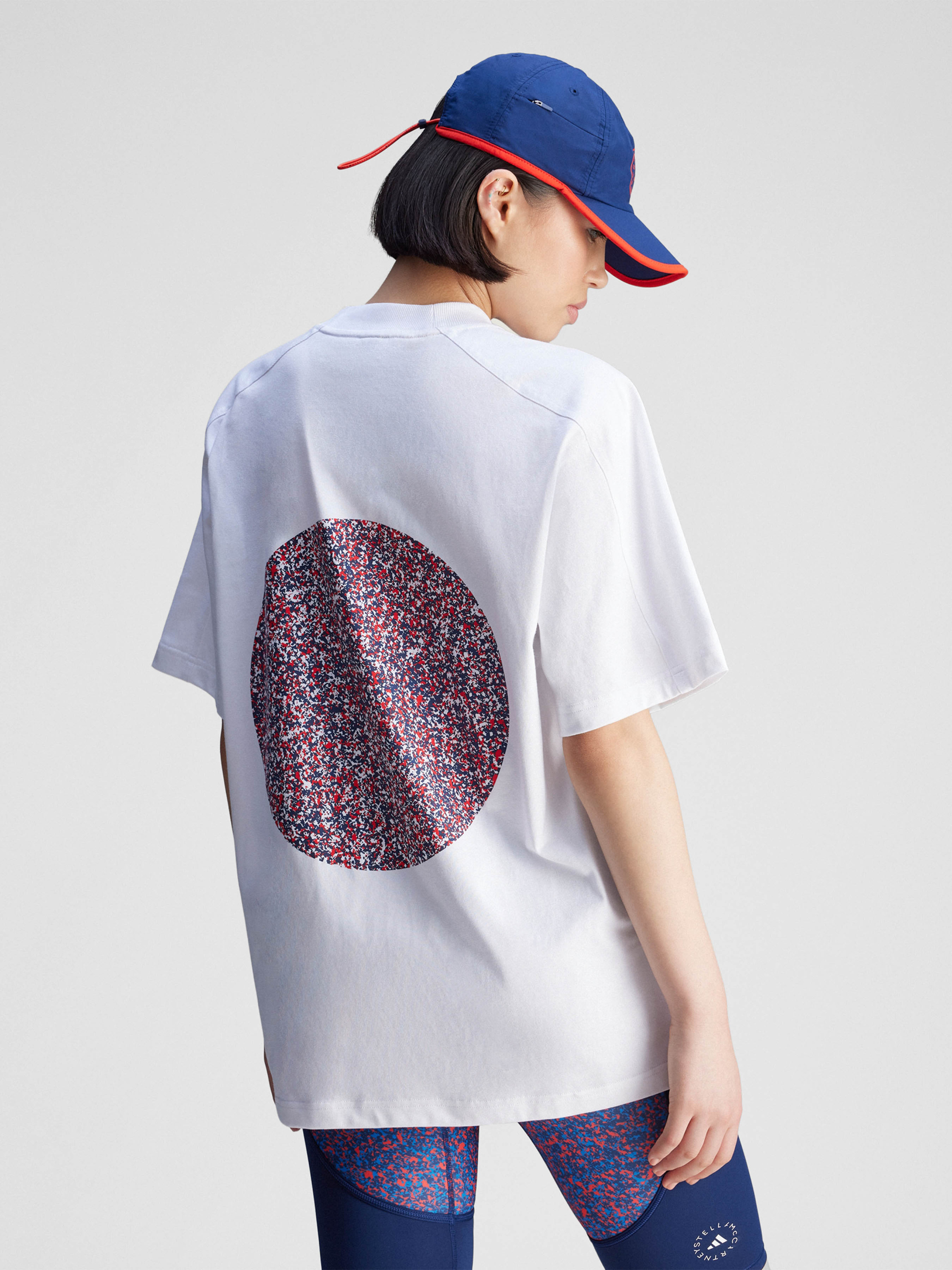 Характеристики 100% органічна бавовна Круглий виріз горловини Логотип adidas by Stella McCartney Вільний крій Опис Ця повсякденна футболка від adidas by Stella McCartney стане чудовим вибором на будь-який випадок завдяки своєму крою оверсайз. Вона прикрашена яскравими логотипами: спереду - adidas by Stella McCartney, а на спині - барвистий графічний елемент, який гармонійно поєднується зі знаком Badge of Sport спереду. Виготовлена з використанням щонайменше 50% органічної бавовни. Більш екологічний вибір для тих, хто її вирощує, і для планети.
