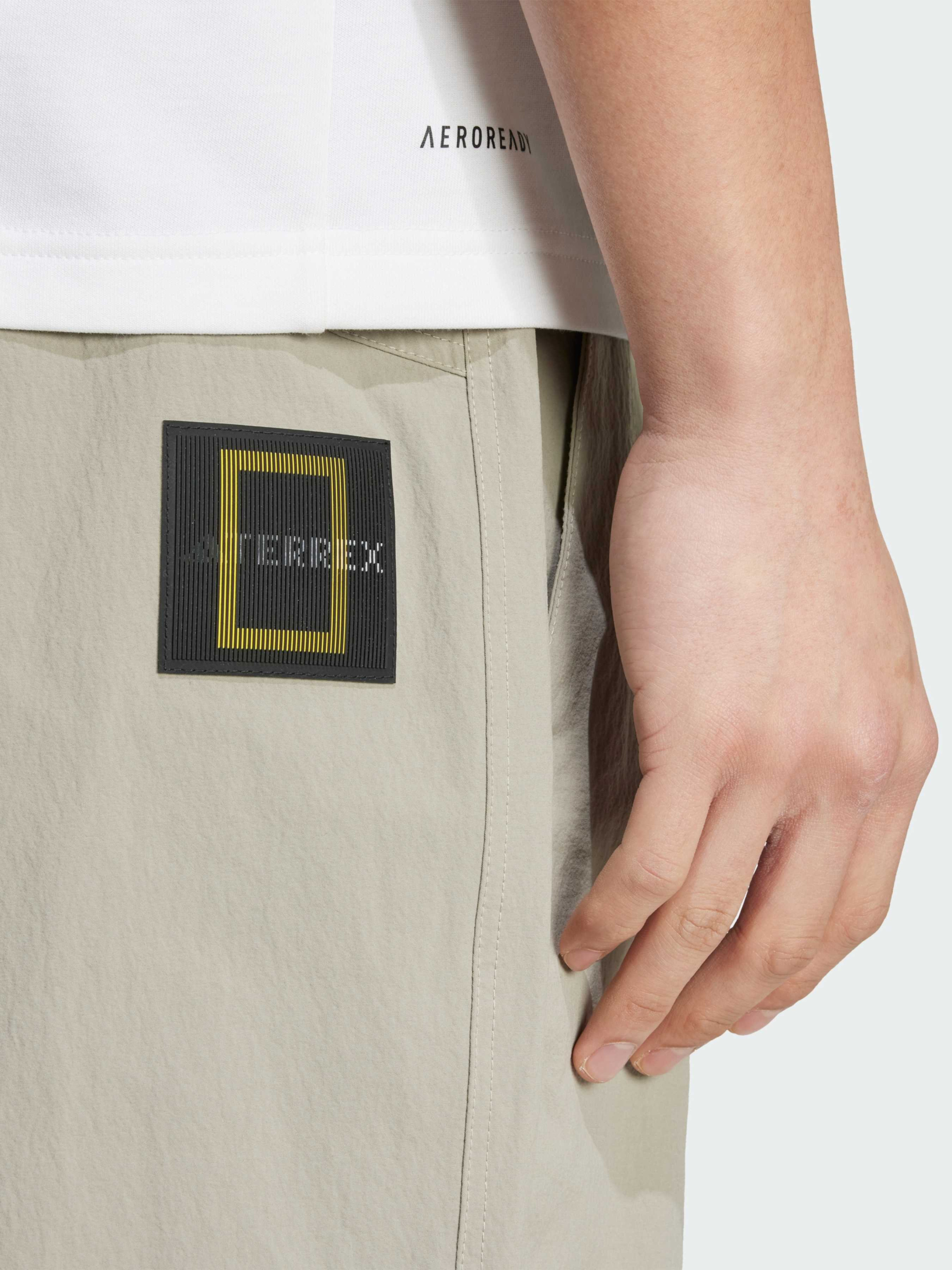 Характеристики 90% перероблений поліамід, 10% еластан WIND.RDY Бічні кишені Кишені на штанинах на блискавці Вільний крій Еластичний пояс Задні кишені Опис Готовий до нових пригод? Ці шорти для хайкінгу adidas National Geographic створені для активних досліджень. Легкий, міцний матеріал з невеликою еластичністю та технологією WIND.RDY захистить від холоду та вітру. Безліч кишень зберігають необхідні речі для походів, а вільний крій забезпечує комфорт і свободу рухів.