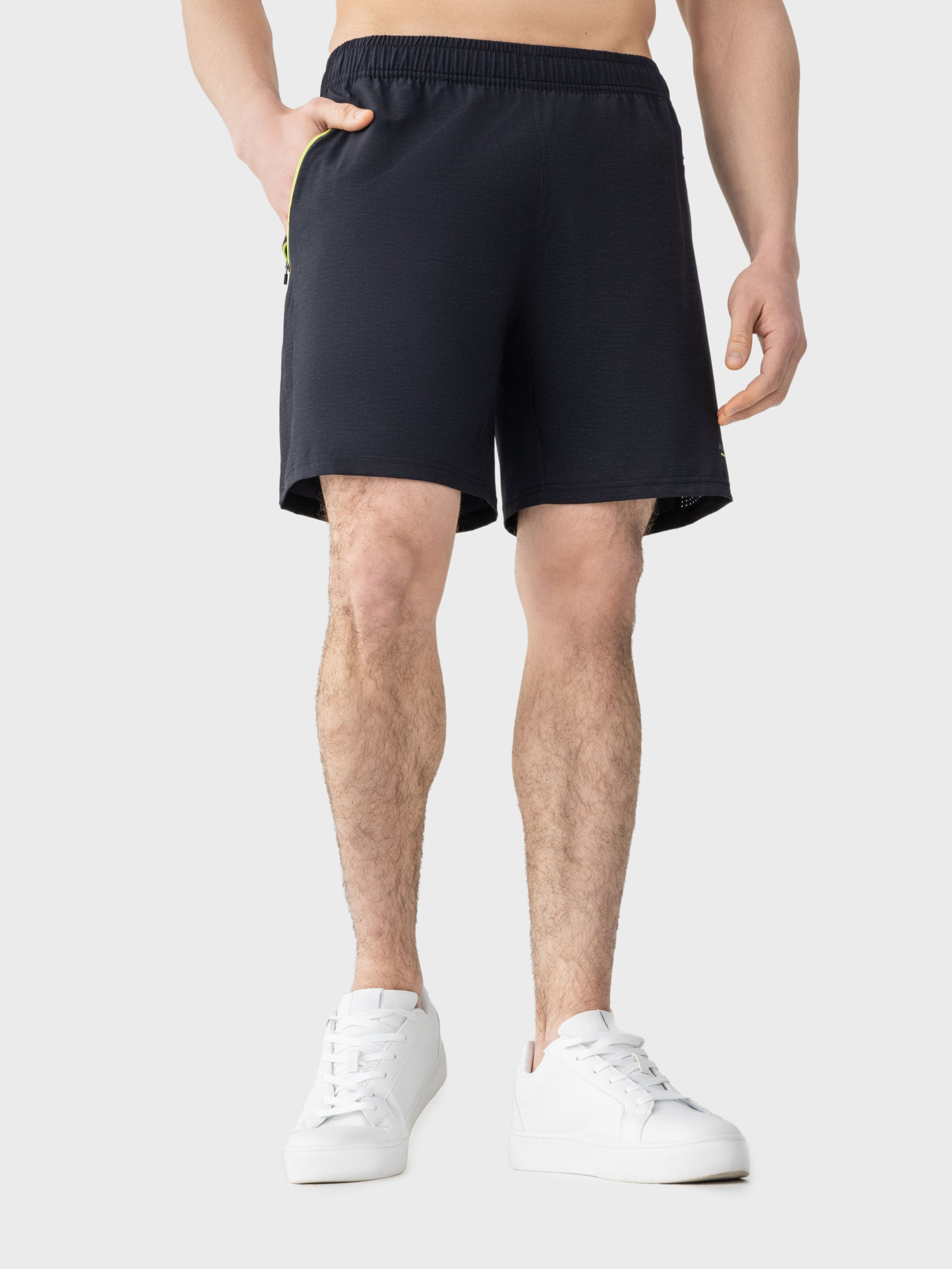 Модель спортивних чоловічих шорт виконана з використанням новітніх технологій. Технологія "4-Way Stretch", забезпечує повний спектр рухів з комфортом. "Antibacterial effect" – властивість тканини, яка запобігає виникненню неприємного запаху навіть під час інтенсивних тренувань. Технологія "Quick Dry" швидко випаровує вологу і дозволяє тілу "дихати". Завдяки еластичності шорти підійдуть для занять різними активними навантаженнями, тому що не сковують рухів. Модель фіксується по фігурі еластичним поясом, а об'єм регулюється внутрішніми шнурками-зав'язками. Бічні кишені дозволяють зберігати важливі дрібниці. Підкорюйте вершини в спорті та в житті разом з AVECS! Особливості: -Технологія "4-Way Stretch" -Технологія "Quick Dry" -Властивість тканини "Antibacterial effect" -Лазерна перфорація тканини -Внутрішні шорти-сітка -Еластичний пояс, що регулюється шнурками-зав'язками -Дві кишені захищені застібками-блискавками -Якісна фурнітура Склад: -Поліестер 90% -Еластан 10%