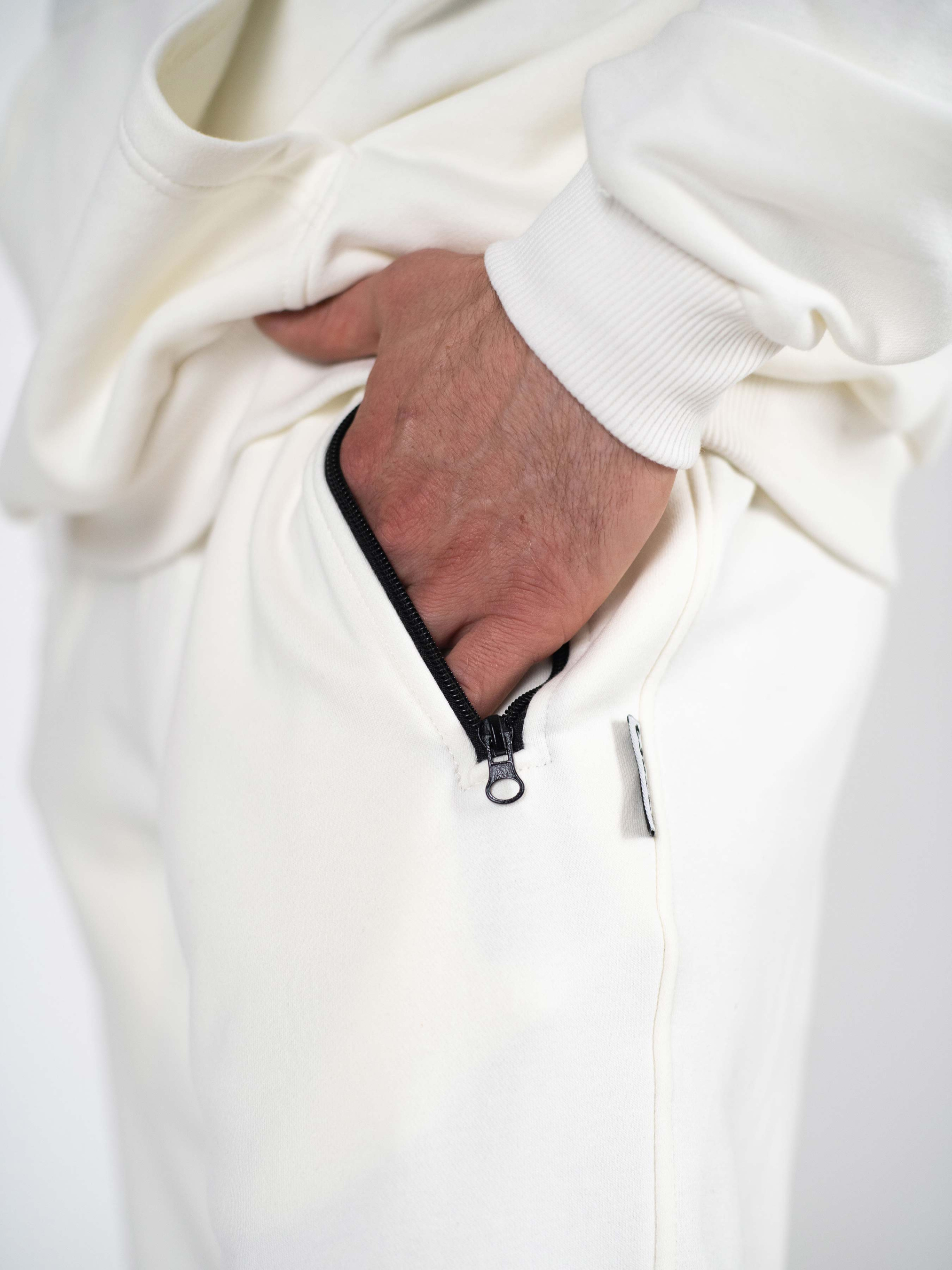 Штани спортивні чоловічі - крута та популярна оверсайз модель без принту з класним дизайном, яка підходить для будь-якого стилю та фігури. Штани спортивні оверсайз Custom Wear білі - виділять вас серед натовпу. Чоловічі спортивні штани мають класичний дизайн, але від того виглядають не менш круто та свіжо. Штани спортивні оверсайз Custom Wear білі - це вільний крій, зручна посадка, приємна на дотик тканина та доступна ціна. Штани спортивні виготовлені з якісного трикотажу без флісу, який подарує вам тепло та комфорт в мінливі весняні дні, а також захистить від вітру і дощу. Модель має стриманий дизайн без великих бірок, виготовлена з м'якої тканини, що робить чоловічі штани функціональним та зручним видом одягу. Брюки оверсайз чудово підходять для щоденного використання: навчання та вуличних прогулянок. Чоловічі штани спортивні оверсайз Custom Wear білі мають 2 кишені на блискавках та пояс на резинці зі шнуром-затяжкою. Дизайн штанів не передбачає принтів та декоративних вставок - стримана спортивна класика. Характеристики чоловічих штанів спортивних оверсайз Custom Wear білі: якісний європейський котон з еластаном; 2 кишені з блискавками; пояс на резинці зі шнуром-затяжкою; зручний крій та посадка; мінімалістична бірка. Купити штани за доступною ціною. Оригінальні спортивні брюки зроблять ваш образ модним та сучасним. Це стильна та якісна річ, яка стане незамінним елементом вашого гардеробу.