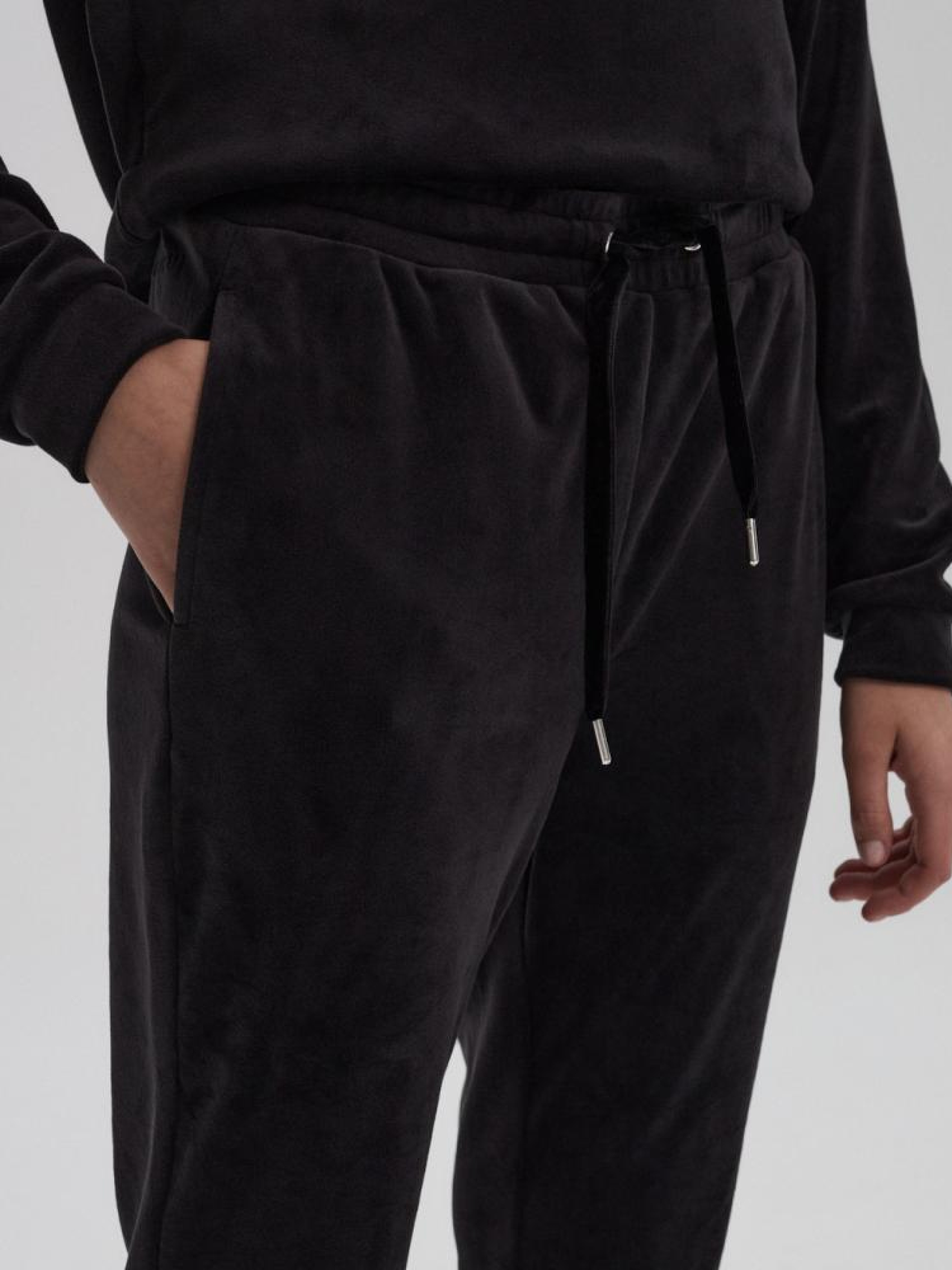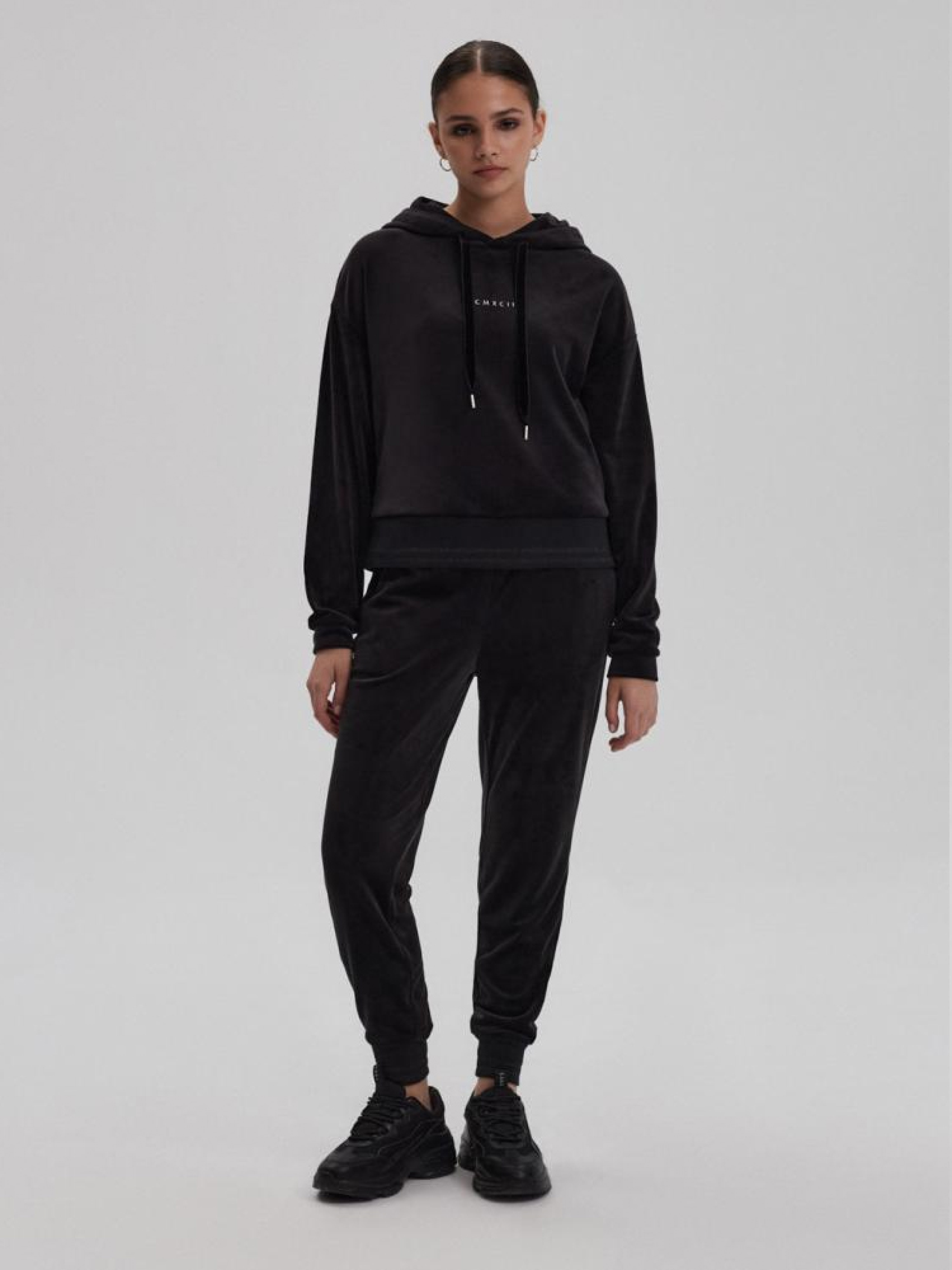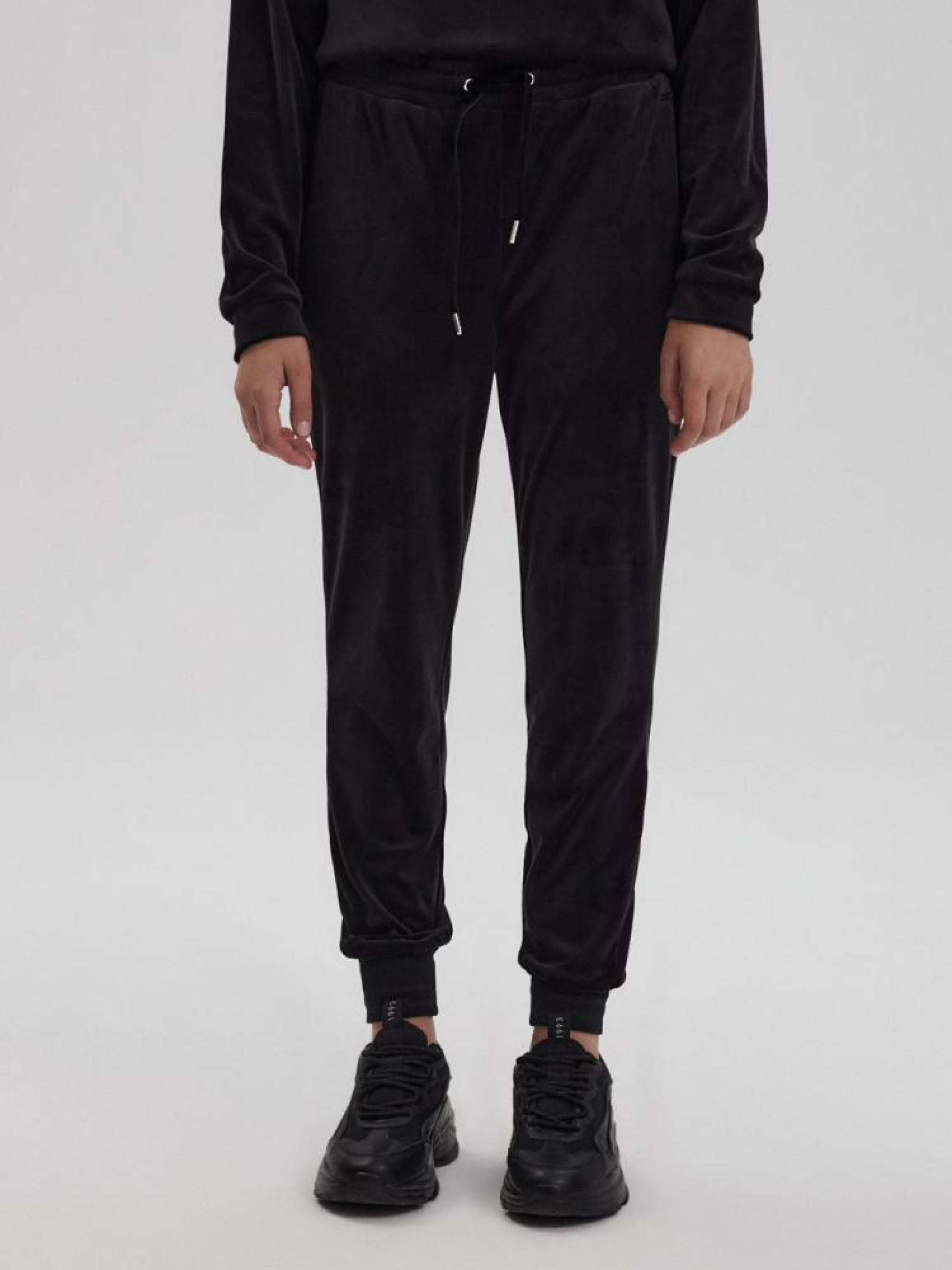 Спортивні штани NAVIDAD 10043355 Жіночі спортивні костюми приталеного крою - еластична талія, - додаткова регулювальна куліска, - з приємного на дотик теплого велюру, - в наявності чорний колір. Сезон: осінь/зима Склад: 95% поліестер 5% еластан Догляд: - прання при максимум 30 °С - не відбілювати - не сушити в сушильній машині - прасувати максимум при темп. 110 °С - не хімчистка Розмір на моделі - S Зріст моделі - 171 см РОЗМІР: XS, S, М, L. Ширина пояса: 36,00 см, 38,00 см, 40,00 см, 42,00 см, Внутрішня довжина ноги: 68,00 см, 68,00 см, 70,00 см, 72,00 см, Ширина стегна: 29,50 см, 30,50 см, 31,50 см, 32,50 см, ШИРИНА НОГИ ВНИЗУ: 8,50 см, 9,50 см, 10,50 см, 11,50 см,