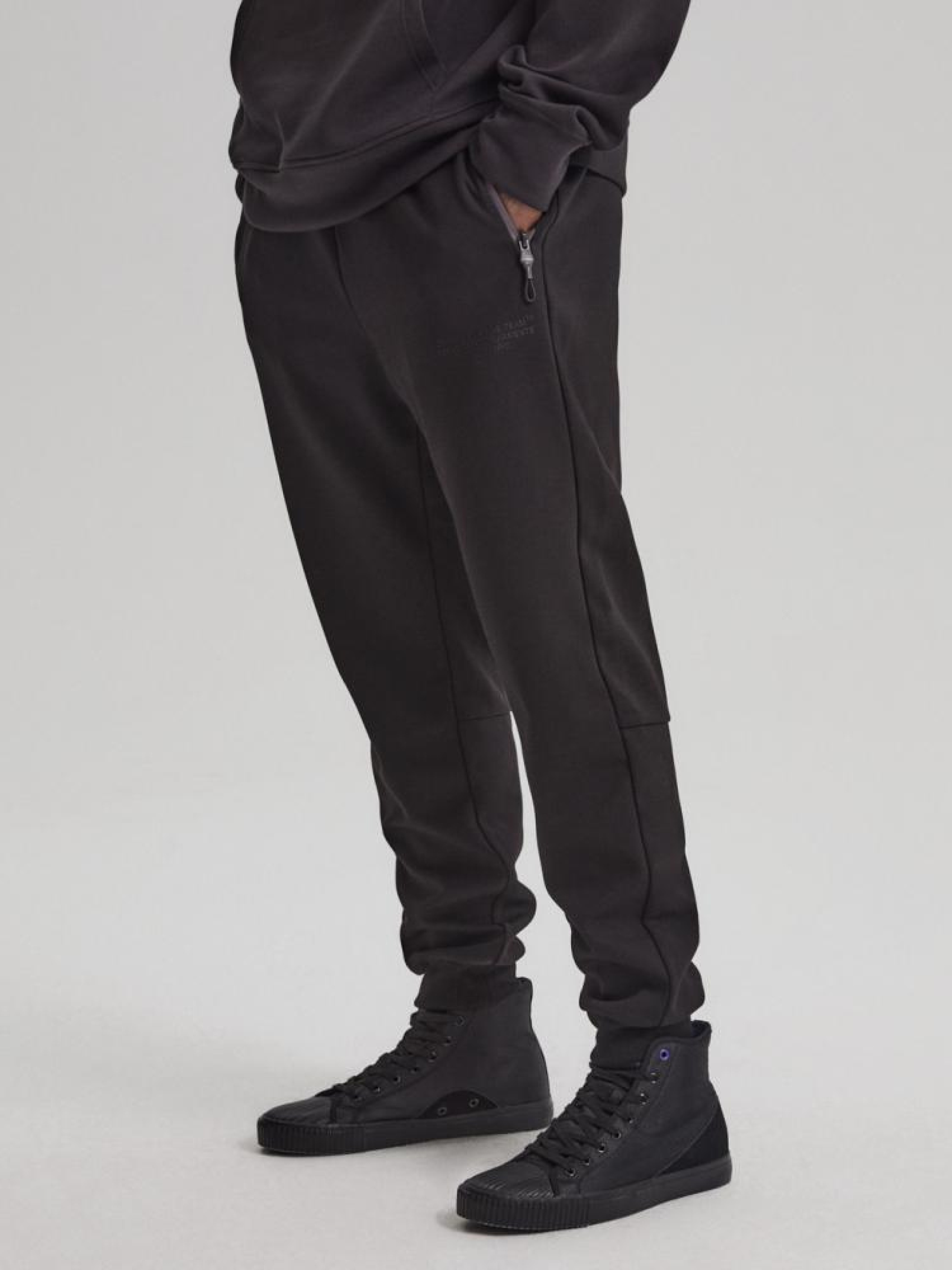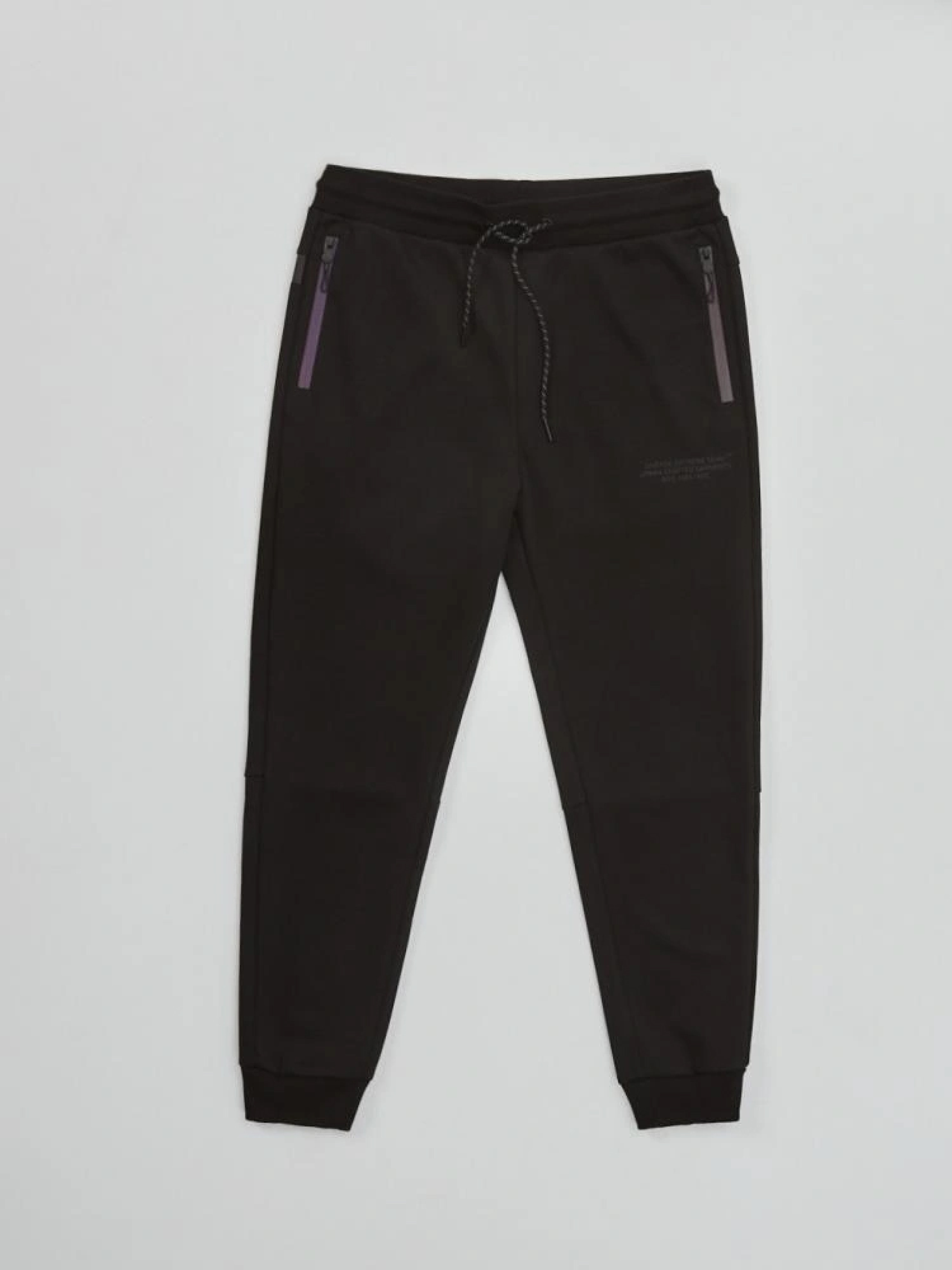 Спортивні штани DEXT JGRX 2 10042828 Високоякісні спортивні штани з лінії DEXT: - бічні кишені на блискавці, - одна кишеня ззаду, застібається на блискавку, - всі кишені оброблені райдужною декоративною панеллю, - передня частина прикрашена написом, - світловідбиваючі шнурки на талії, - на одній стороні світловідбиваючий напис на штанині нижче коліна, - штанини оброблені манжетами, - штани доступні в чорному кольорі. Сезон: осінь/зима Склад: 73% поліестер 24% бавовна 3% еластан Догляд: - прання при максимум 30 °С - не відбілювати - не сушити в сушильній машині - прасувати максимум при темп. 110 °С - не хімчистка Розмір на моделі - XL Зріст моделі - 184 см РОЗМІР: S, М, L. XL, XXL, Ширина пояса: 37,50 см, 40,50 см, 43,50 см, 46,50 см, 49,50 см, ВНУТРІШНЯ ДОВЖИНА ШТАНИНИ: 67,00 см, 69,00 см, 70,00 см, 72,00 см, 72,00 см, Ширина стегна: 29,70 см, 31,10 см, 32,50 см, 33,90 см, 35,30 см, ШИРИНА НОГИ ВНИЗУ: 10,50 см, 10,50 см, 11,50 см, 12,90 см, 14,30 см,